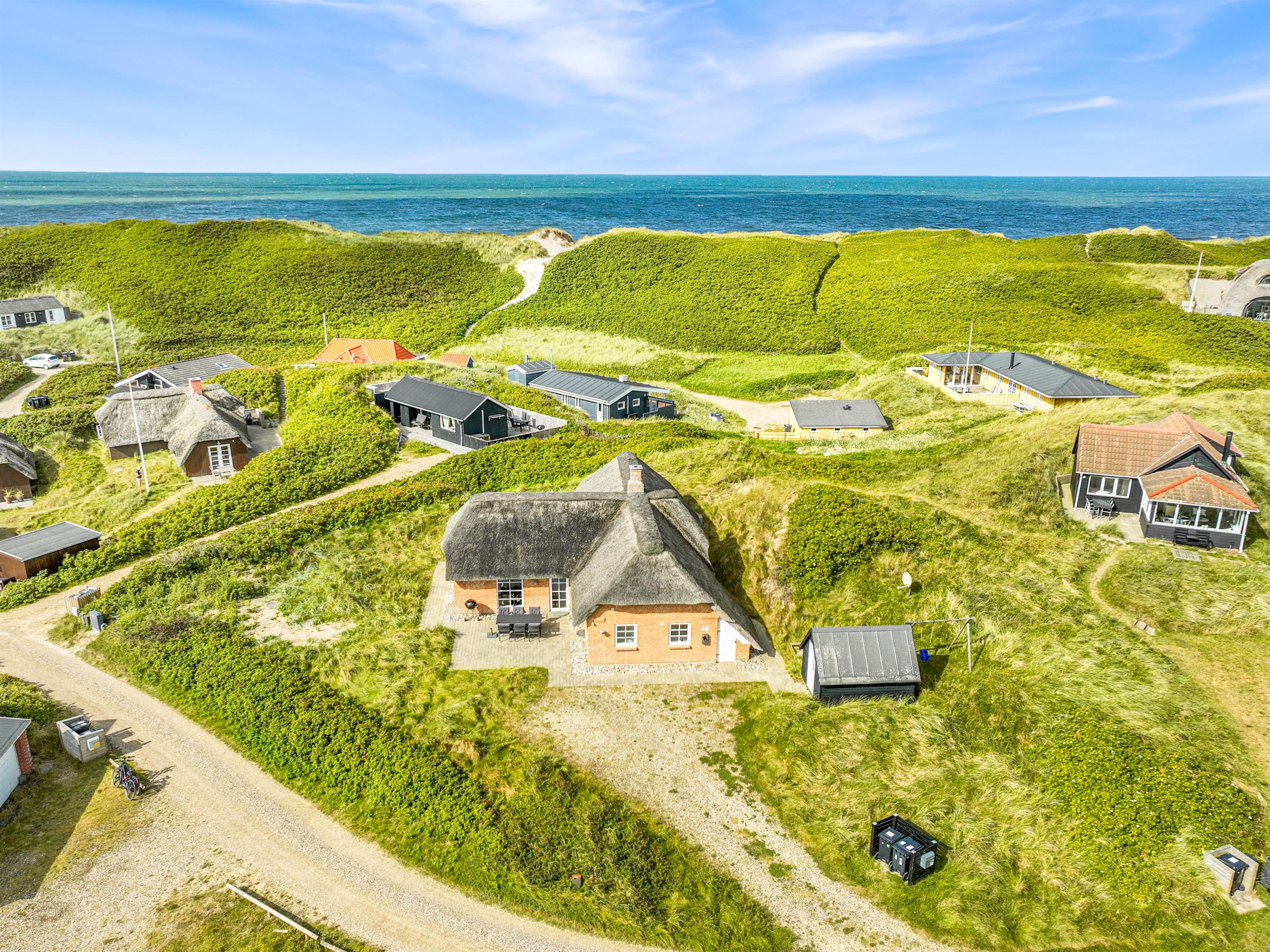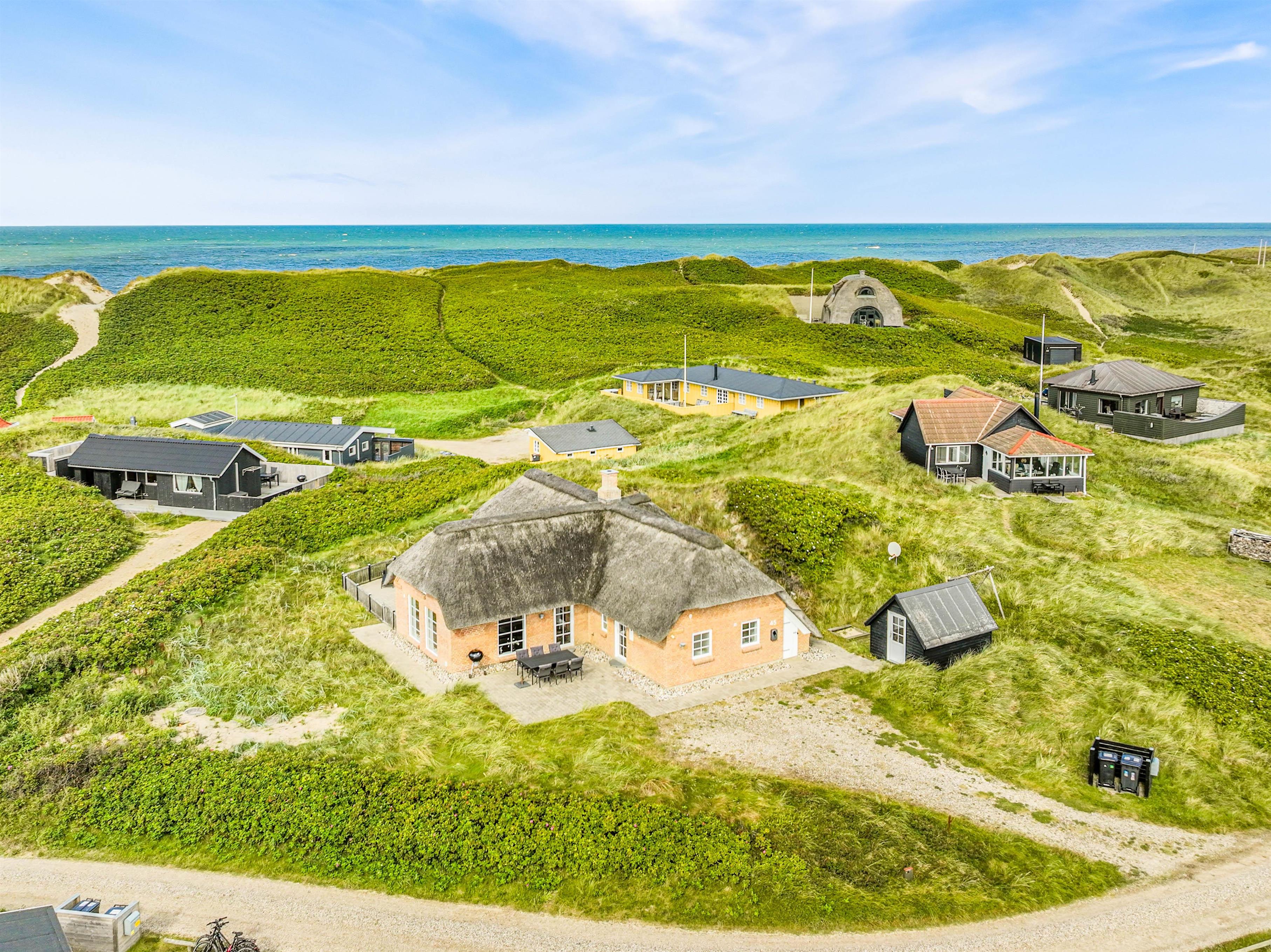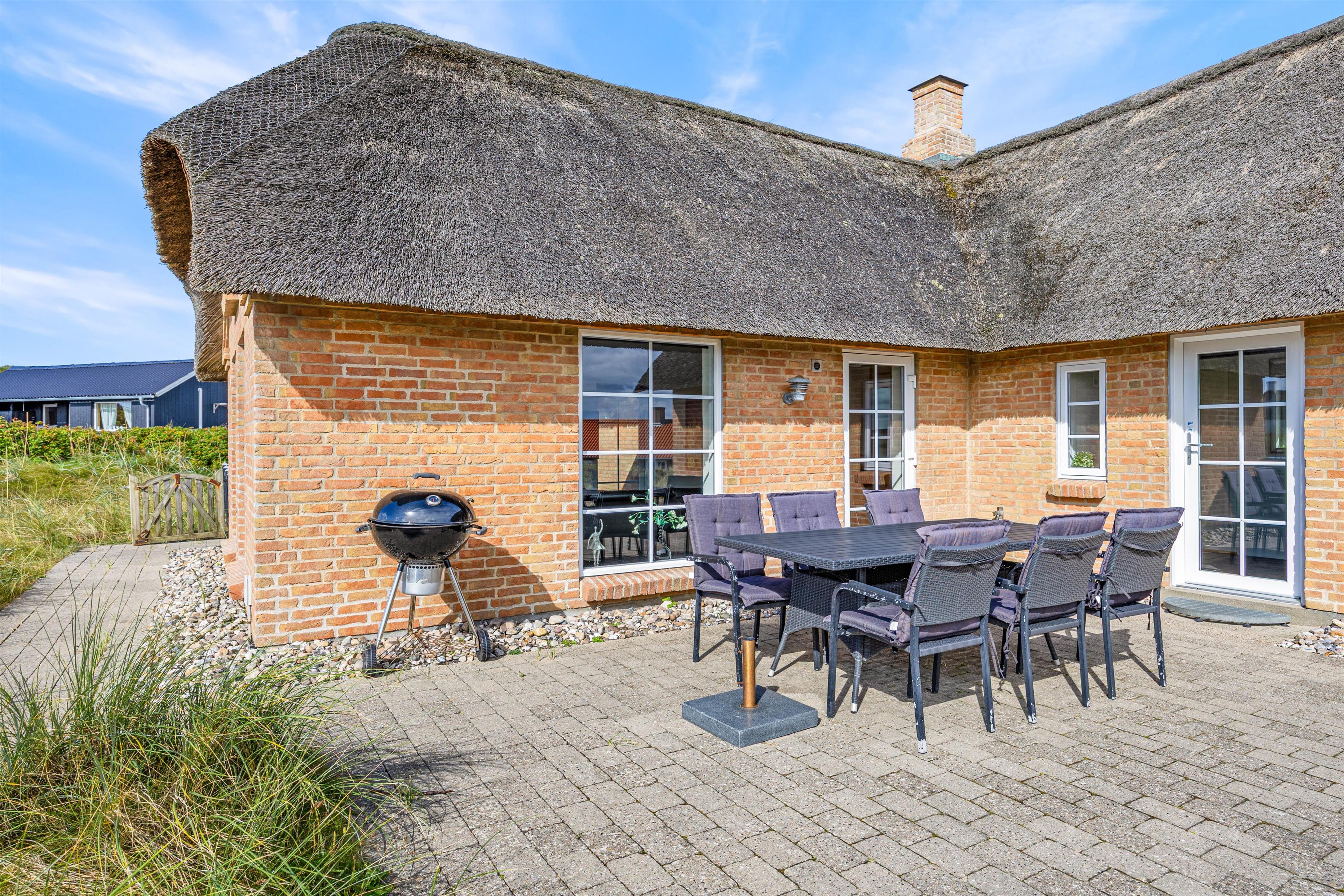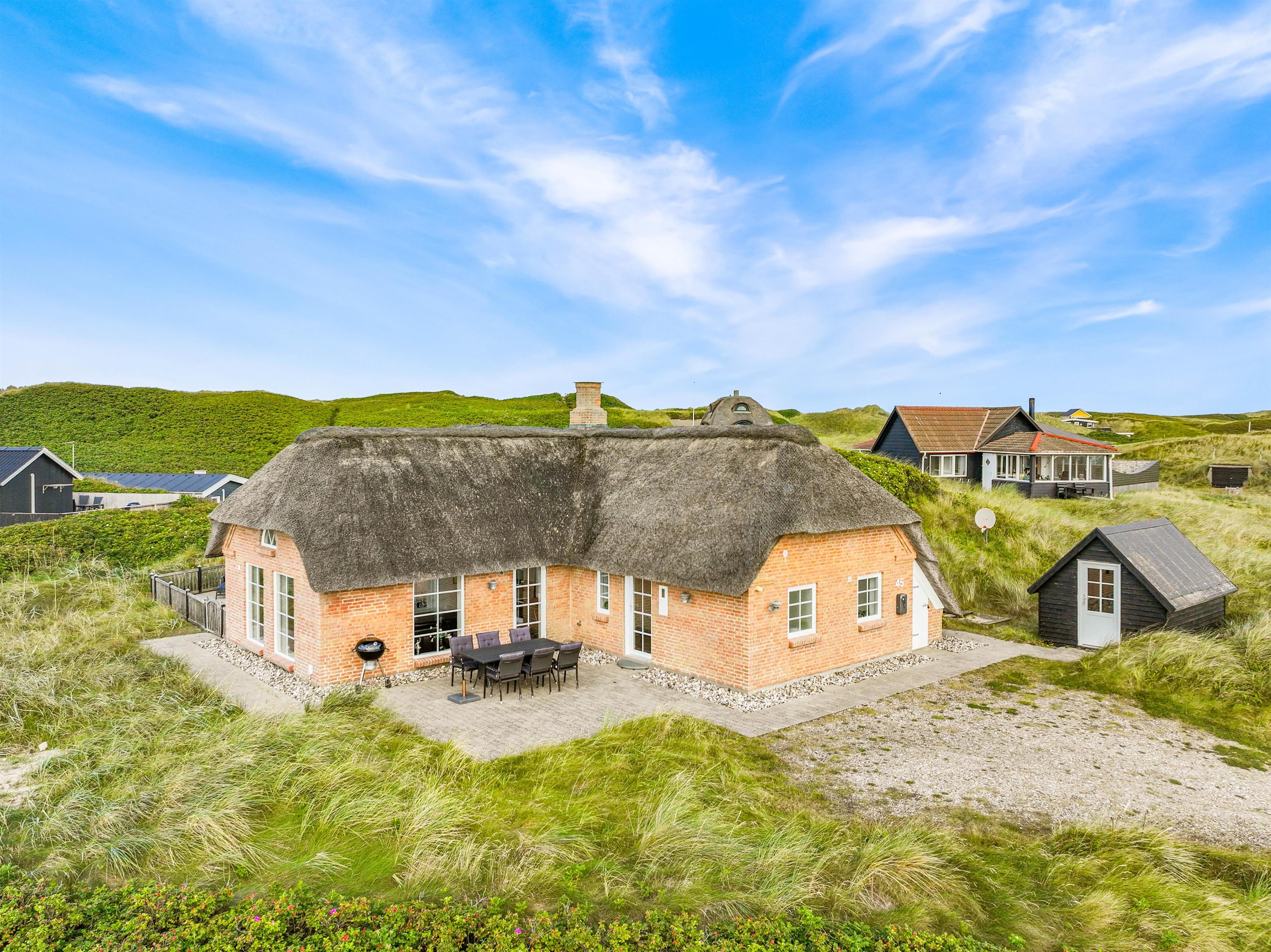 Huset er et fantastisk flot murstenshus med stråtag og en meget smuk og spændende indretning, hvor du øjeblikkeligt føler dig hjemme. Her er der tale om et feriehus i høj kvalitet, hvor der er højt til loftet og god indretning. Sommerhuset har også en god og dejlig hems, hvor I også kan trække jer tilbage. Børn Vil især synes om denne hems, fordi de her på hemsen kan lege helt uforstyrret.