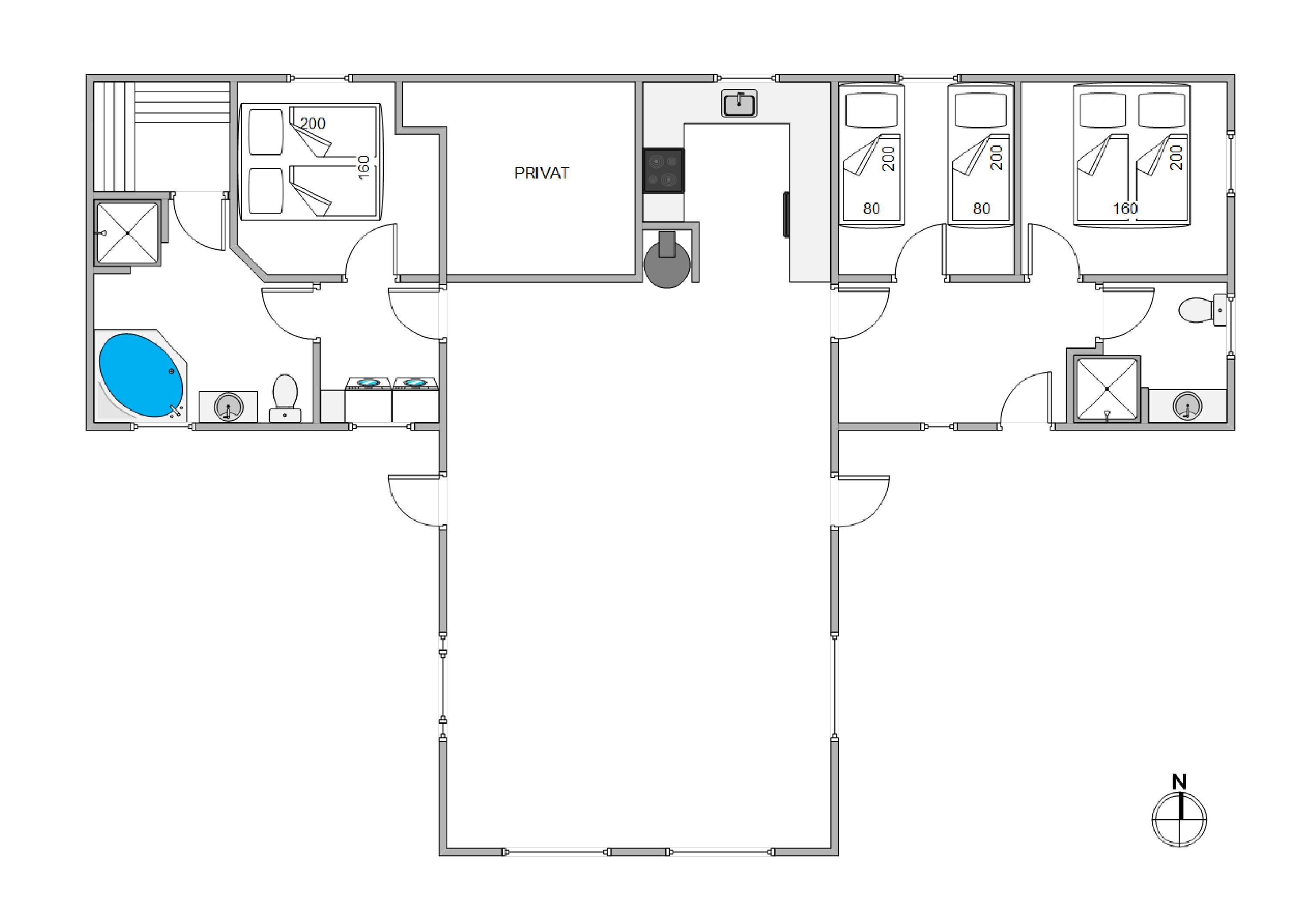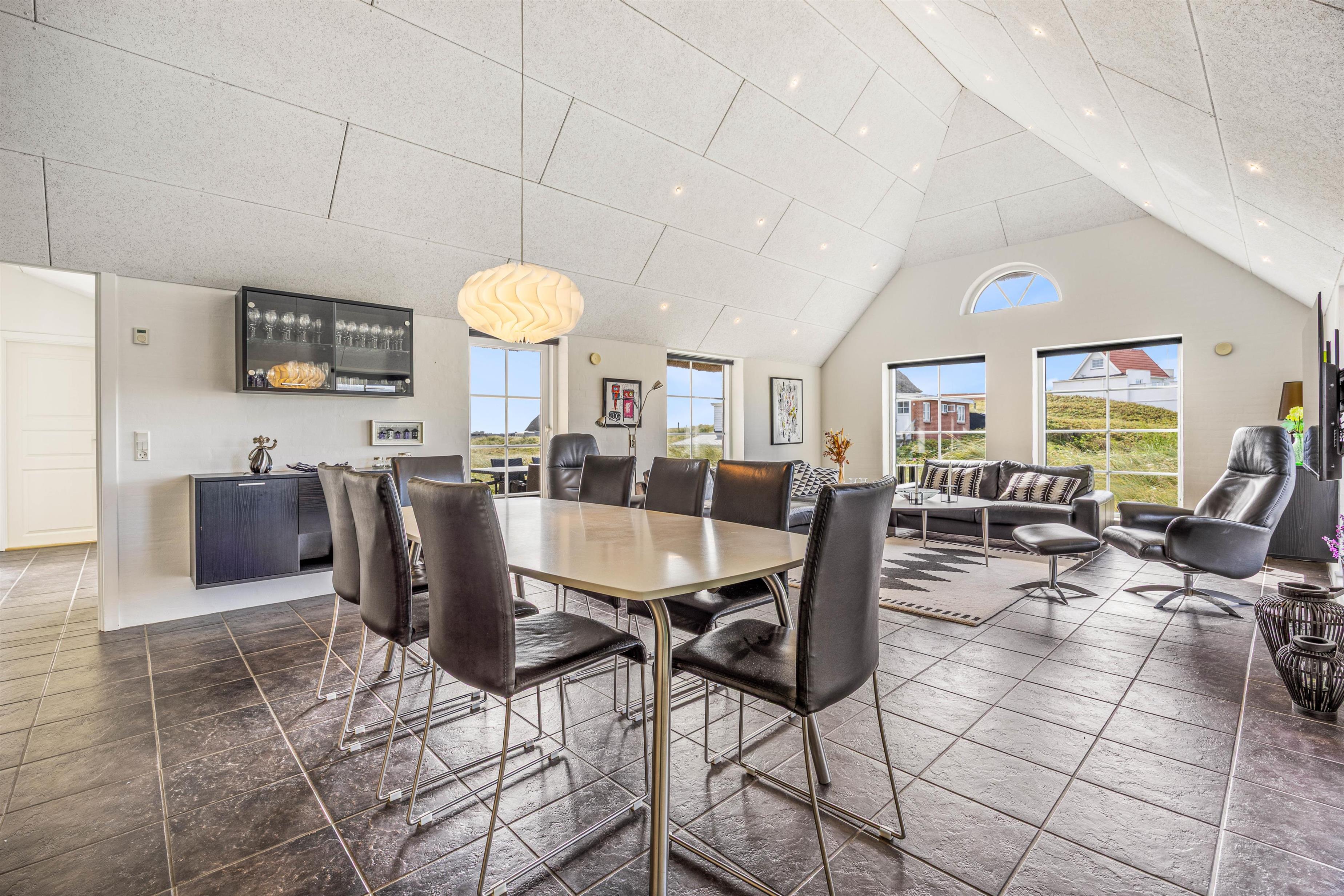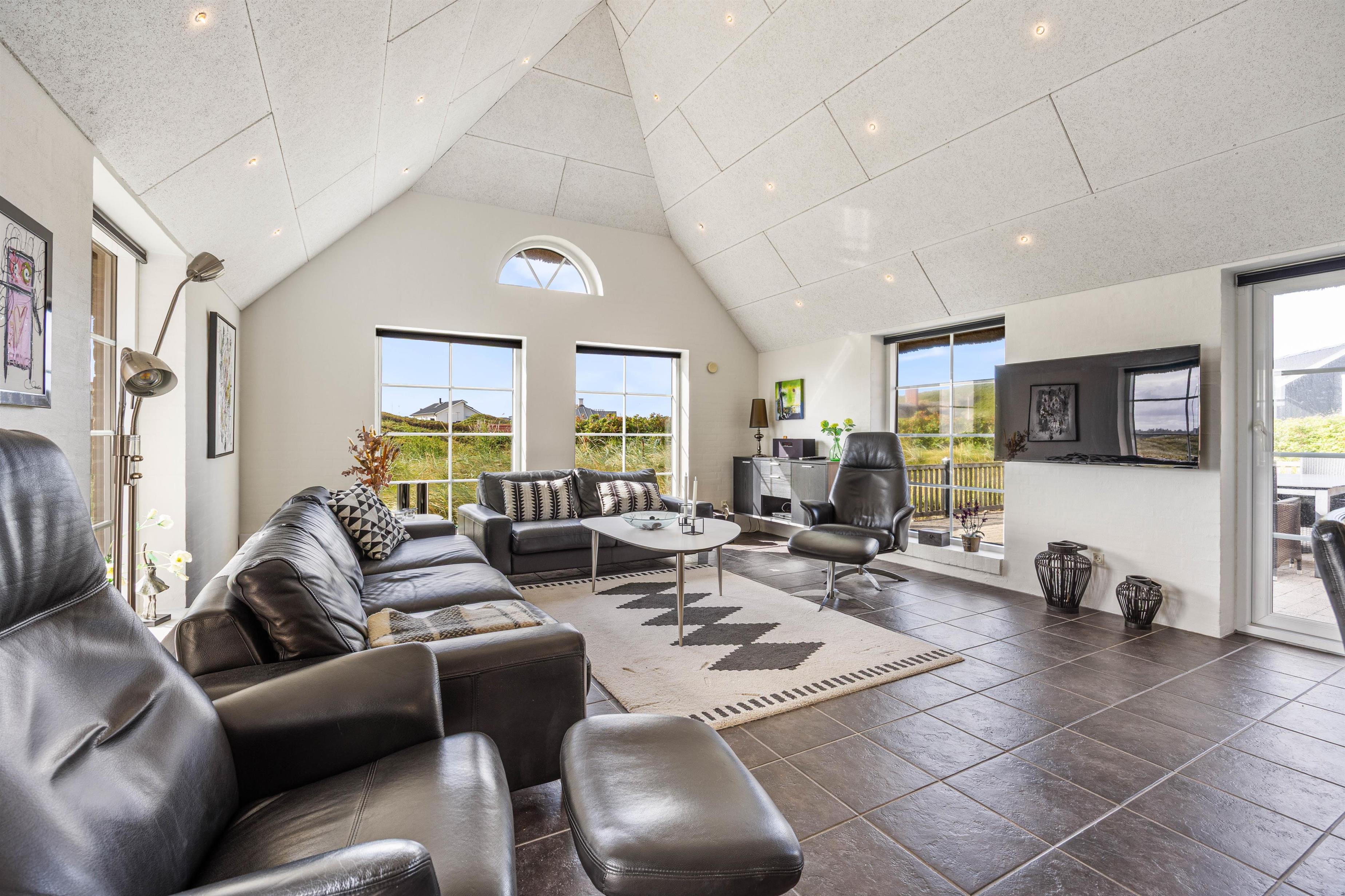 Et fantastisk smukt feriehus, hvor der er kræset for detaljerne, ude såvel som inde. Huset, der er omkranset af dejlige terrasser, har en dejlig beliggenhed kun et stenkast fra stranden og i gåafstand Søndervig Centrum, hvor restauranter og specialforretninger ligger som perler på en snor.