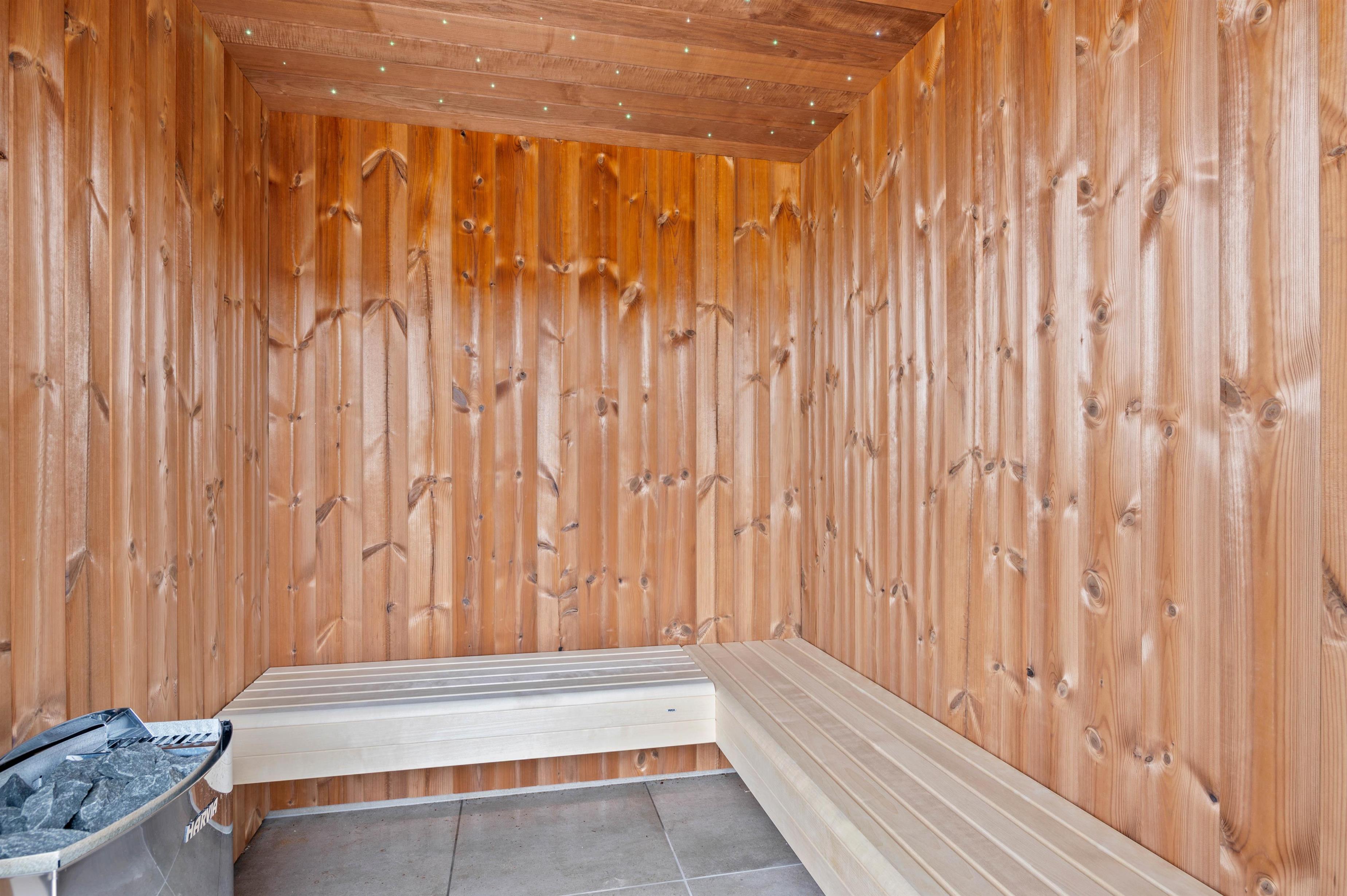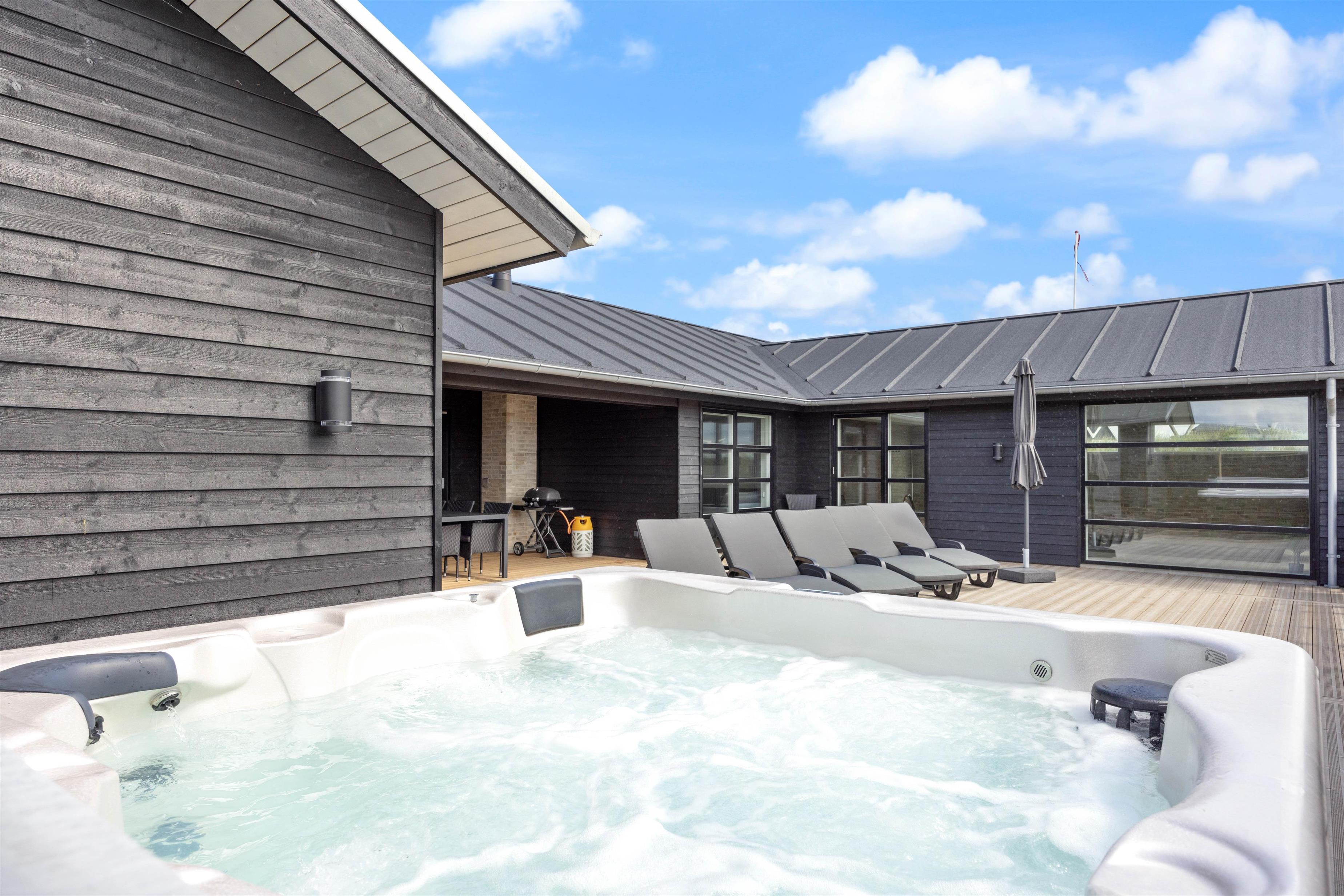 Ferie med swimmingpool, udendørs spabad, udebruser, sauna og udehus