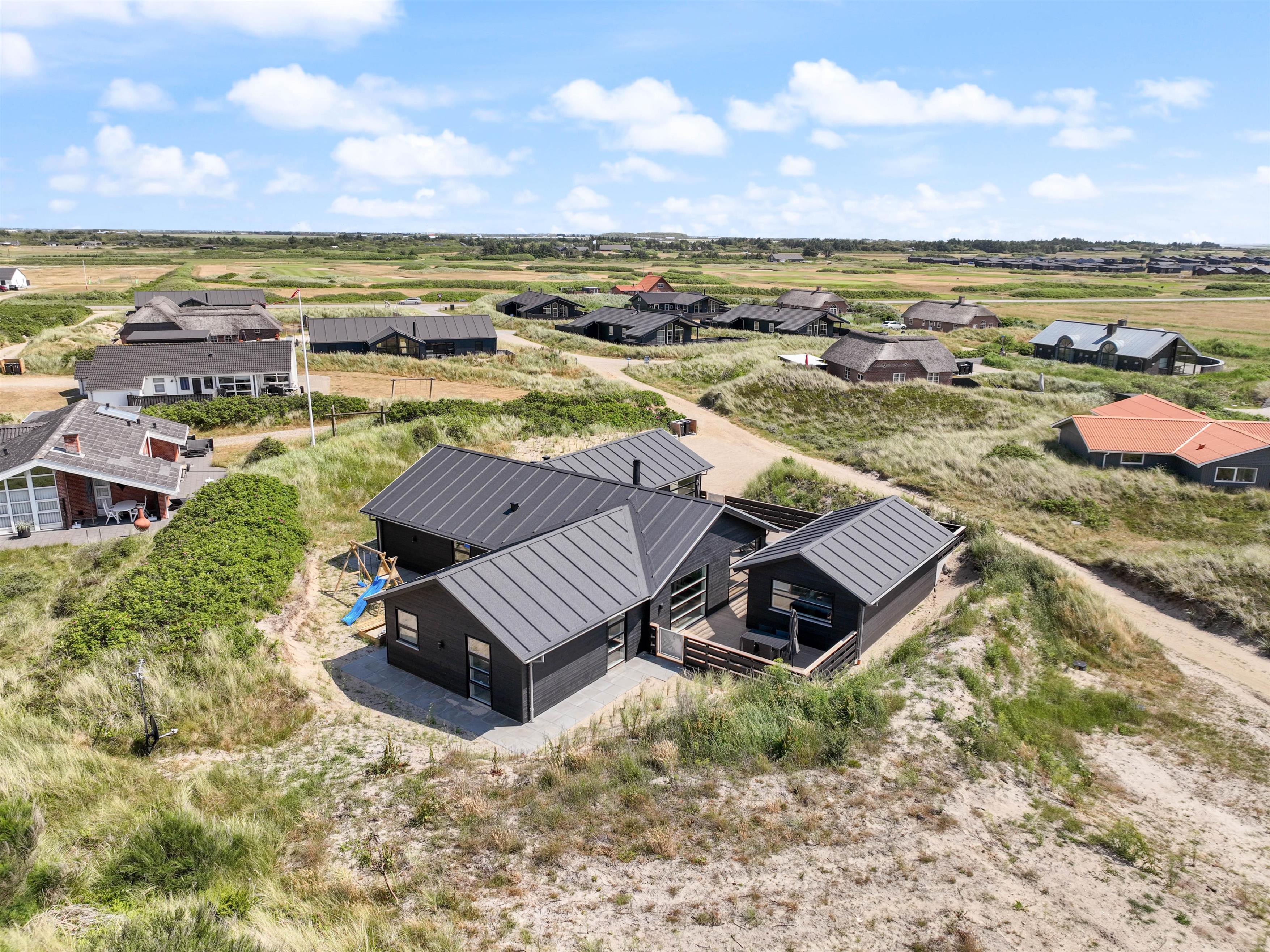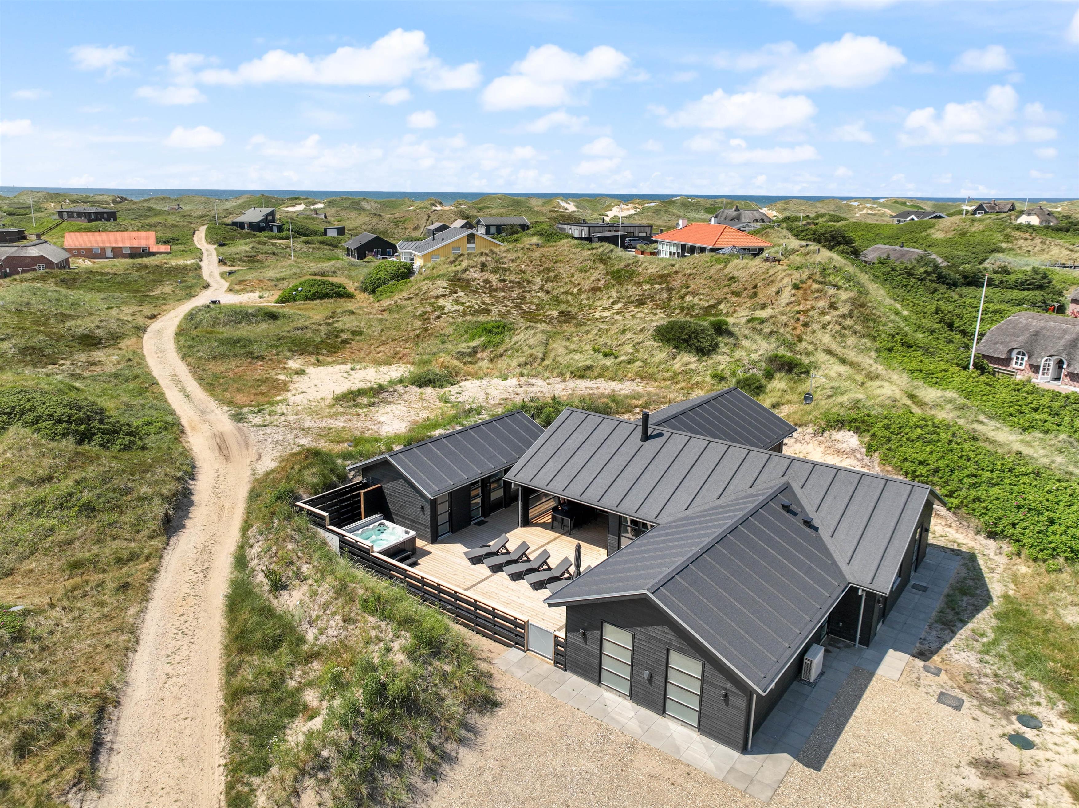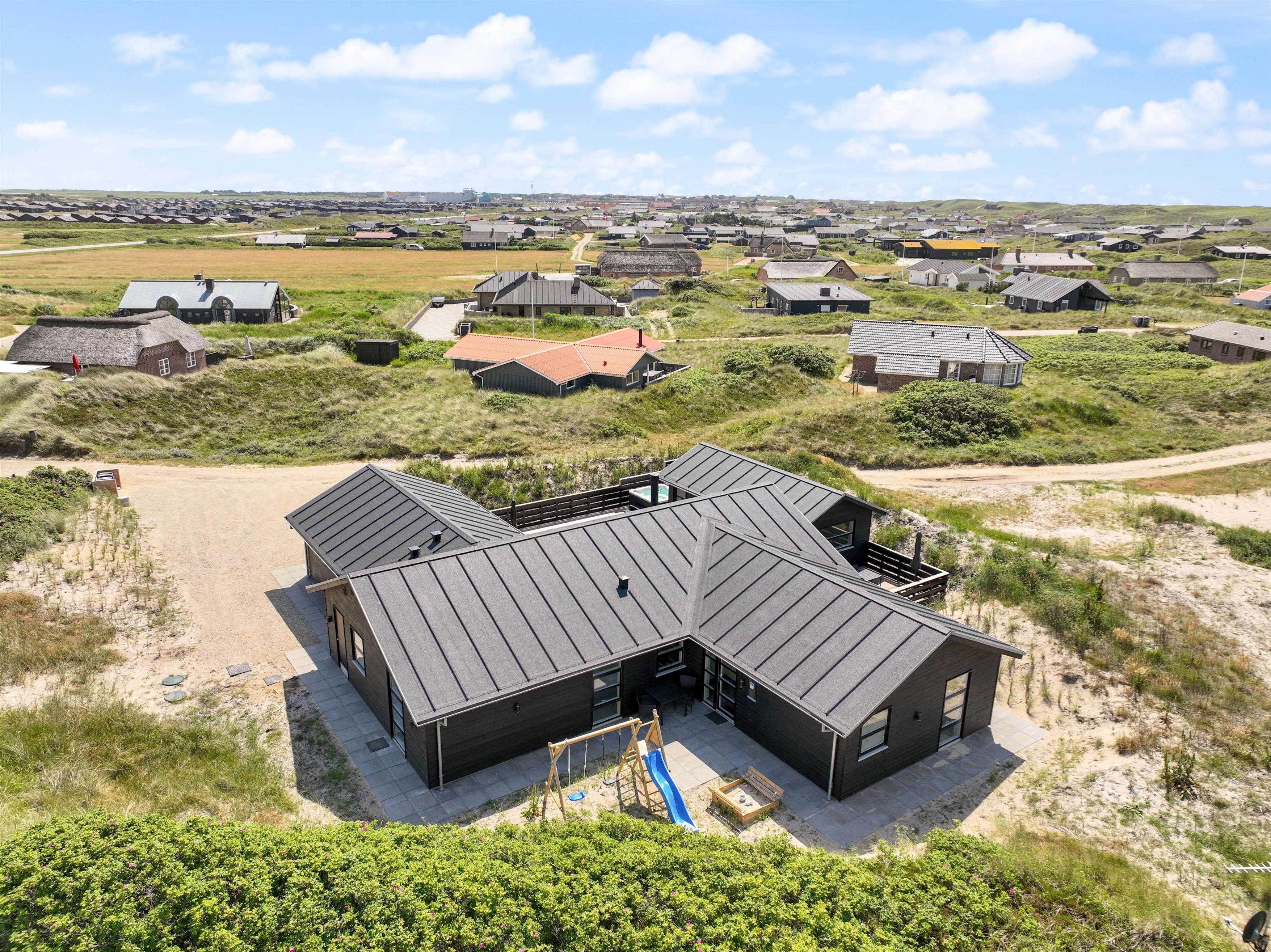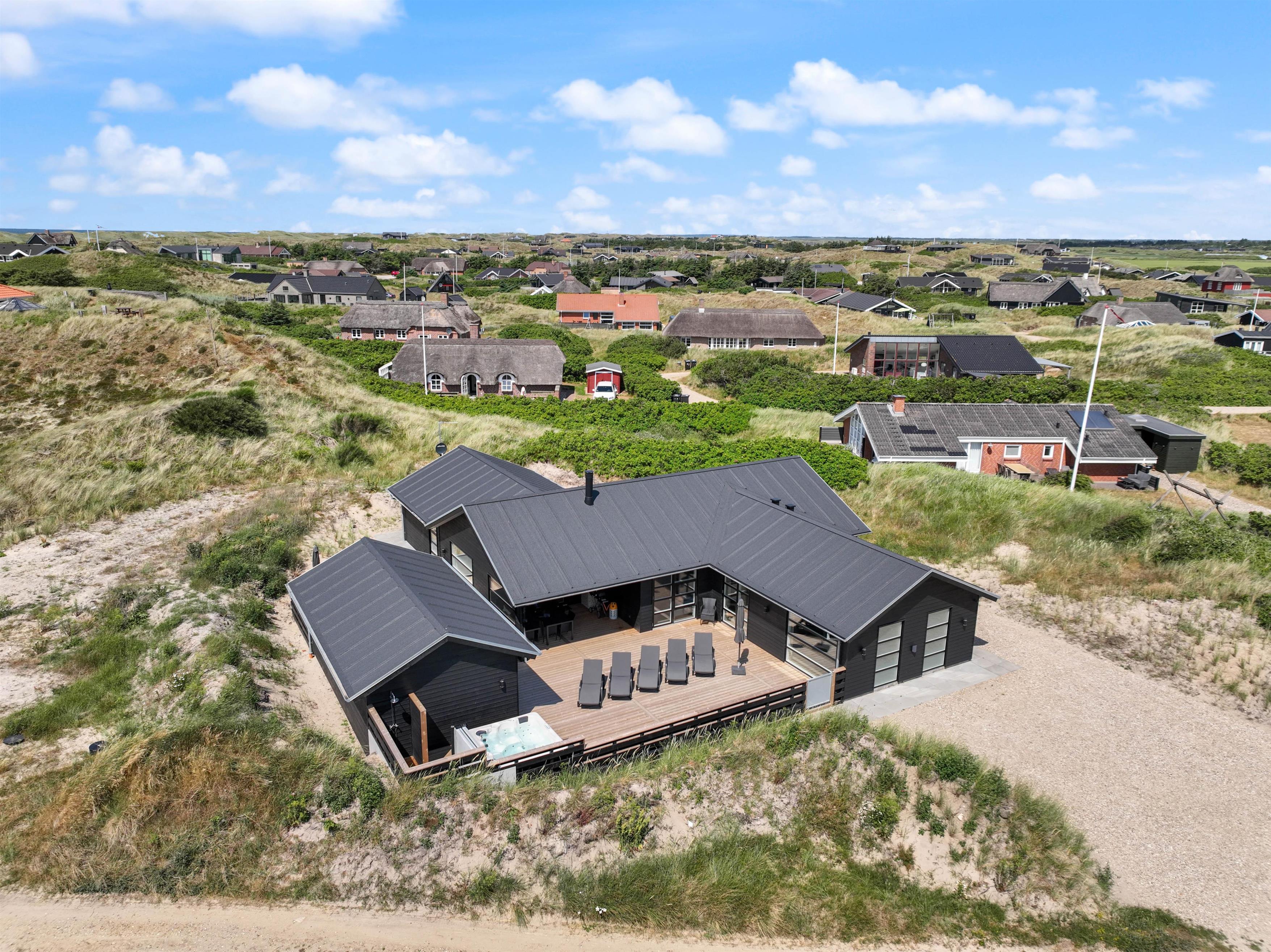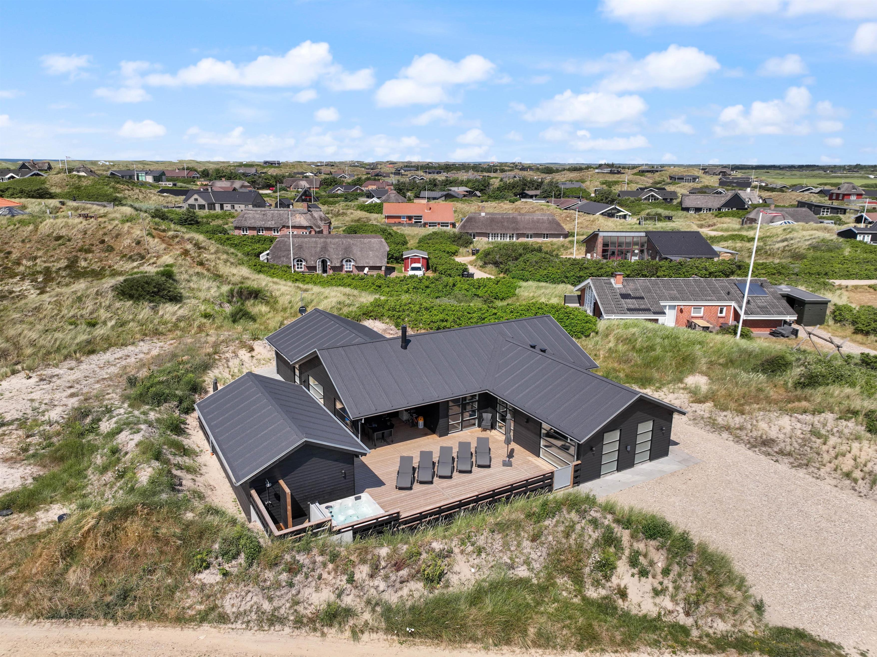 Kun 400 meter fra stranden ligger dette superlækre nyopførte sommerhus fra 2022 og indbyder til en fantastisk ferie for hele familien. Søger I et feriehus der oser af velvære og wellness så kunne dette 5-stjernede sommerhus på Holdvej 50 bestemt være en oplagt mulighed. Det moderne sommerhus på Holdvej 50 har både swimmingpool med svømmetræner, stor 6 personers udespa, udebruser, sauna, udehus med mulighed for aktiviteter, og ligger kun 400 meter fra havet. Huset er beliggende på en meget rolig lukket stikvej, hvor der kun er huse med indkørsel på den ene side af vejen.