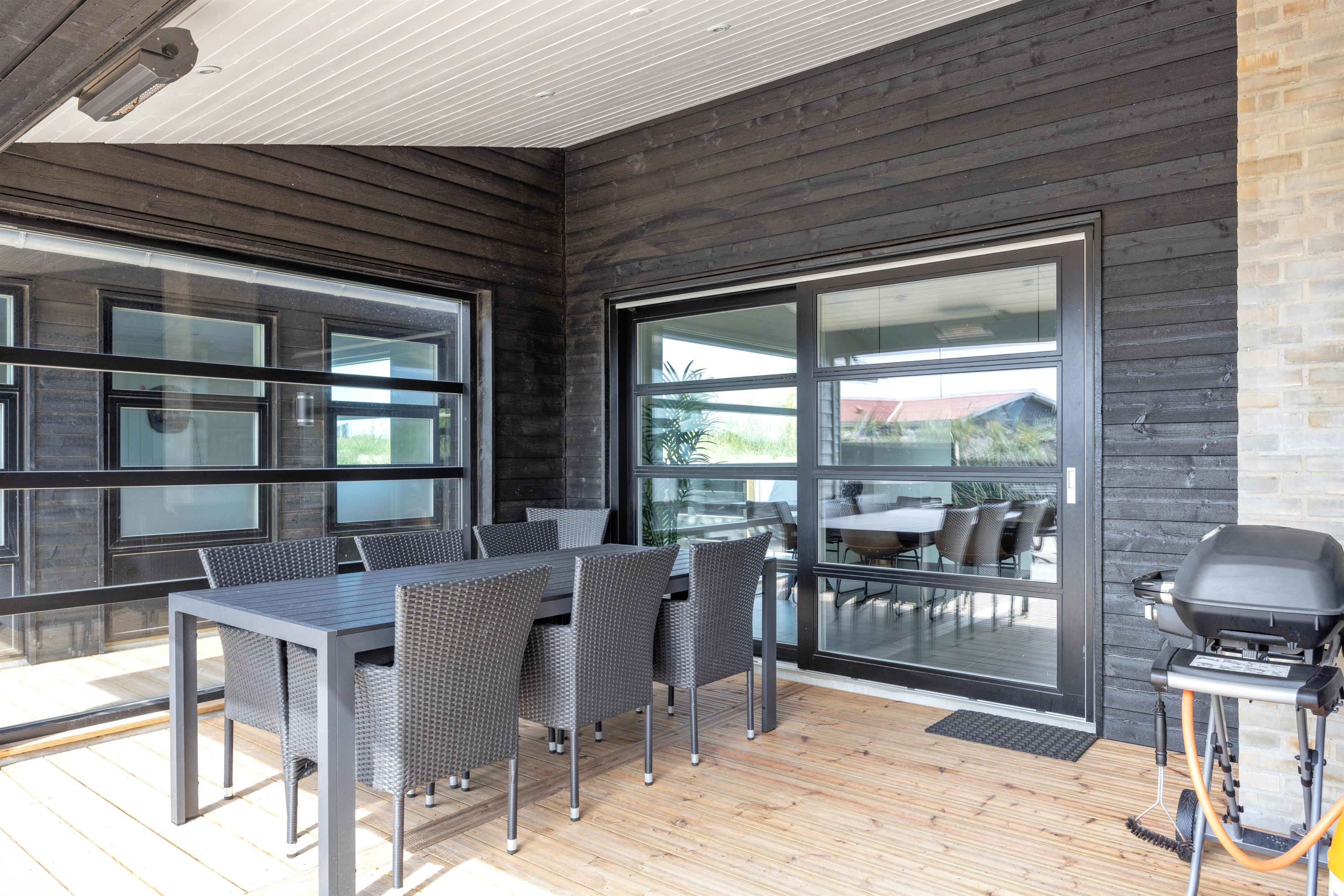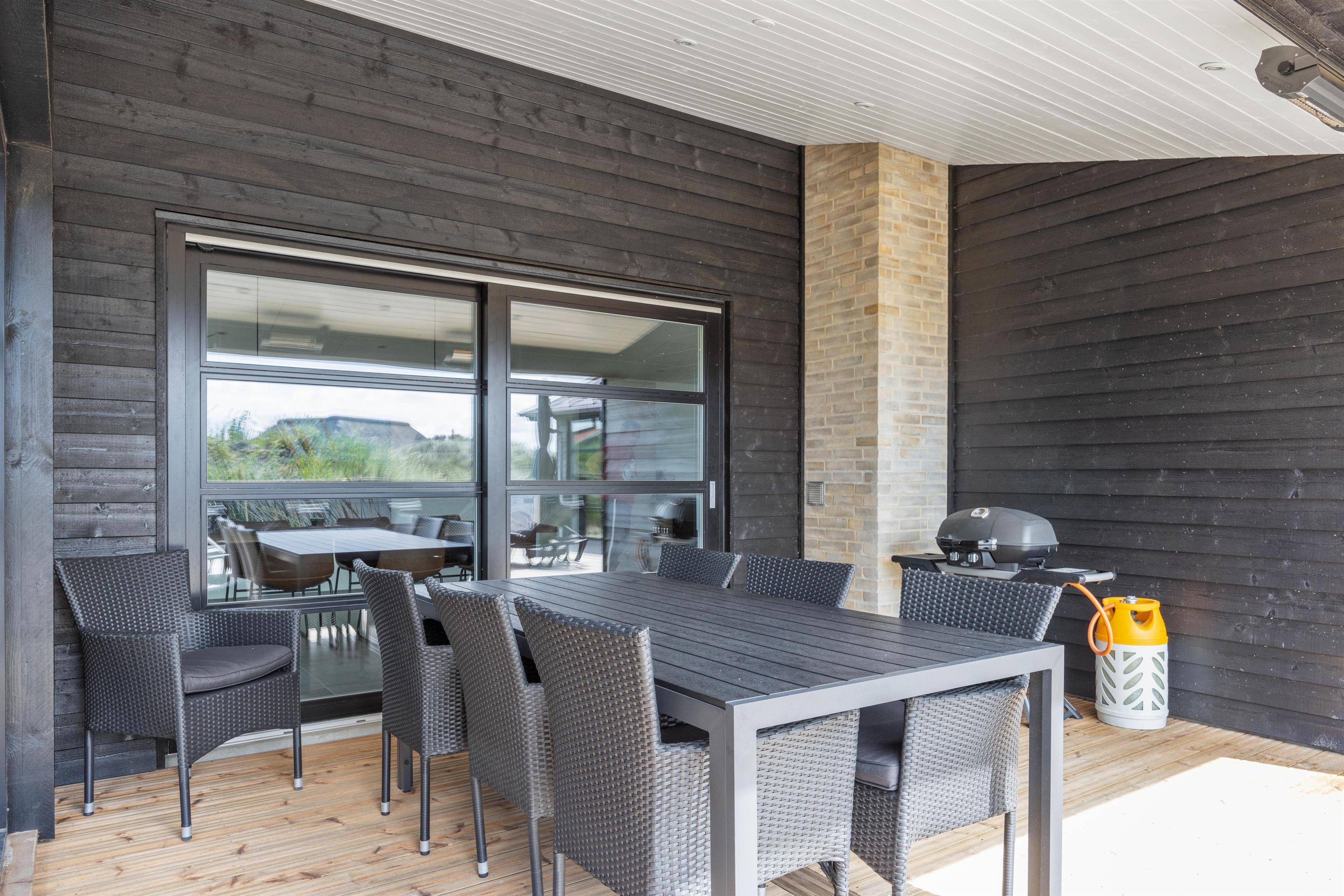 Et af husets absolutte highlights er den store skønne syd og vestvendte terrasse med udespa med masser af lækroge. Her kan I sidde om aftenen og slappe af og nyde den klare stjernehimmel. Imens kan børnene hygge sig i sandkassen eller på gyngerne i gyngestativet. Der er en veludstyret terrasse med havemøbler, gasgrill, pizzaovn, parasol og solvogne, derudover er der en skøn overdækket terrasse med energivenlige infrarøde terrassevarmere.