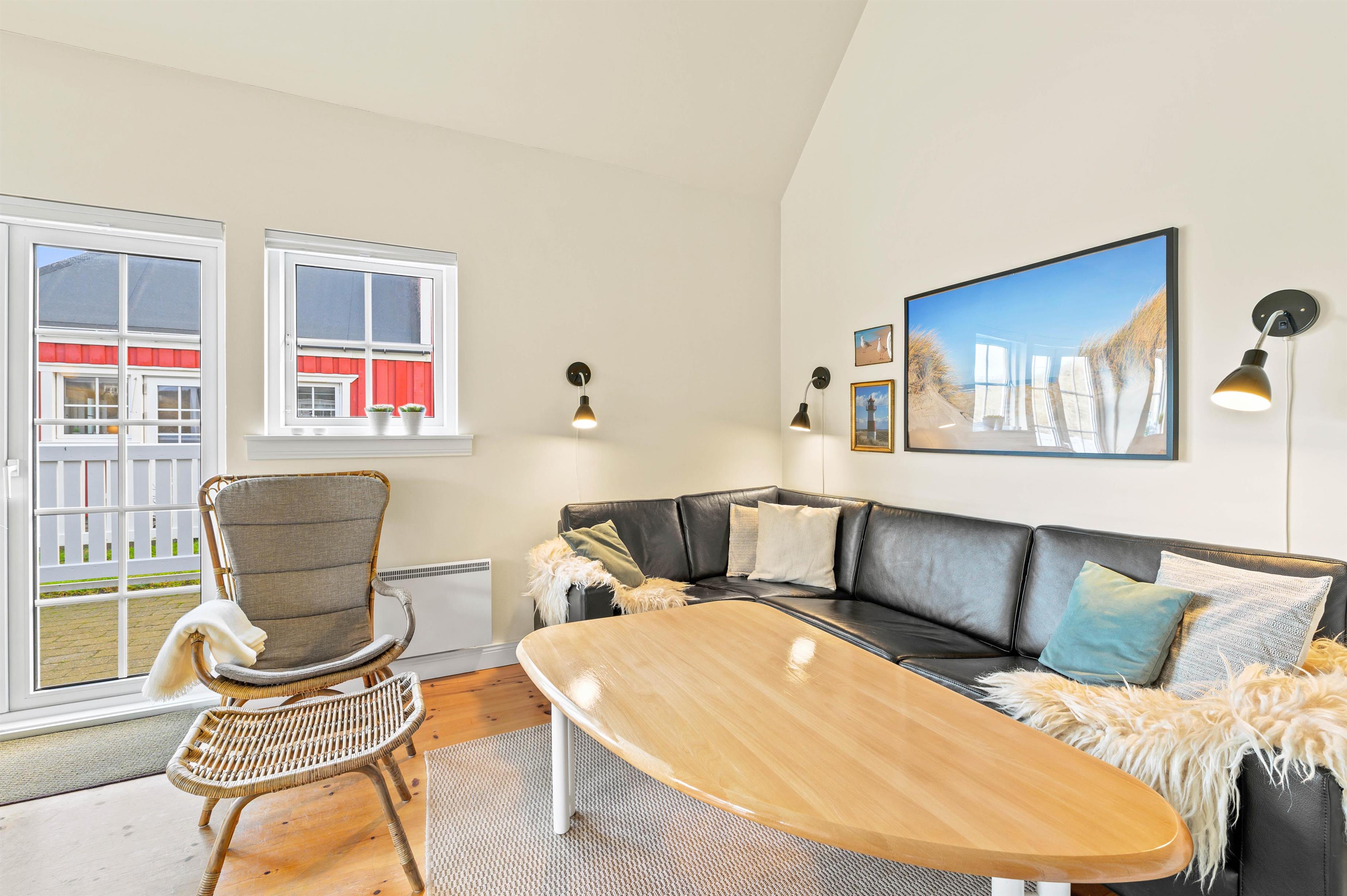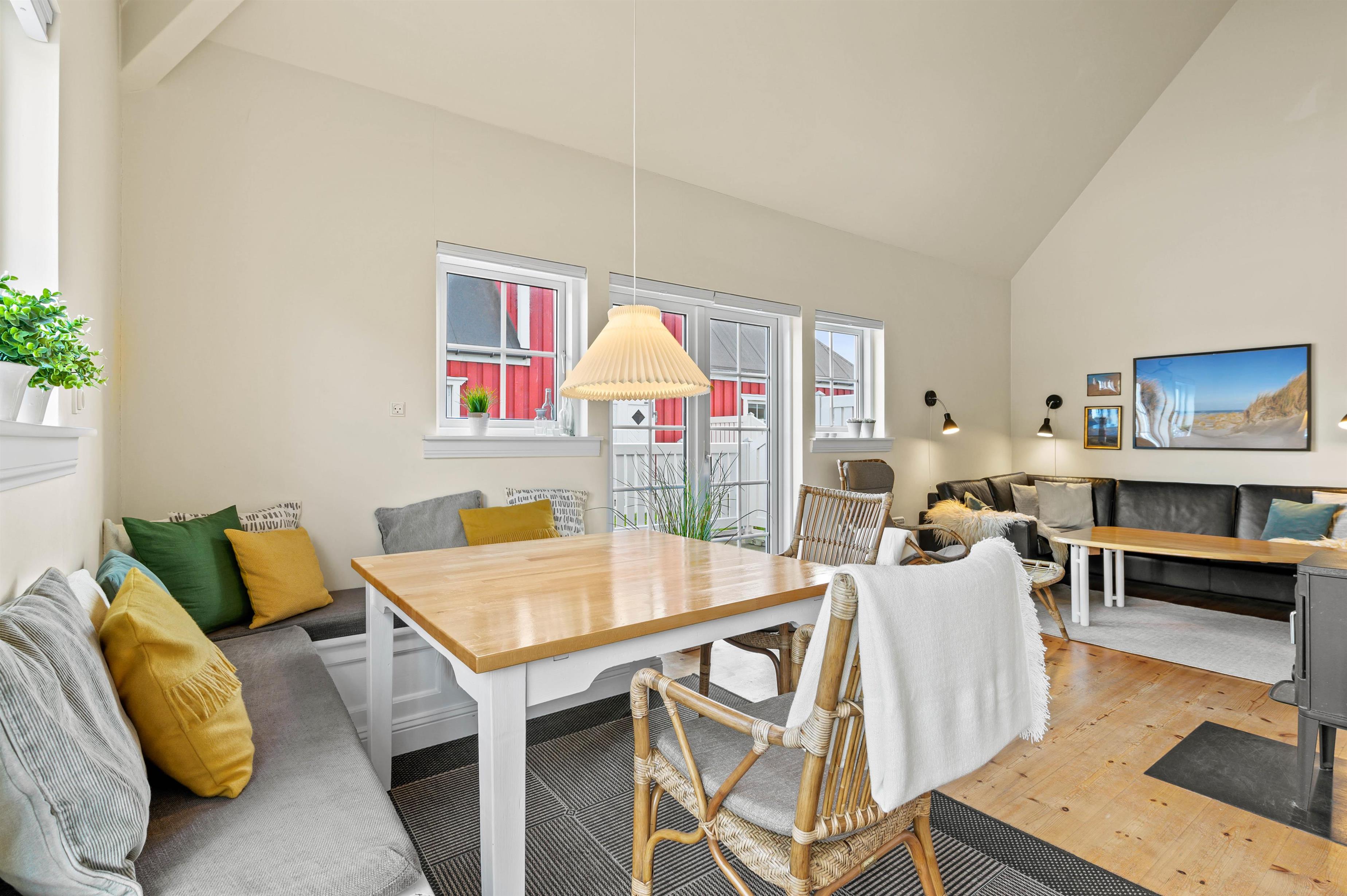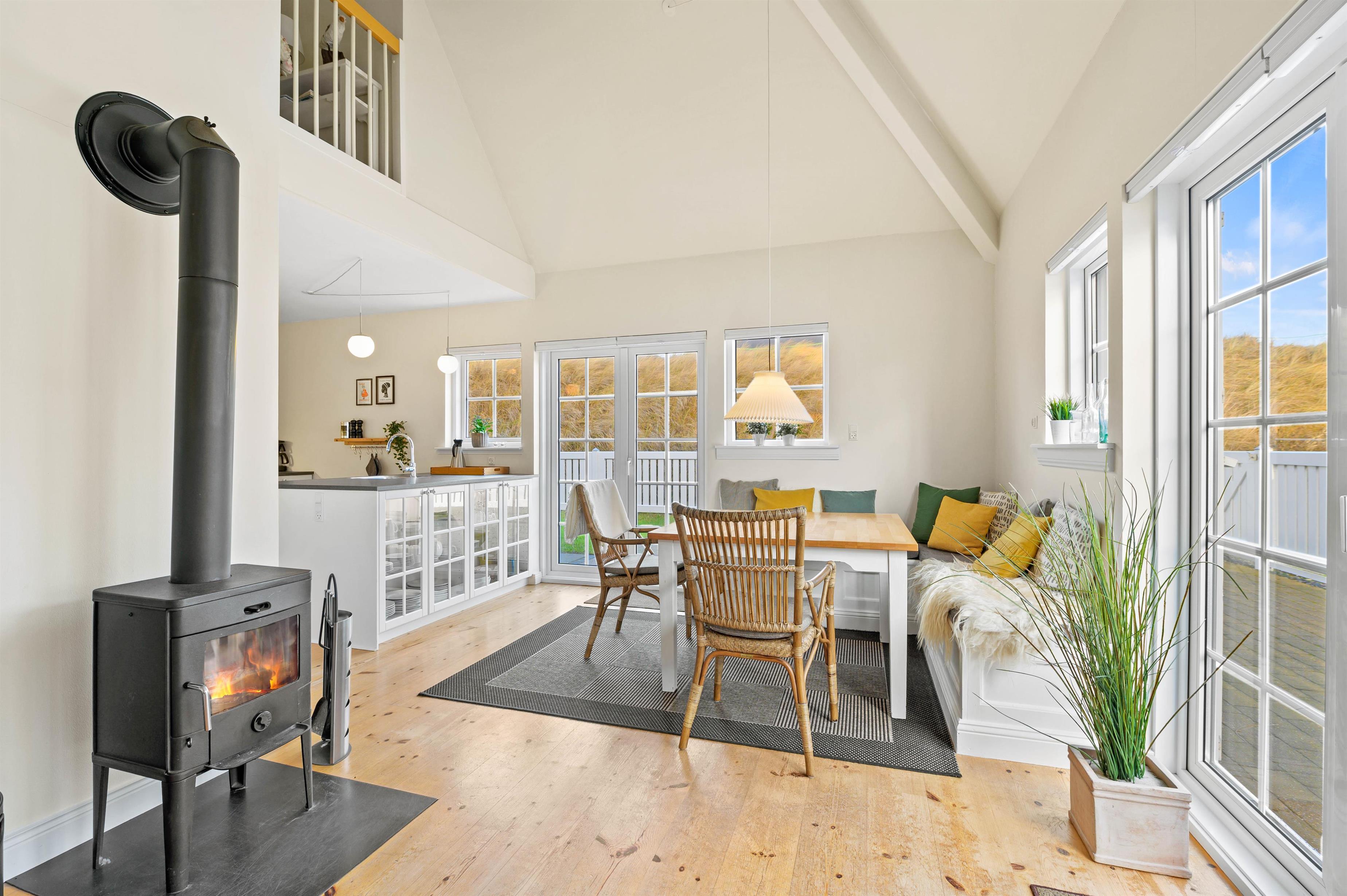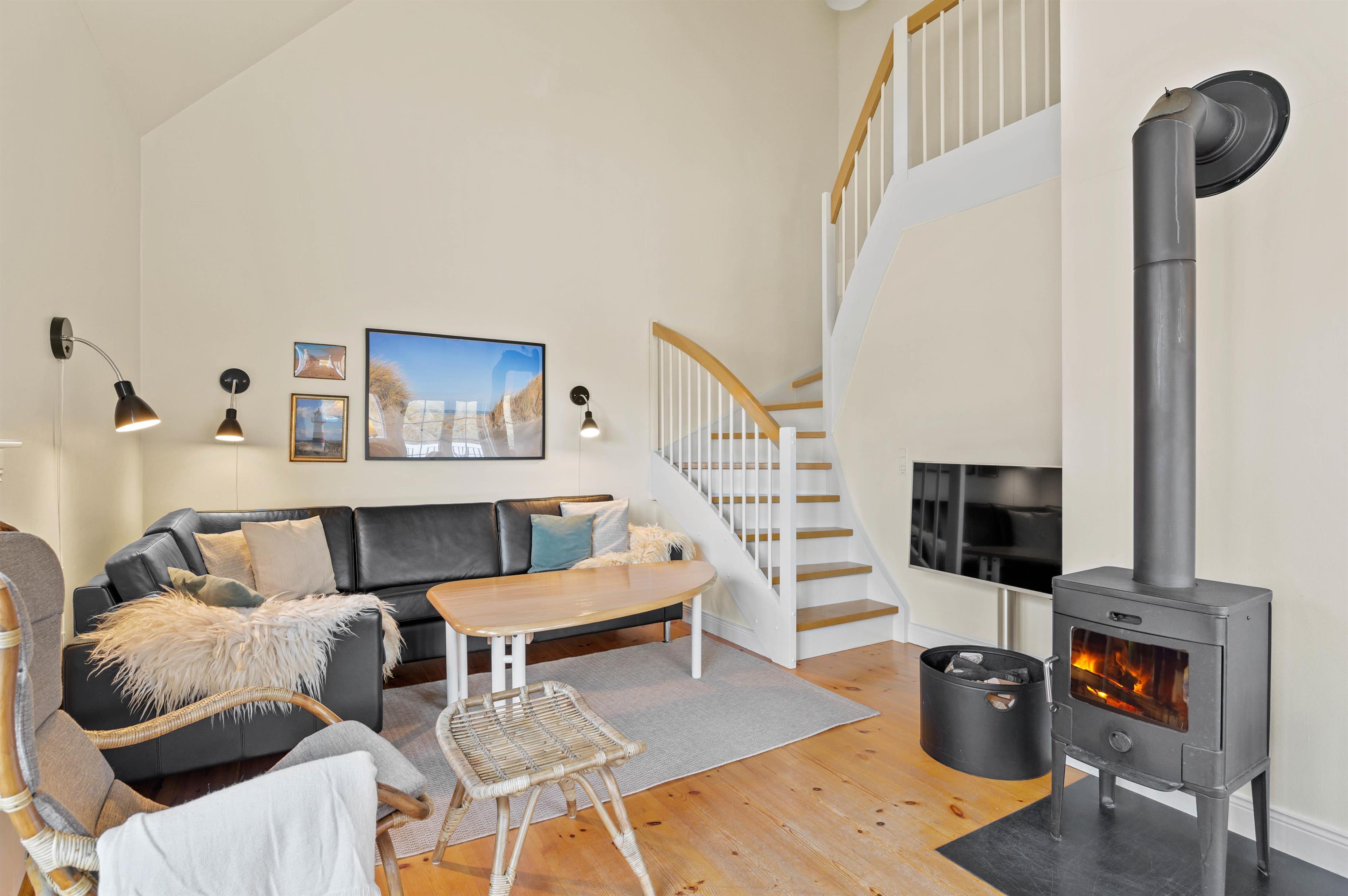 Der er for alvor dømt feriestemning i den hyggelige ferielejlighed i hjertet af Søndervig. Lejligheden i 2 plan fremstår lys og indbydende, og man mærker tydeligt havets beroligende tilstedeværelse på atmosfæren i lejligheden. Her er bare utrolig dejlig og afslappende at være, og den knitrende brændeovn sørger for at bidrage til feriestemningen.