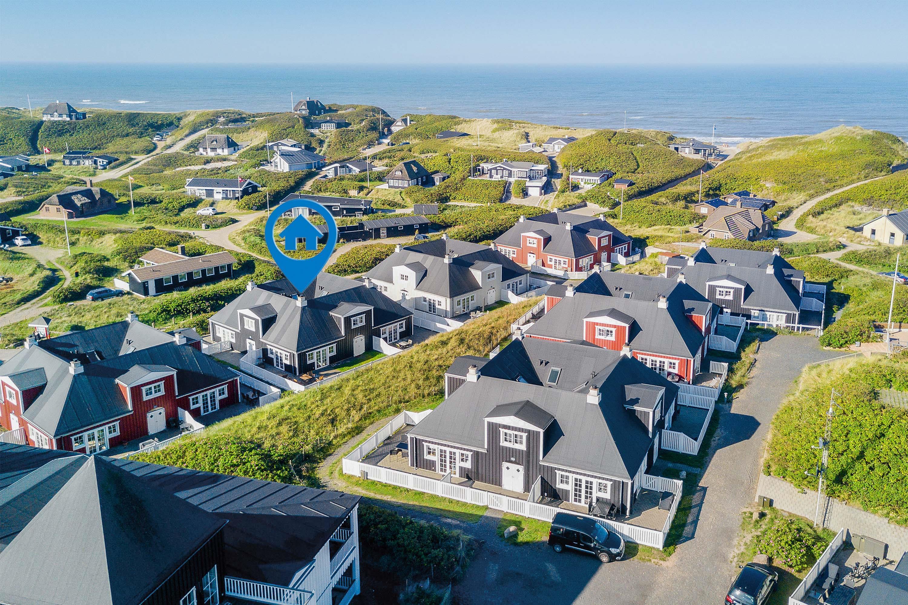 Beliggenheden er helt i top. Her er I nemlig tæt på både hav og strand samt byliv og aktiviteter i Søndervig. Søndervig er hvert år et besøgsmål for strandglade turister, ligesom den årlige Sandskulptur Festival altid er et trækplaster. Er I mere til shopping eller udkig efter en bid mad, findes der et væld af spændende specialbutikker, supermarkeder, caféer og meget andet, der bestemt er et besøg værd.