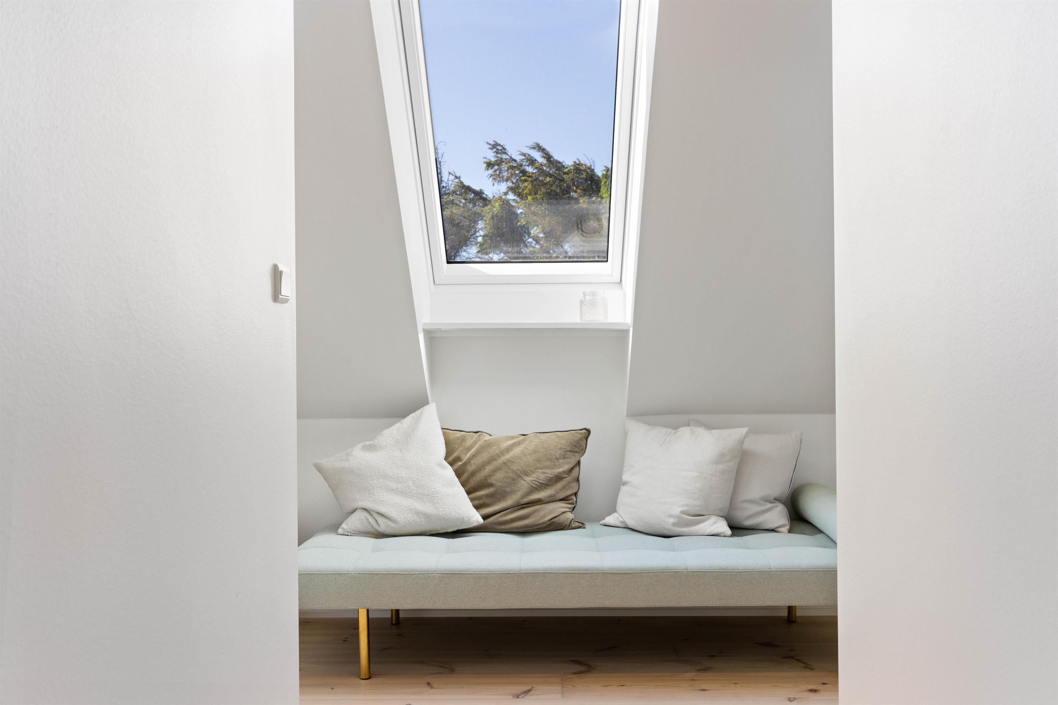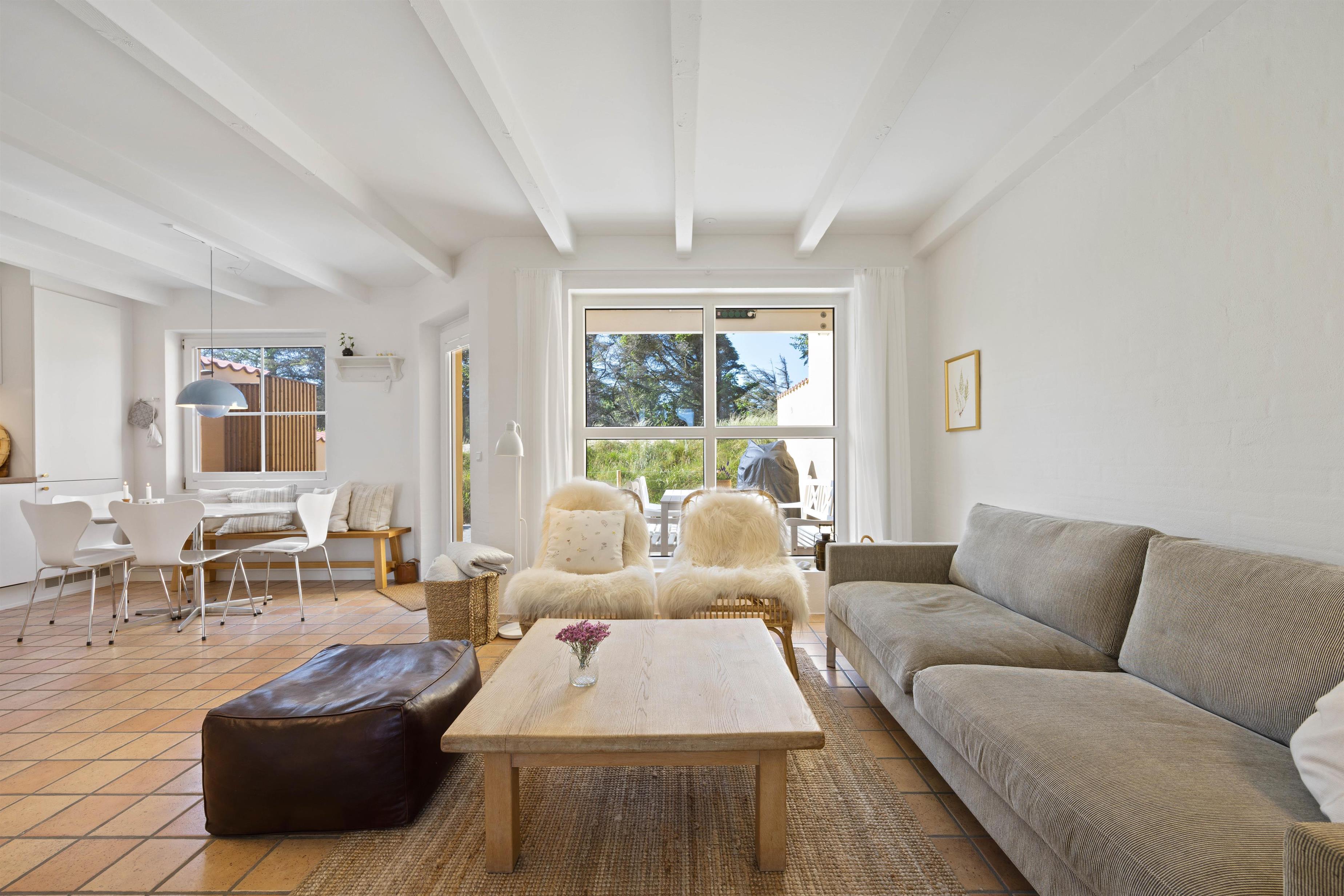 I stuen er der lækre kurvestole og en skøn sofa, som indbyder til filmhygge, brætspil og kvalitetstid med familie og venner. Køkkenalrummet/stuen har en indbygget brændeovn, som I kan bruge til de lidt koldere dage eller blot for hyggens skyld. Ferielejligheden er indrettet med tre soveværelser, som alle sammen har et fantastisk lysindfald og den nordiske, hyggelige indretning går igen her. Der er også mulighed for at vælge, om man som forældre vil sove nedenunder og give børnene førstesalen, eller man kan som vennepar have en etage hver.