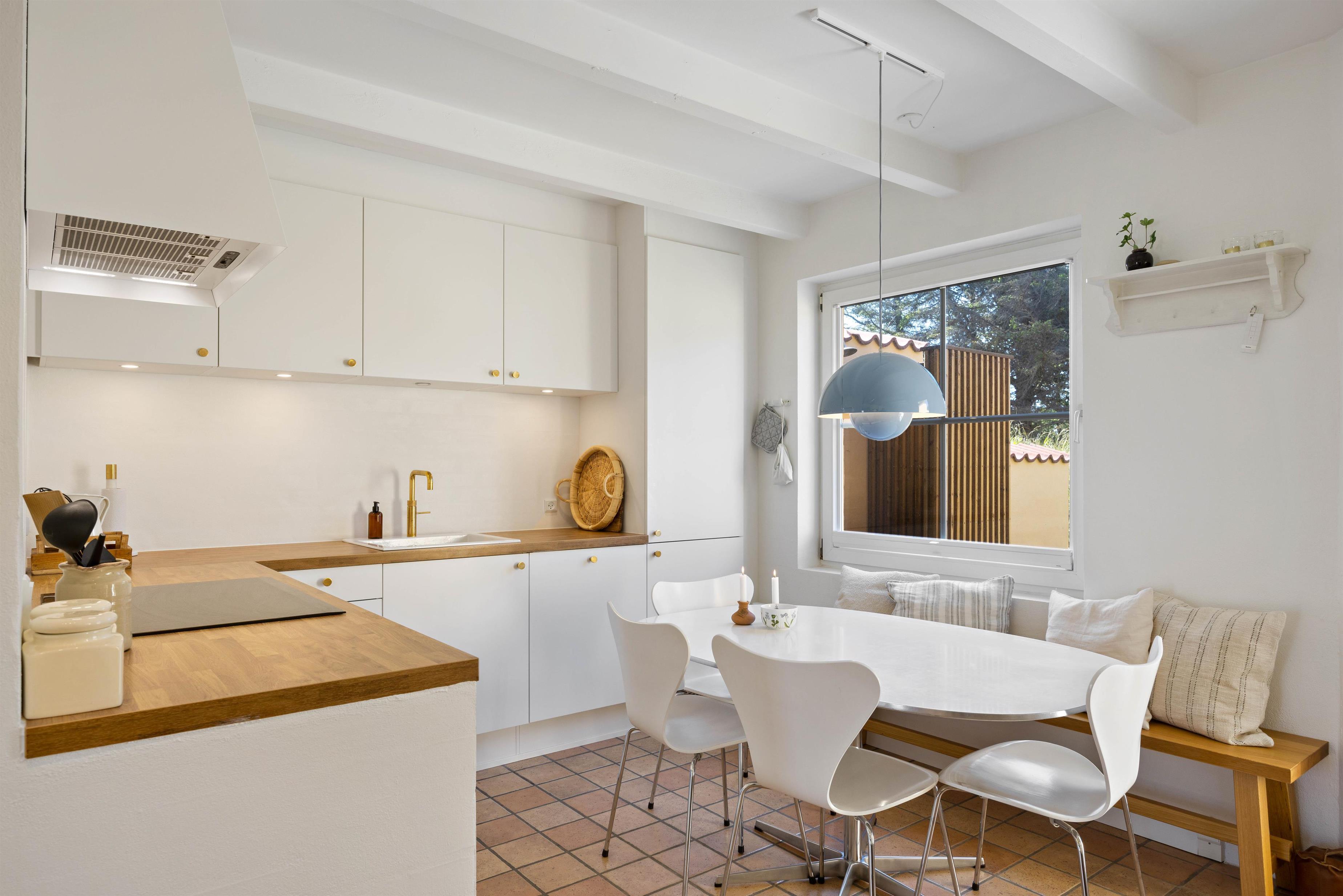 Ferielejligheden rummer et smukt, nyt, hvidt køkken, med alle de moderne faciliteter og har også quooker, så i hurtigt kan skolde sutteflasken, lave en kop the eller kaffe. Ubesværet kan i tilberede masser af nemt, lækkert feriemad, uden at bekymrer jer om opvasken, da opvaskemaskinen selvfølgelig klare dette for jer. Ydermere finder I en kombi vaskemaskine/tørretumbler i feriehuset, så I behøver heller ikke at bekymre jer om tøjvask under jeres ophold.
