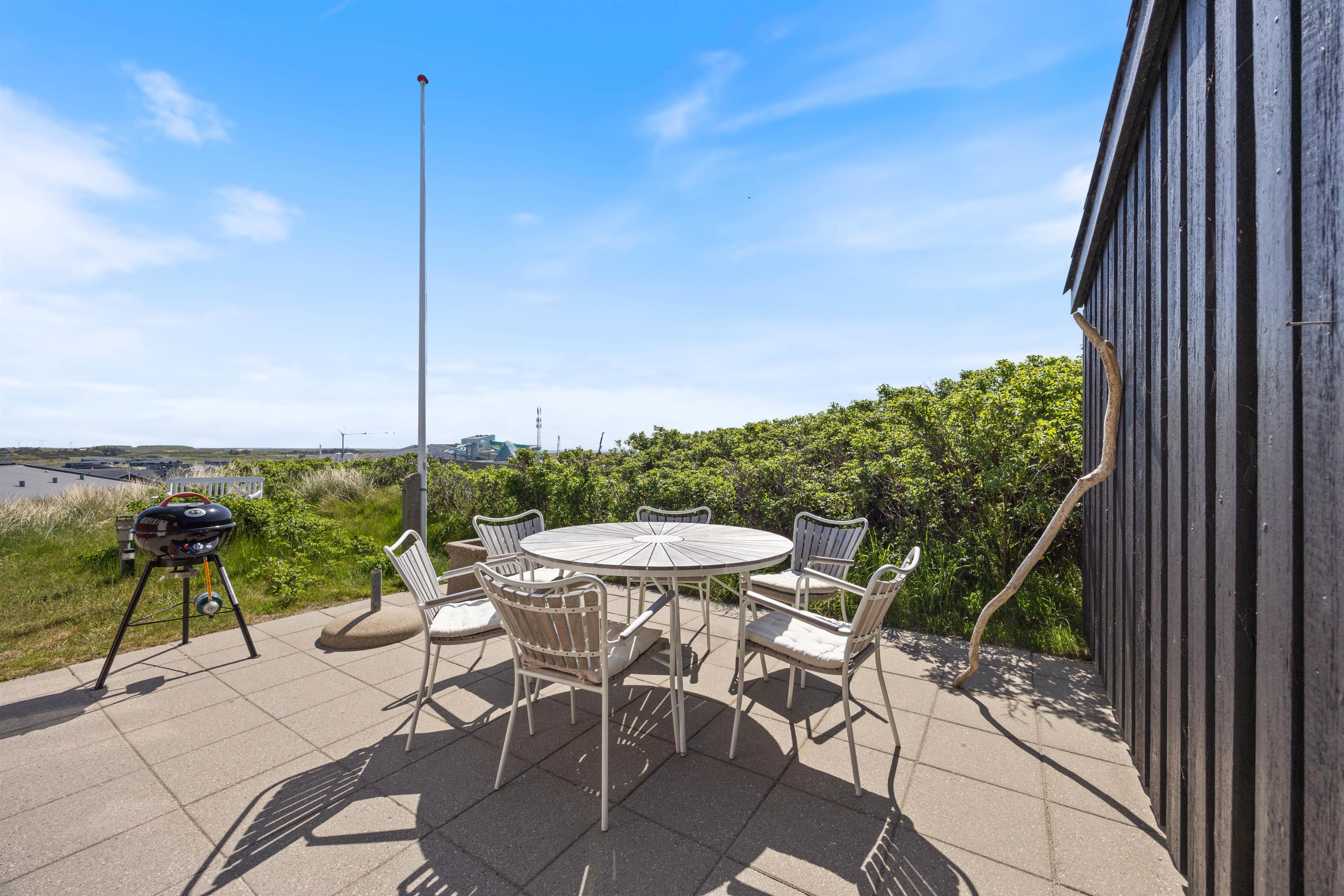 Det er ikke kun indendørs, at dette sommerhus i Søndervig imponerer. Udendørs finder I flere hyggelige terrasser, hvor I kan slappe af og nyde den vestjyske natur. Den sydvestvendte terrasse er oplagt til morgen- og formiddagssolen, mens terrassen mod vest inviterer til smukke solnedgange og aftensmad under åben himmel. Med grill til rådighed kan I også flytte madlavningen udenfor. Fra begge terrasser kan I nyde lyden af Vesterhavets brusen – en uforglemmelig og afslappende baggrundslyd