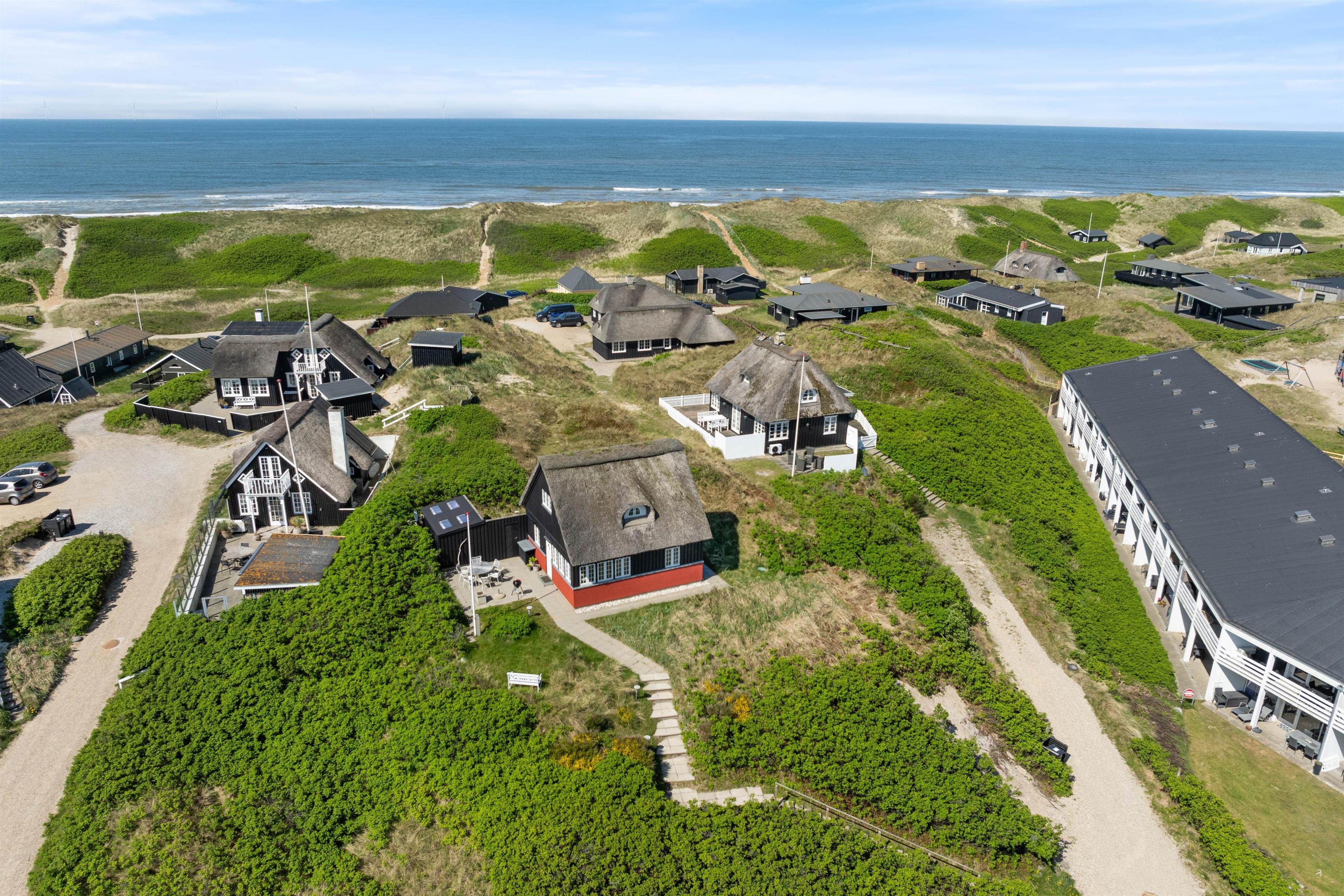 Der er kun 200 meter til det brusende Vesterhav, og Søndervigs livlige bymidte ligger omkring 500 meter væk. Her finder I supermarkeder, butikker, restauranter og aktiviteter – alt sammen lige ved hånden, når I bor i dette centralt beliggende sommerhus tæt på Vesterhavet.