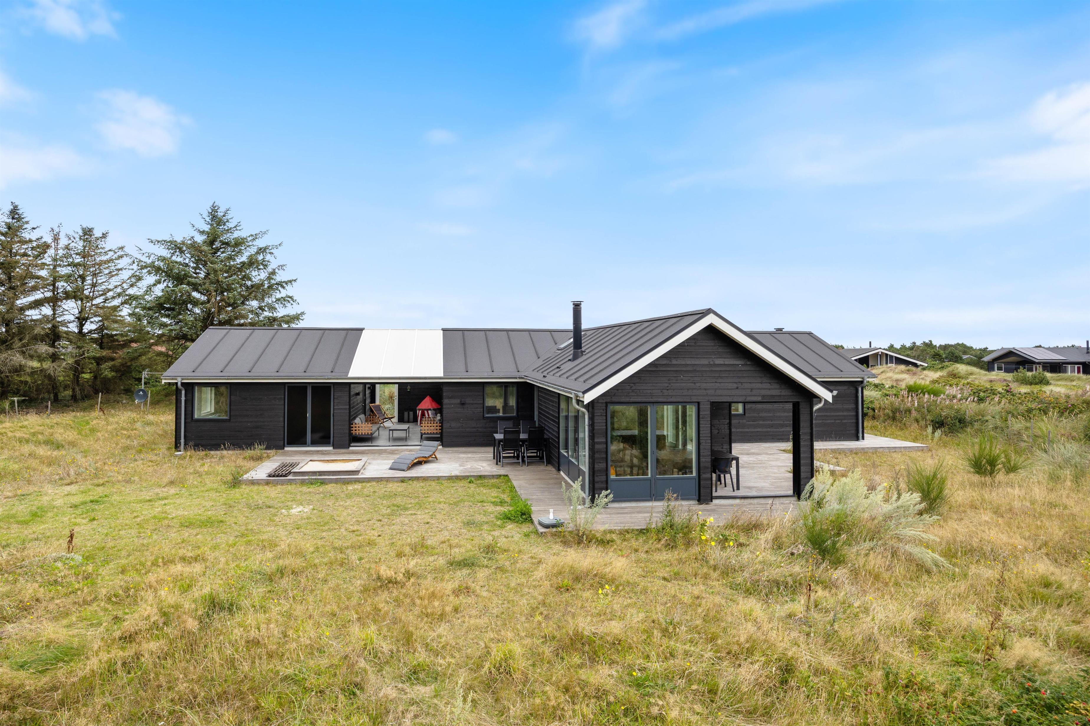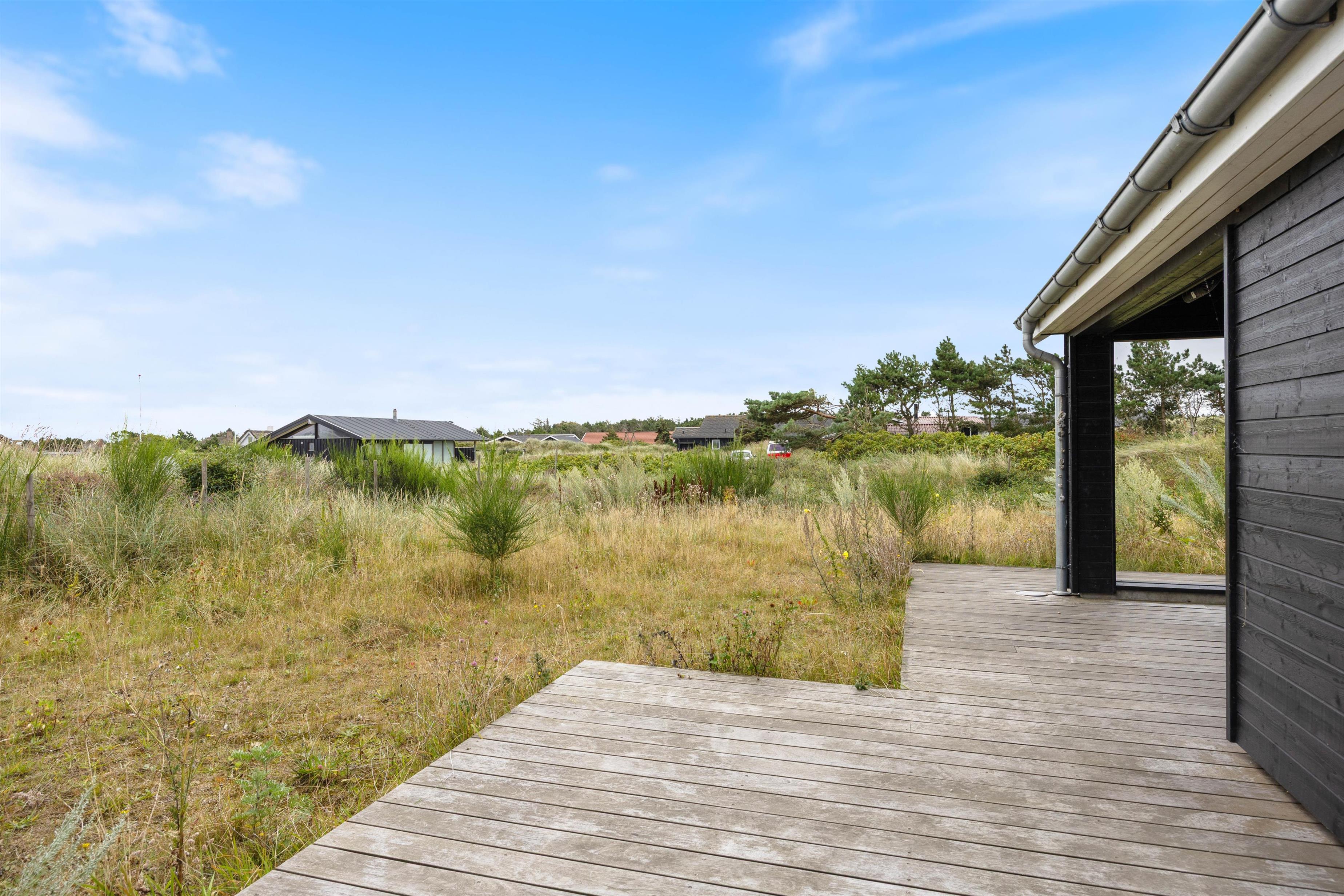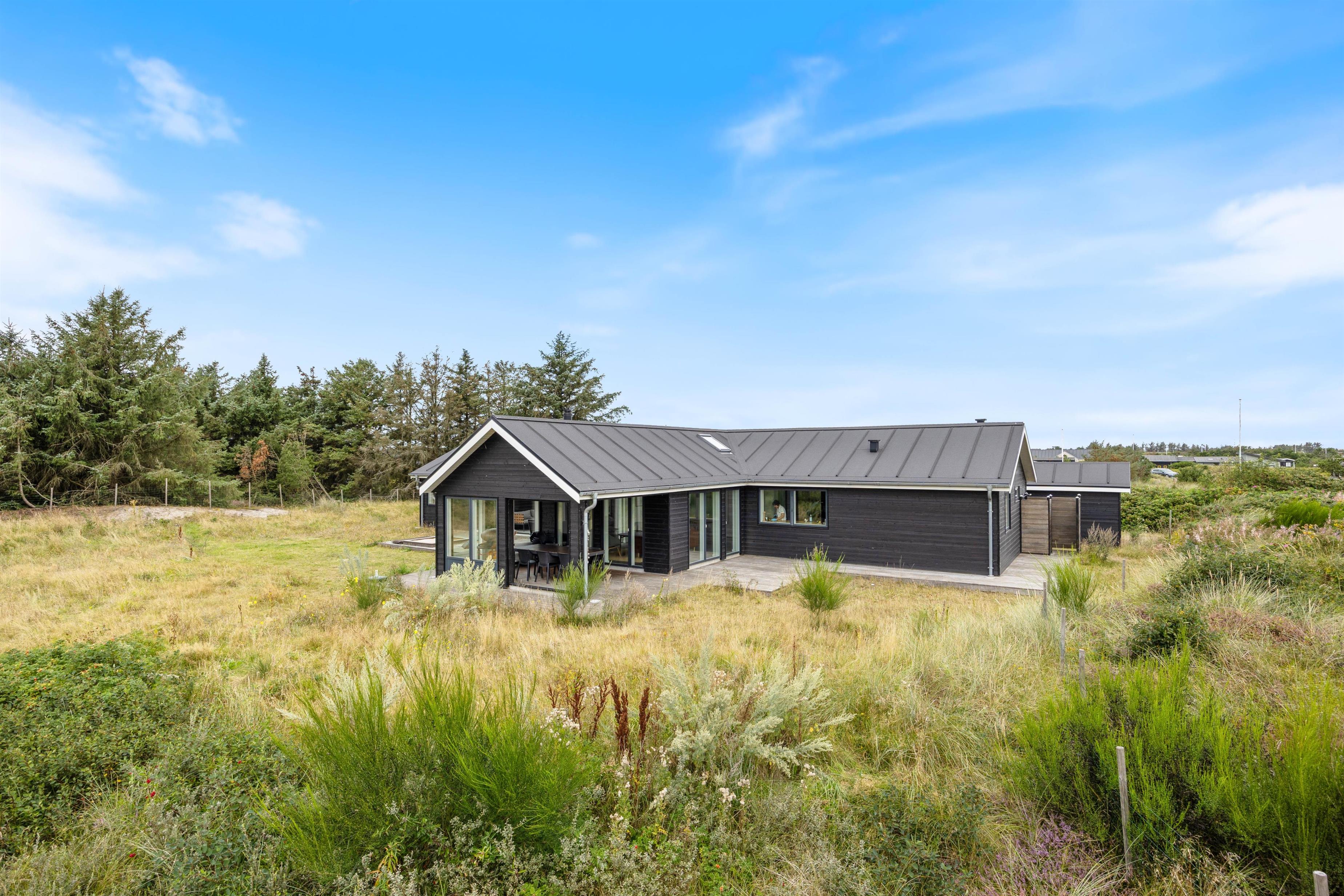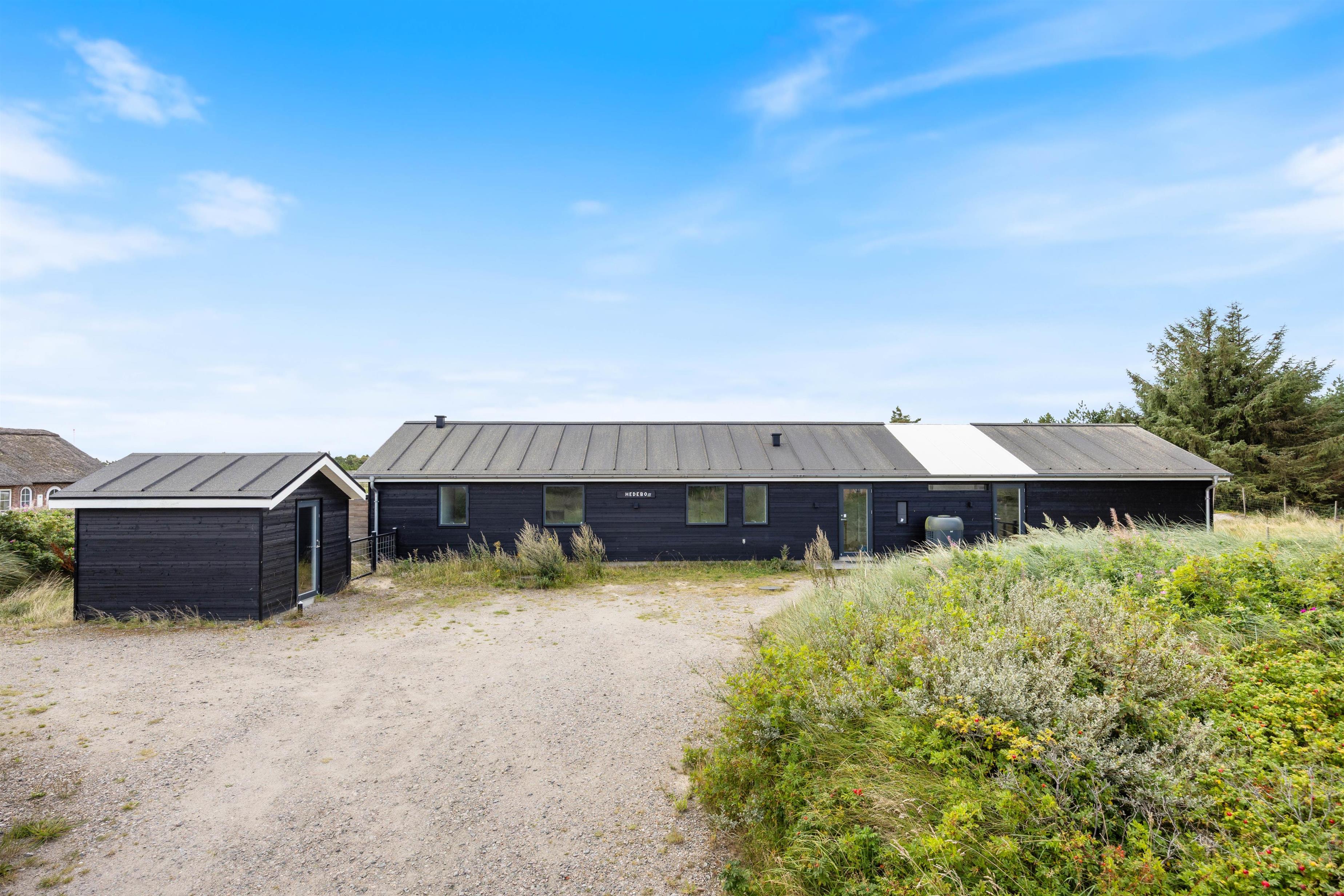 Sommerhuset på Hjelmevej 155 i Søndervig er bygget i 2022, og når I træder indenfor, bliver I mødt af en moderne indretning, som I uden tvivl vil føle jer hjemme i! Her lukker ovenlysvinduer og store vinduespartier masser af lys ind, som er med til at skabe den helt rette ferieatmosfære.