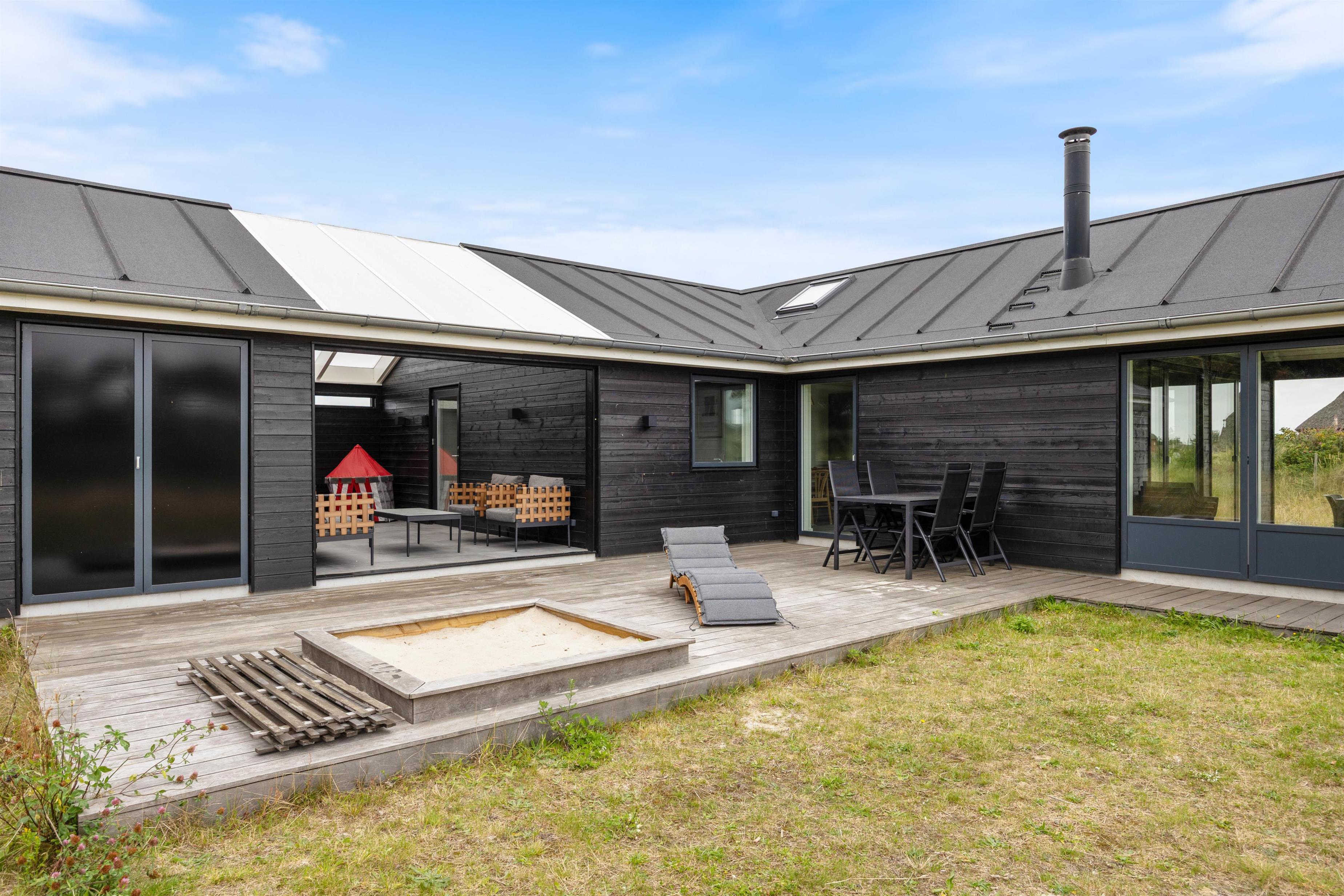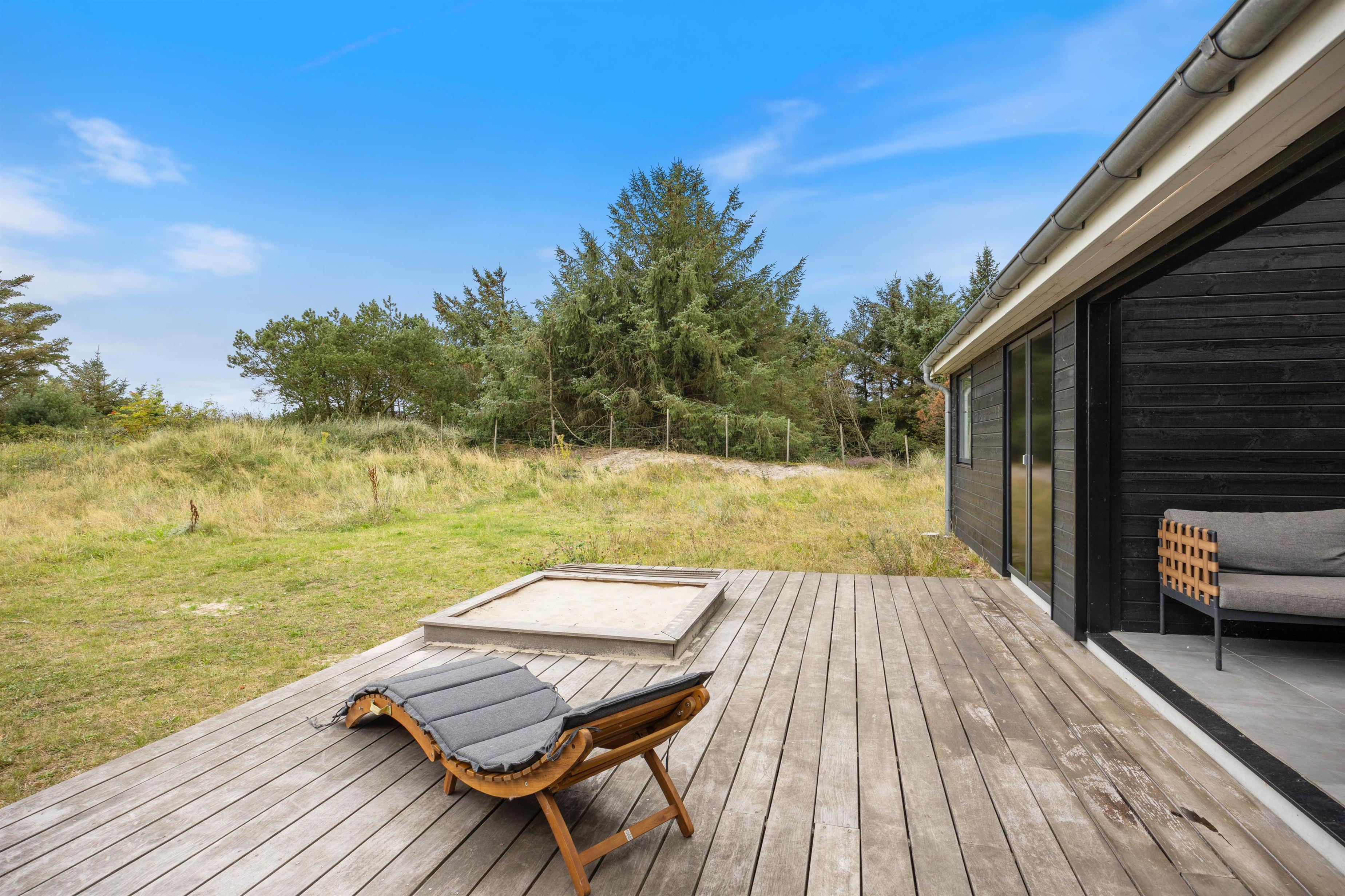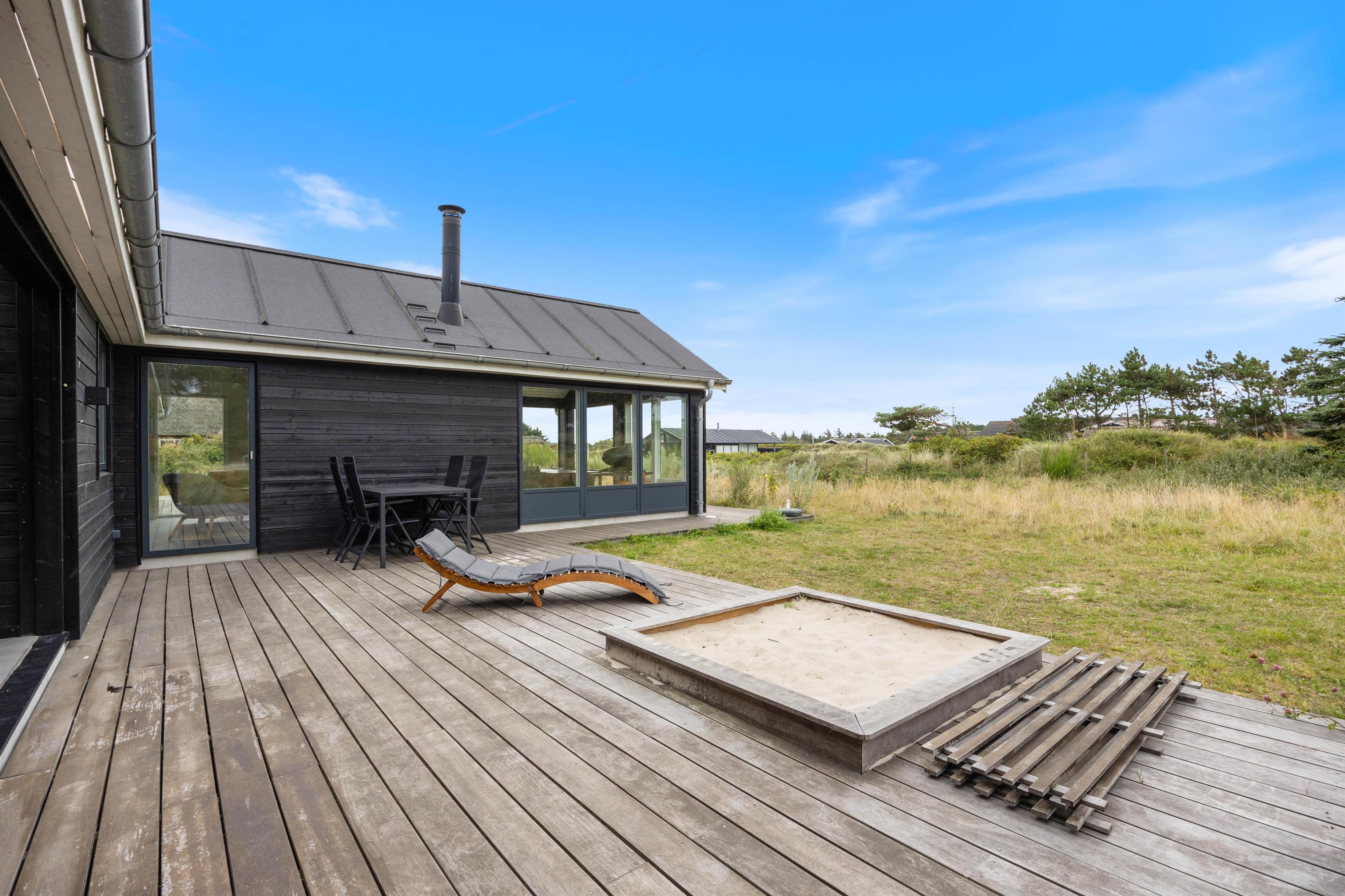 Der er også tænkt på feriens yngste gæster. På sommerhusets udeområde er der nemlig en sandkasse til dem, hvor de kan bygge nogle flotte sandslotte.