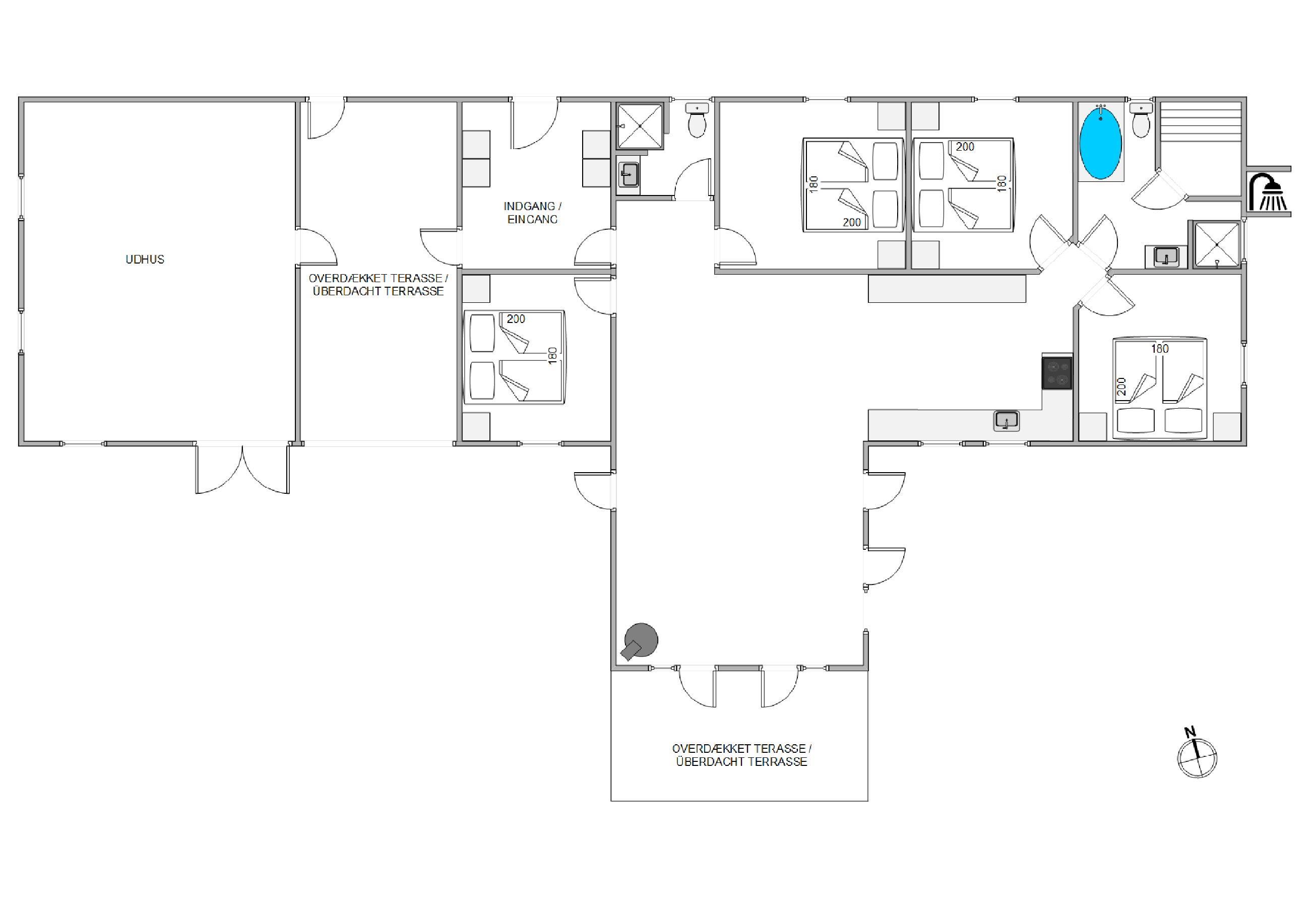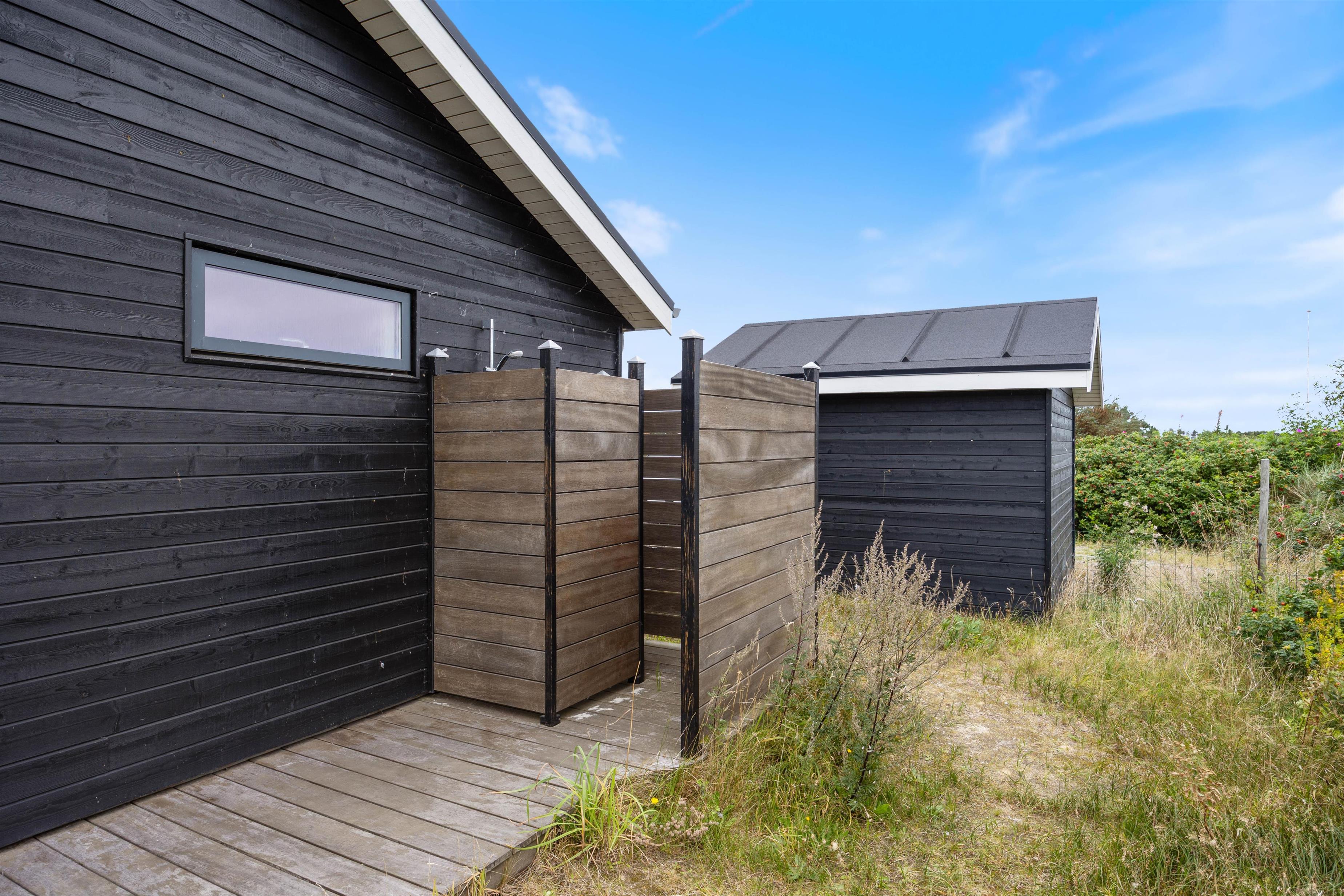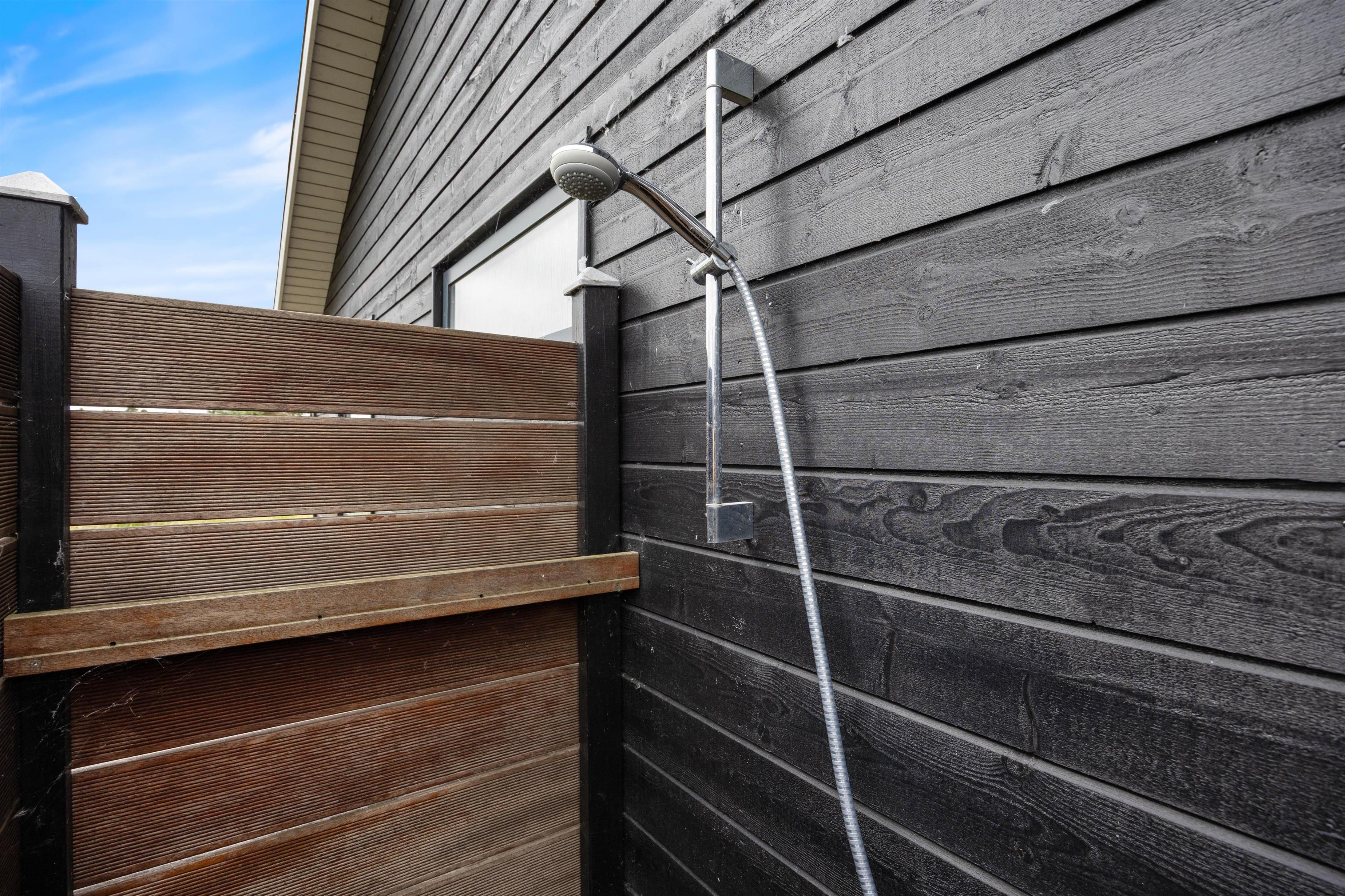 På terrassen venter jer også en udebruser, som I kan skylle jer under. Hvis I har været en tur ved Vesterhavet, kan I skylle tæerne under udebruseren for at få det sidste sand af. I vil kunne benytte jer af udebruseren i perioden april til november.