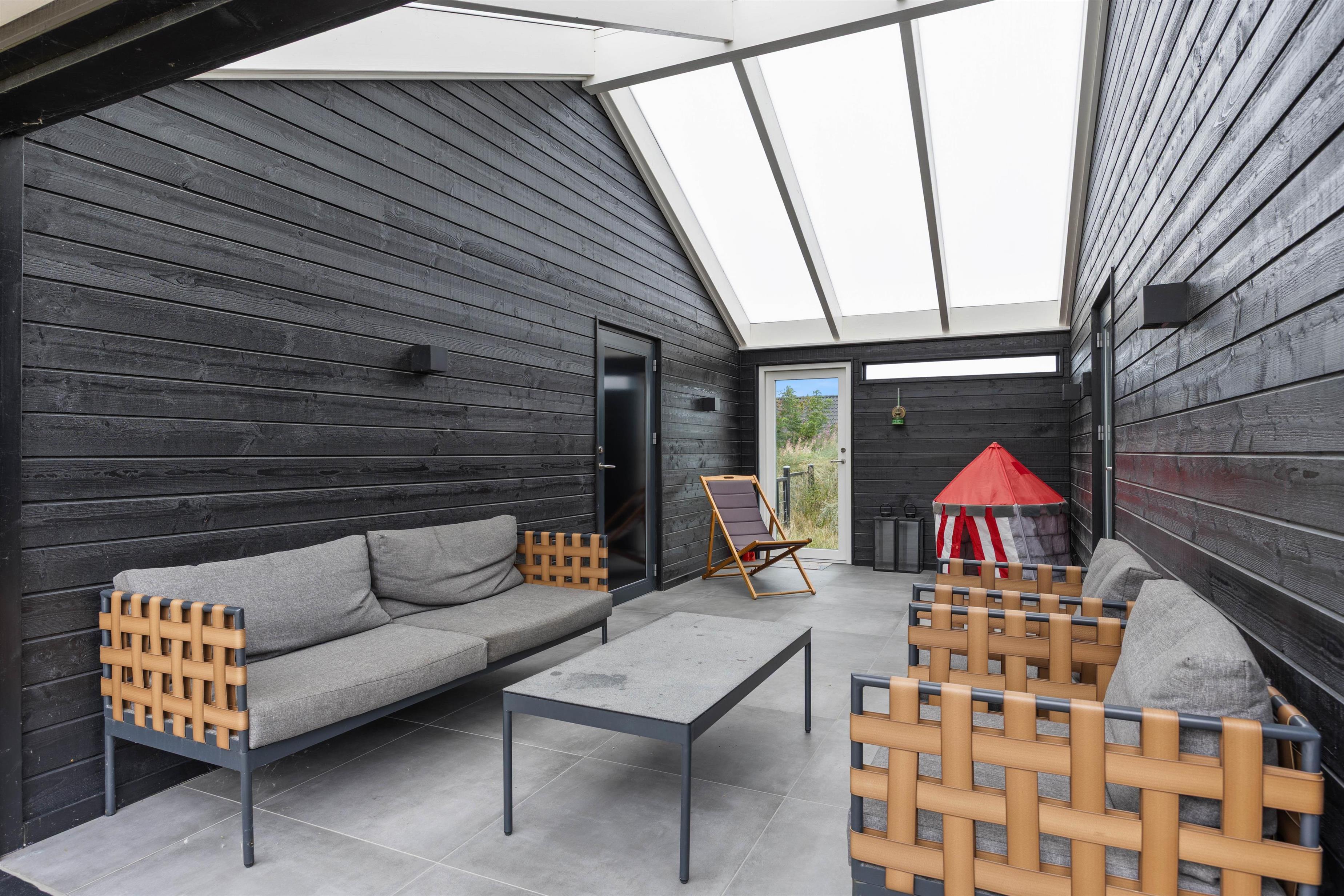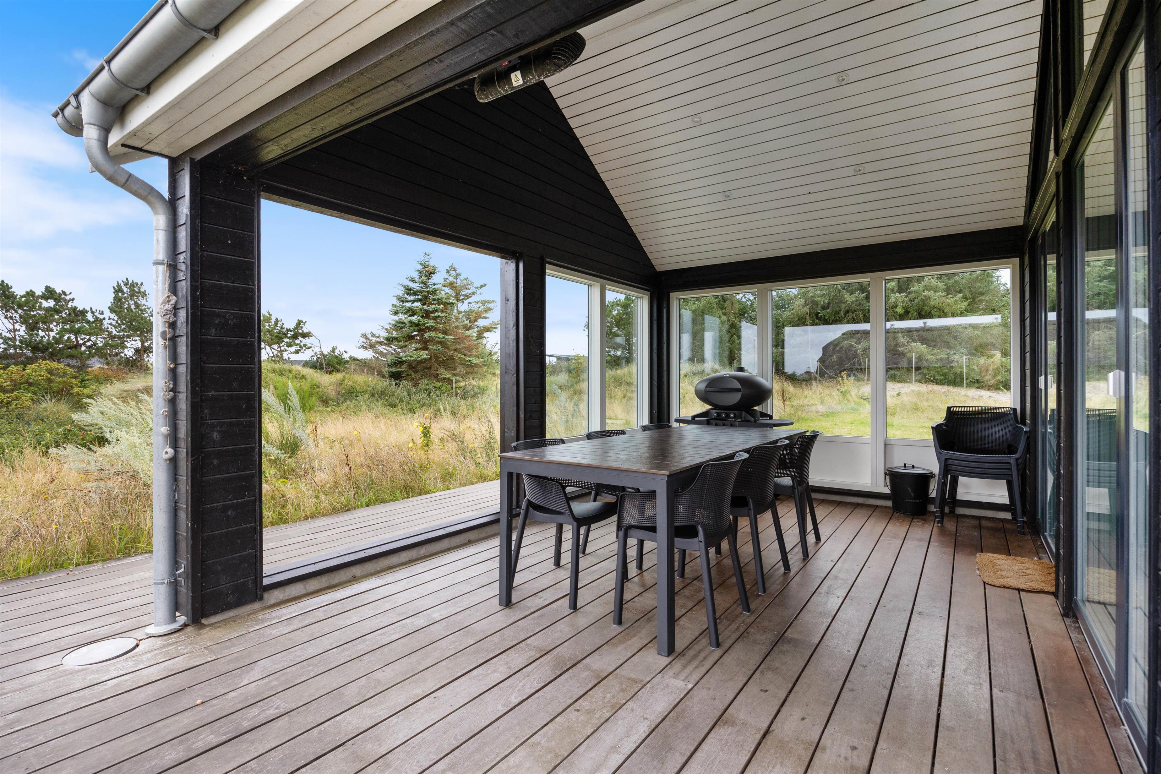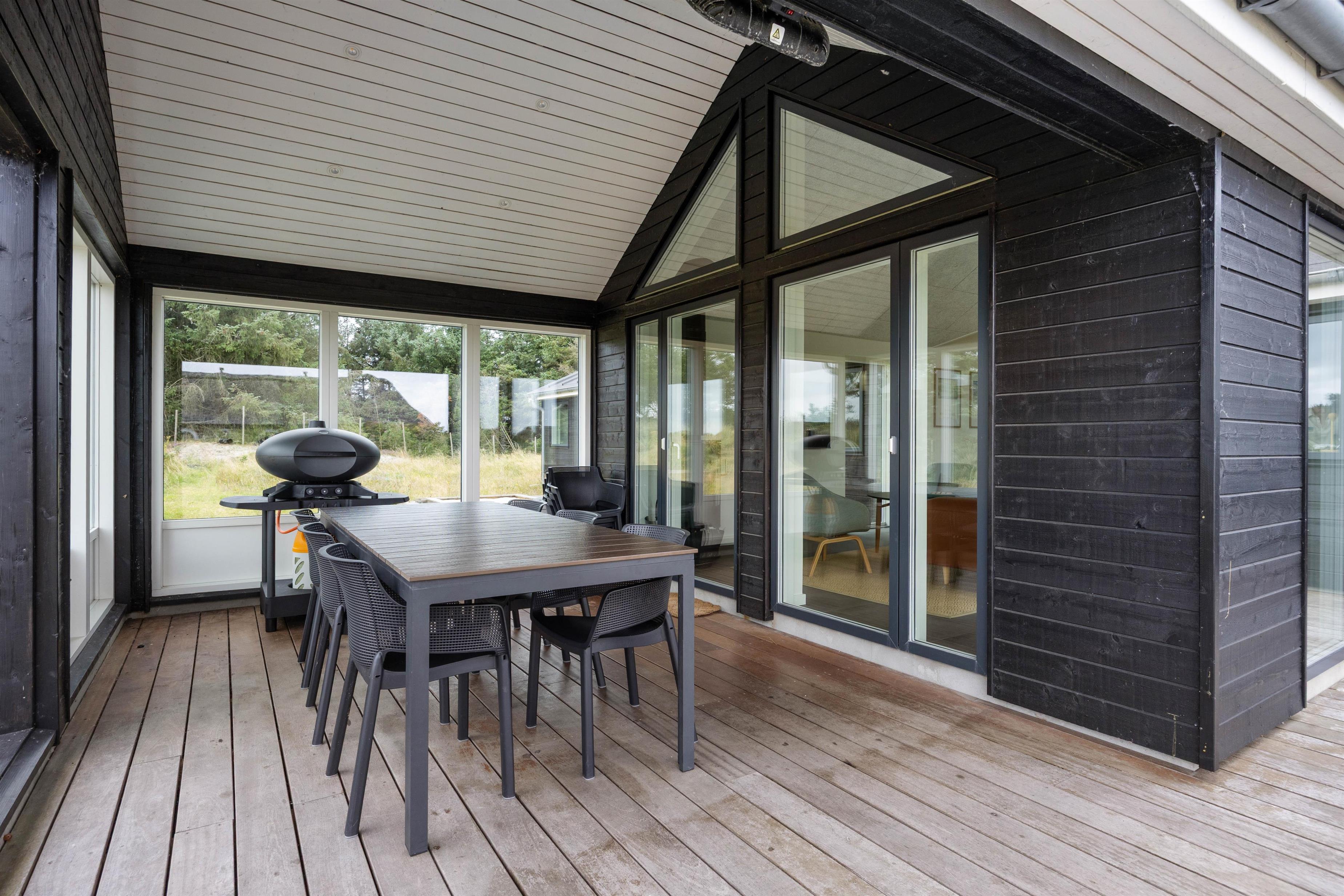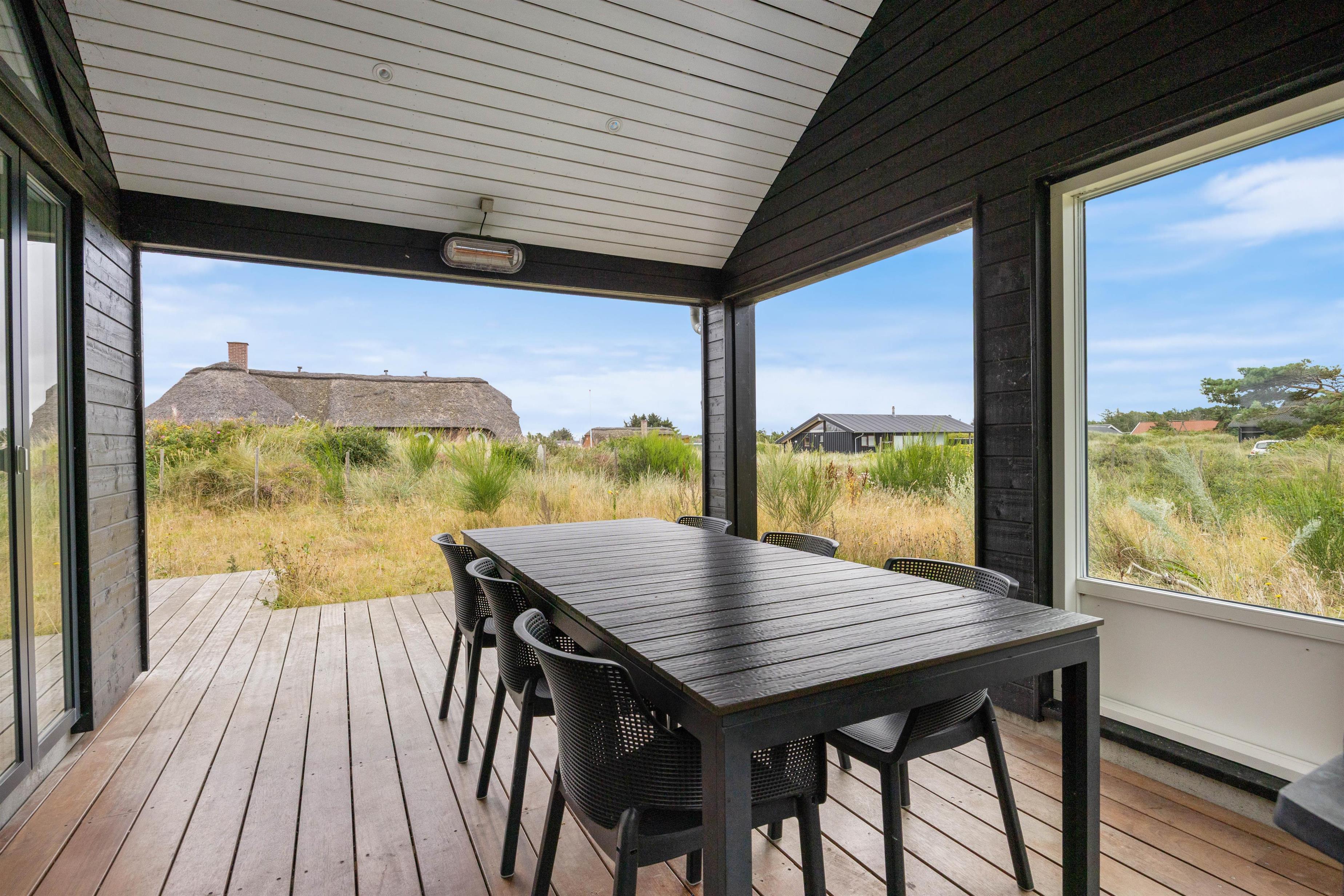 Sommerhuset byder på et dejligt udeområde, og her kan I nyde mange skønne stunder i det fri i løbet af jeres ferie. Her er der havemøbler og liggestole til jer, som I kan finde jer til rette i på en god plads, hvor I kan slappe af i solen. Noget af terrassen er desuden overdækket og afskærmet, så her kan I altså sidde i ly og læ, hvis vejret ikke er i top.