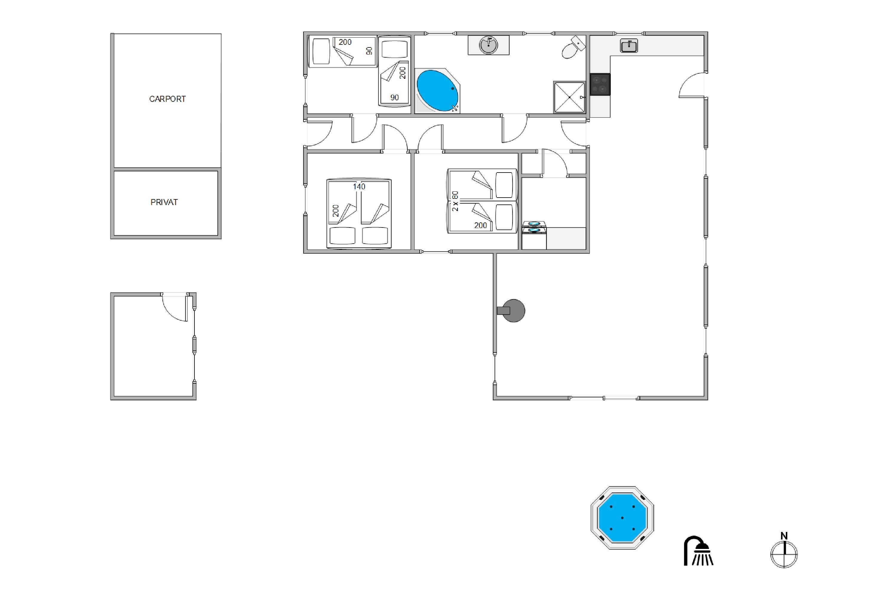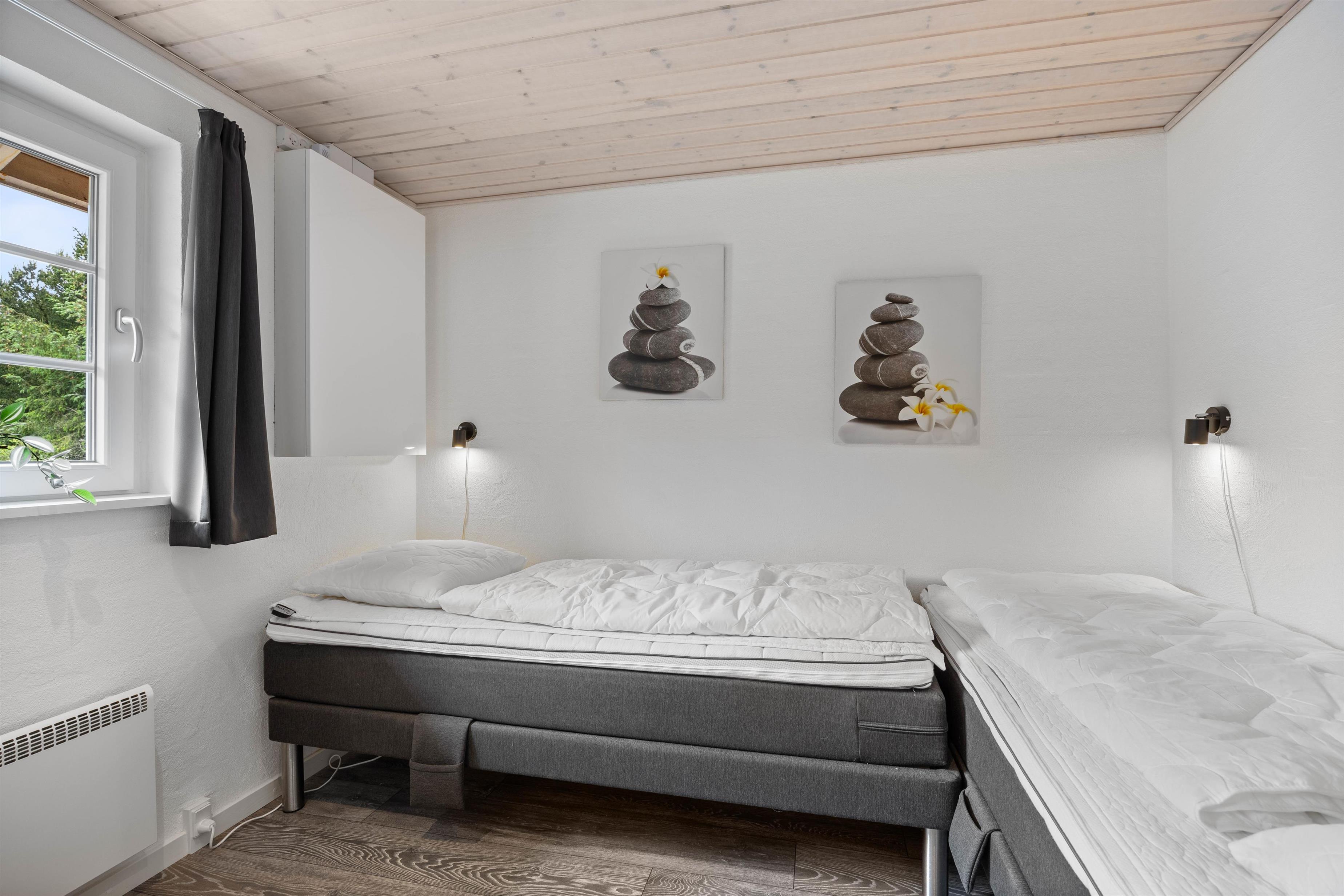 Feriehuset har 3 soveværelser og er indrettet til op til 6 personer. 2 af værelserne har dobbeltsenge, mens det 3. værelse har 2 enkeltsenge. For at få alle gæster til at føle sig hjemme har badeværelset gulvvarme og et afslappende spabad. Takket være disse faciliteter kan I virkelig koble af og bare nyde jeres ferie