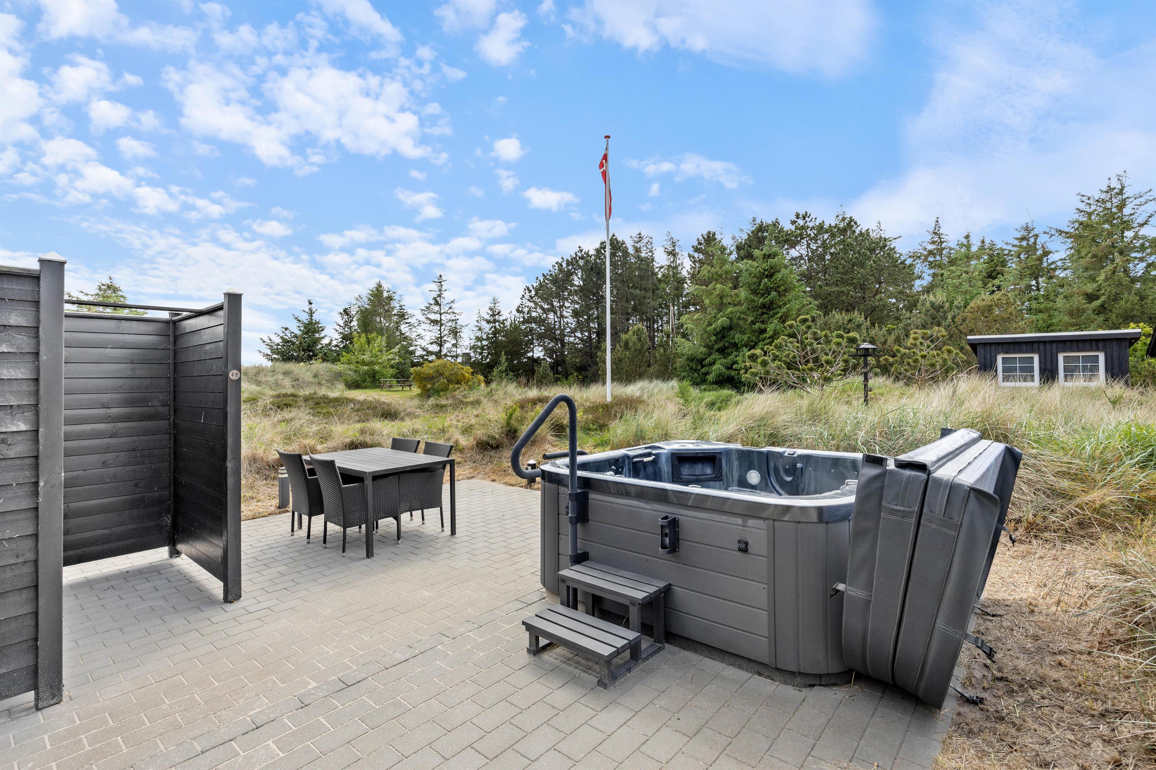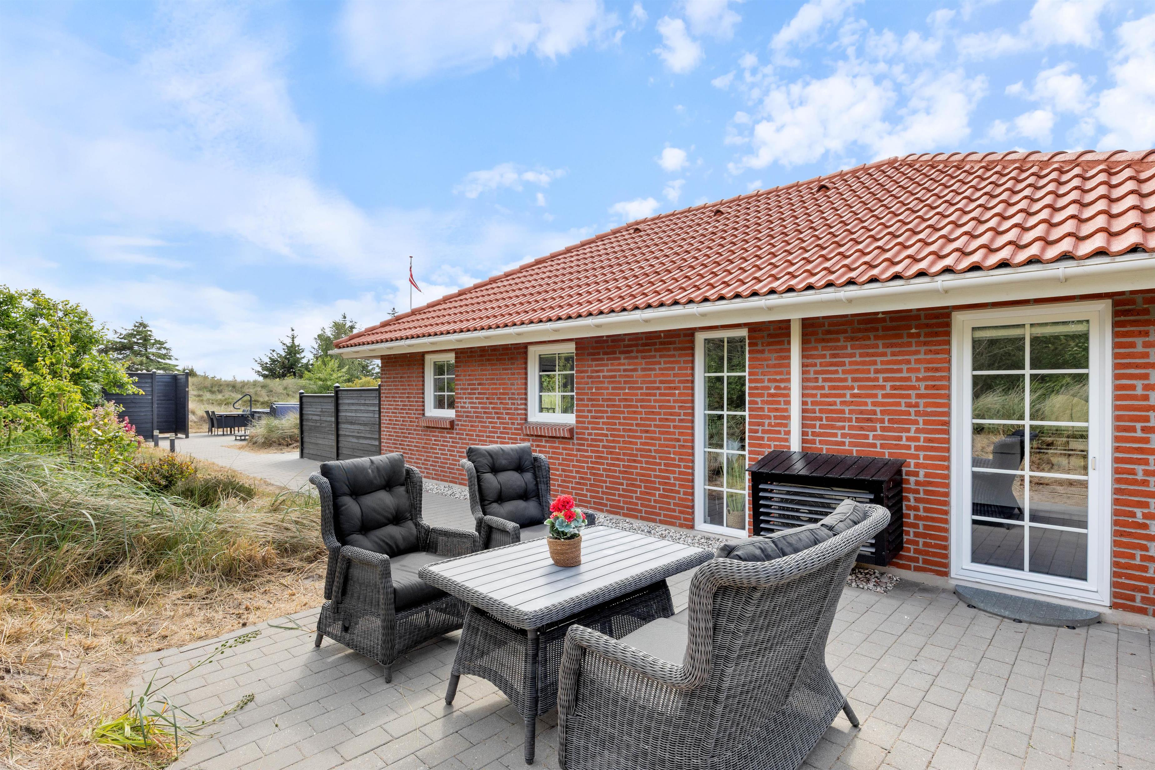 Udenfor sommerhusets 4 vægge finder I en rummelig naturgrund på 2000 m², som giver masser af plads til afslapning og udehygge. Den afskærmede terrasse er ideel til rolige timer, mens den åbne terrasse og grillfaciliteterne indbyder til hyggelige grillaftener. Havemøblerne inviterer jer til at nyde den friske luft ved Vesterhavet. Efter en lang dag på stranden, som kun ligger små 850 meter væk, kan I vaske sandet af fødderne ved sommerhusets udendørs bruser, der er tilgængelig fra april til november. I kan sætte jer godt tilrette i udespaen og nyde tilværelsen i fulde drag.