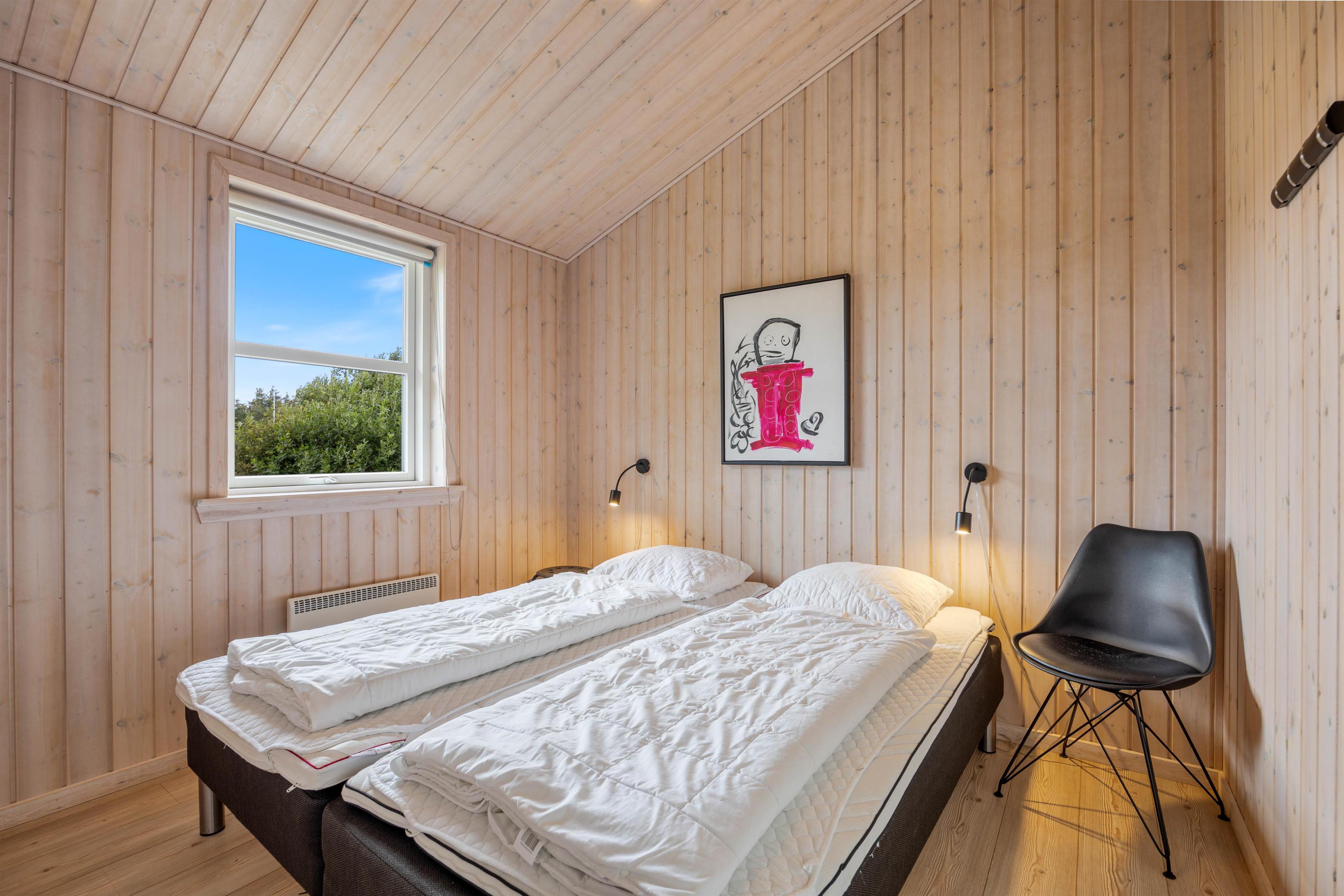 Et ophold i dette feriehus byder på 91 veludnyttede kvadratmeter. Sommerhuset er opført i 2012 og byder på en rigtig god indretning og de perfekte rammer til en rigtig god ferie. Med tre lyse og flotte soveværelser, hvoraf to værelser er med dobbeltsenge og det sidste er et super sødt børneværelse, med forskudt køjeseng, som gør værelset endnu mere hyggeligt. For at opholde skal være så komfortabelt som muligt, er her også et stort og flot badeværelse med bruser, badekar og sauna.