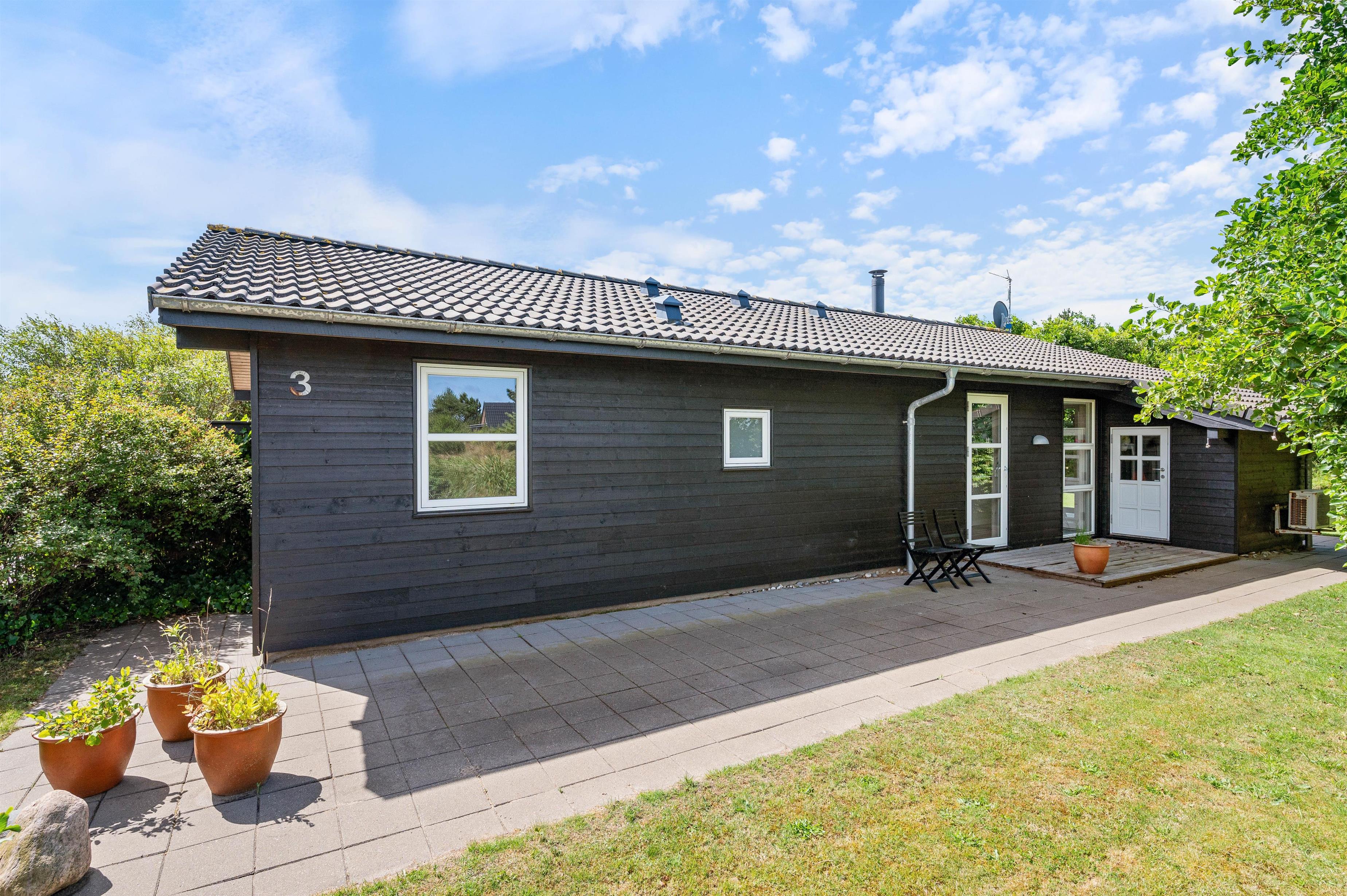 På Hjelmevej 3 finder I dette dejlige feriehus, der kan danne rammen om jeres næste afslappende ferie ved Vesterhavet. Det er et fremragende feriehus med rigtig god indretning. Her er hyggeligt og smagfuldt indrettet, med køkken i åben forbindelse med en lys og indbydende dagligstue. Fra stuen er der udgang til en stor, delvist overdækket terrasse. Huset ligger på en naturlig afskærmet grund.