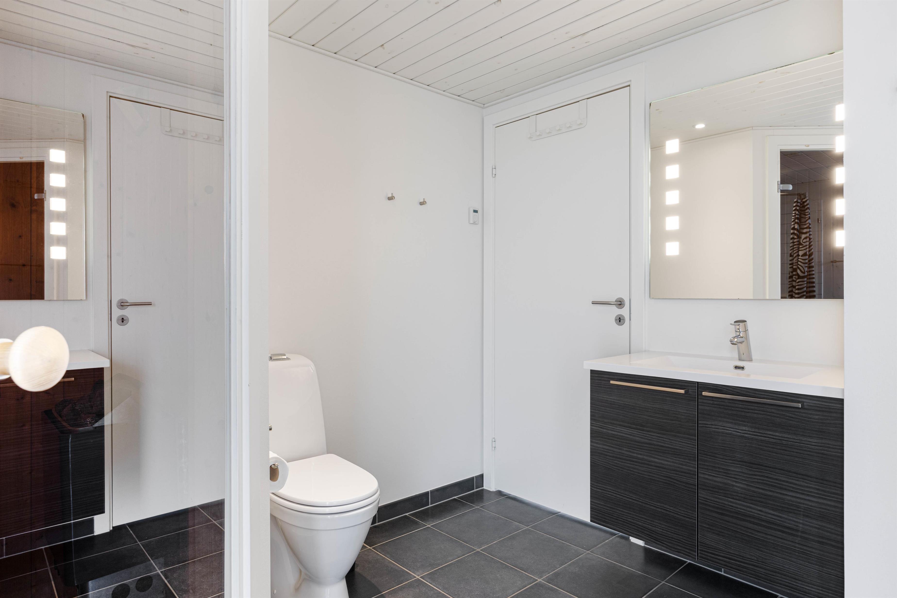 Der er 2 dejlige badeværelser – det ene med sauna og udgang til de skønne træterrasser, der omgiver feriehuset. På den lukkede og delvist overdækkede terrasse, er der en lækker udespa, som børnene vil elske at bade i om dagen, og hvori de voksne kan slappe af med et glas vin under stjernehimlen om aftenen. Den perfekte afslutning på en aktiv dag!