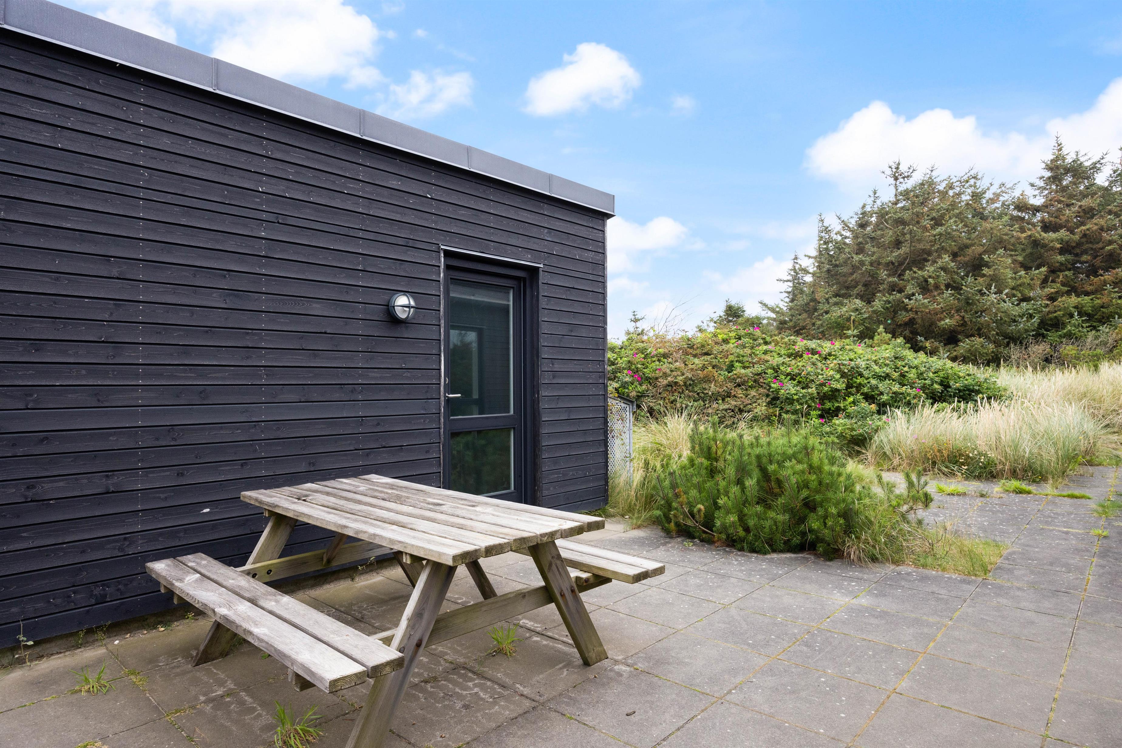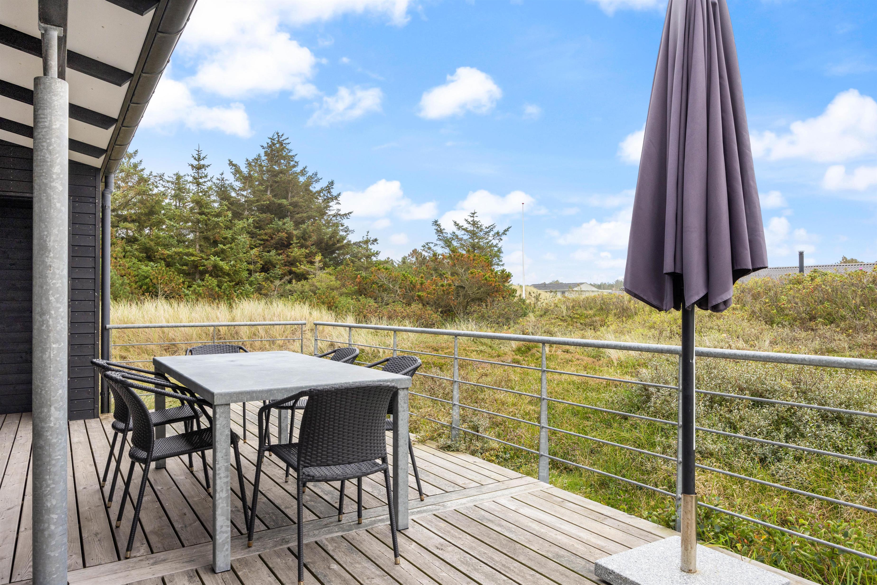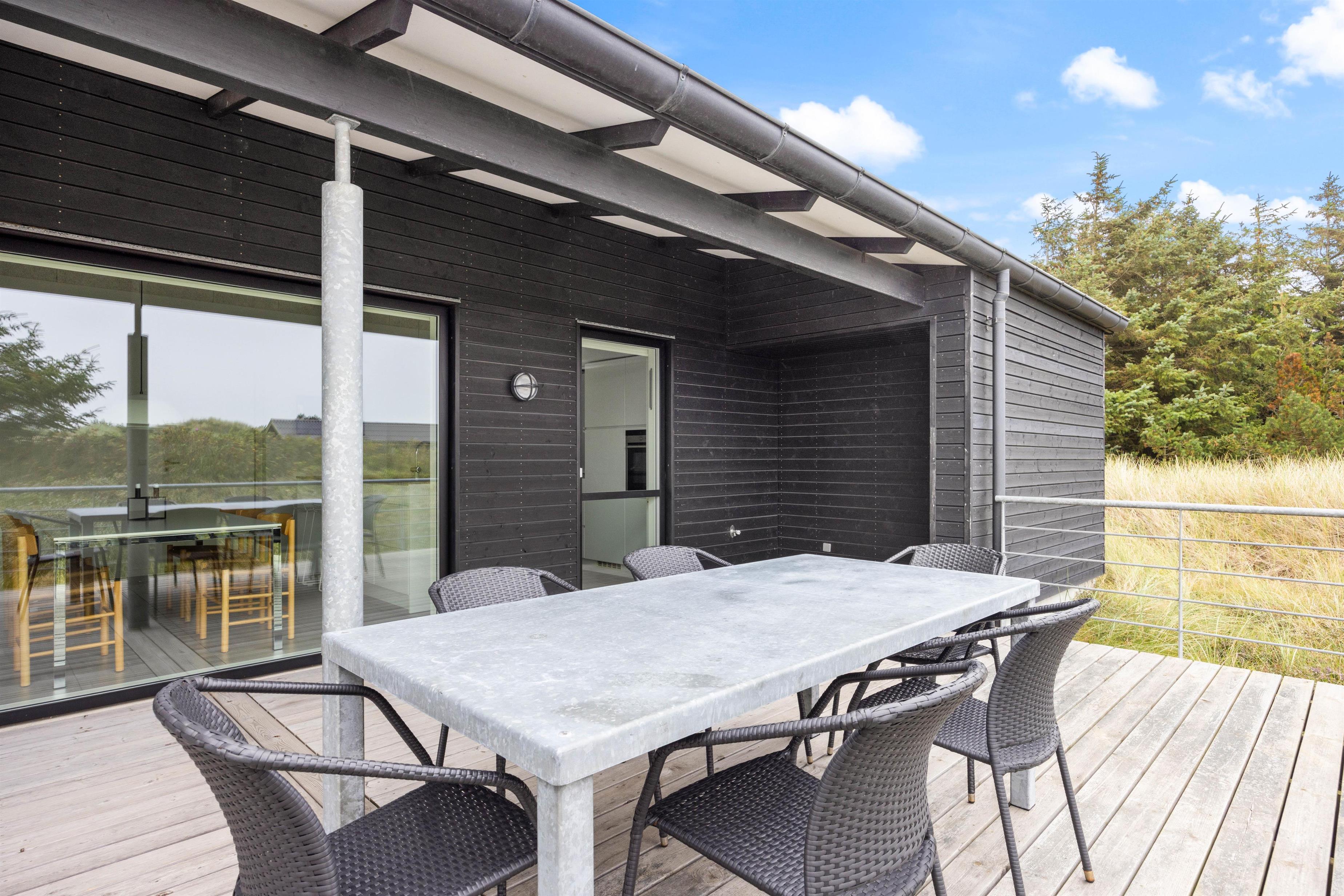 Uanset vejr og vind kan du altid finde læ ved dette sommerhus. Der er terrasser på alle sider af huset – med havemøbler og grill. Alternativt kan I tænde op i den udendørs grill og nyde et måltid i det fri. Sommerhusets terrasseområder byder på både overdækket, åben og afskærmet terrasse, hvor havemøblerne inviterer til udendørs spisning og hyggelige stunder.