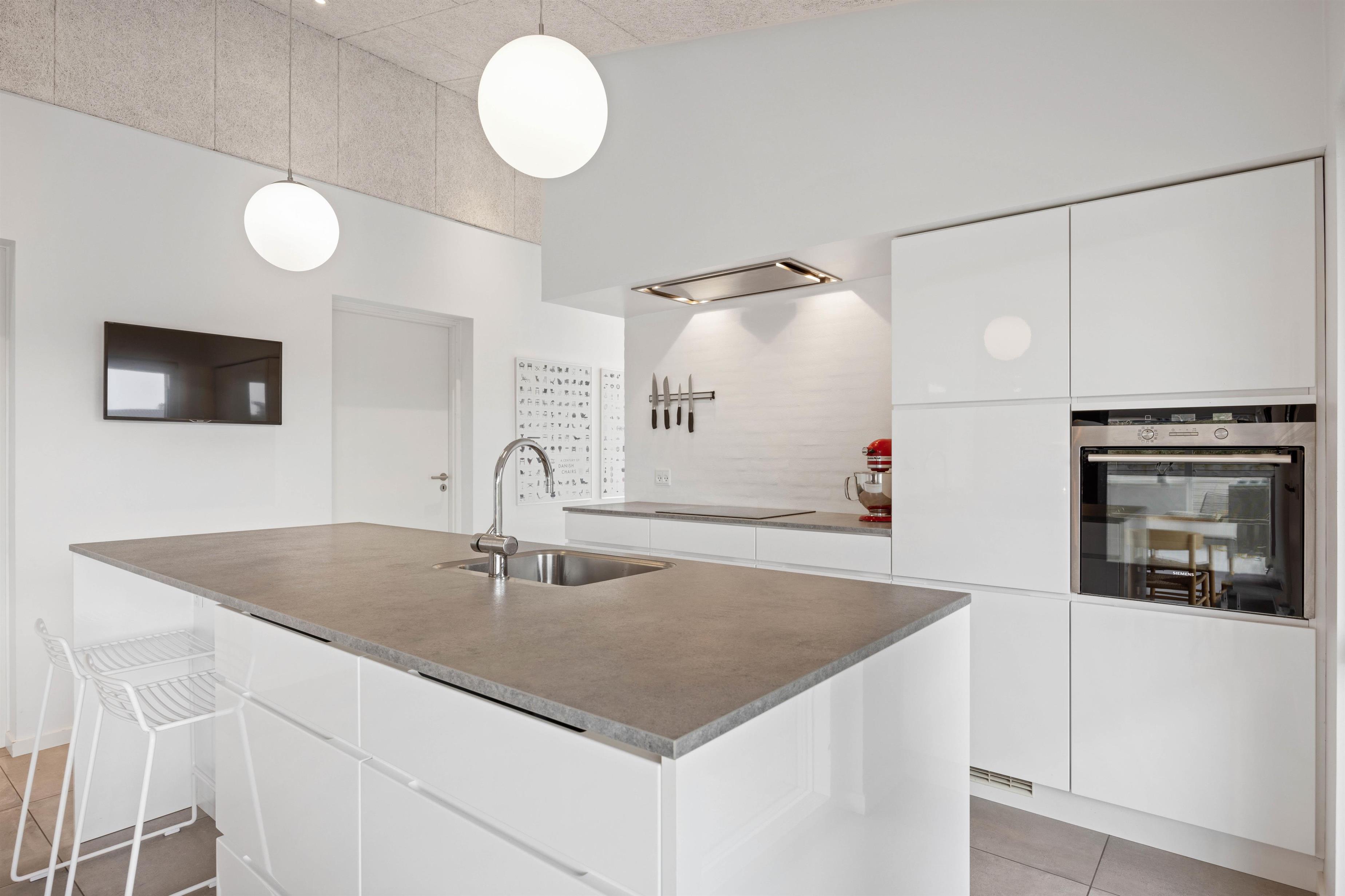 Feriehuset er udstyret med alle nødvendigheder til, at I kan lave dejlige måltider sammen. Køkkenet har opvaskemaskine så I ikke behøver at bruge masser af tid på kedelige gøremål, samt en 90 liter separat fryser, perfekt til opbevaring af alle jeres madvarer.