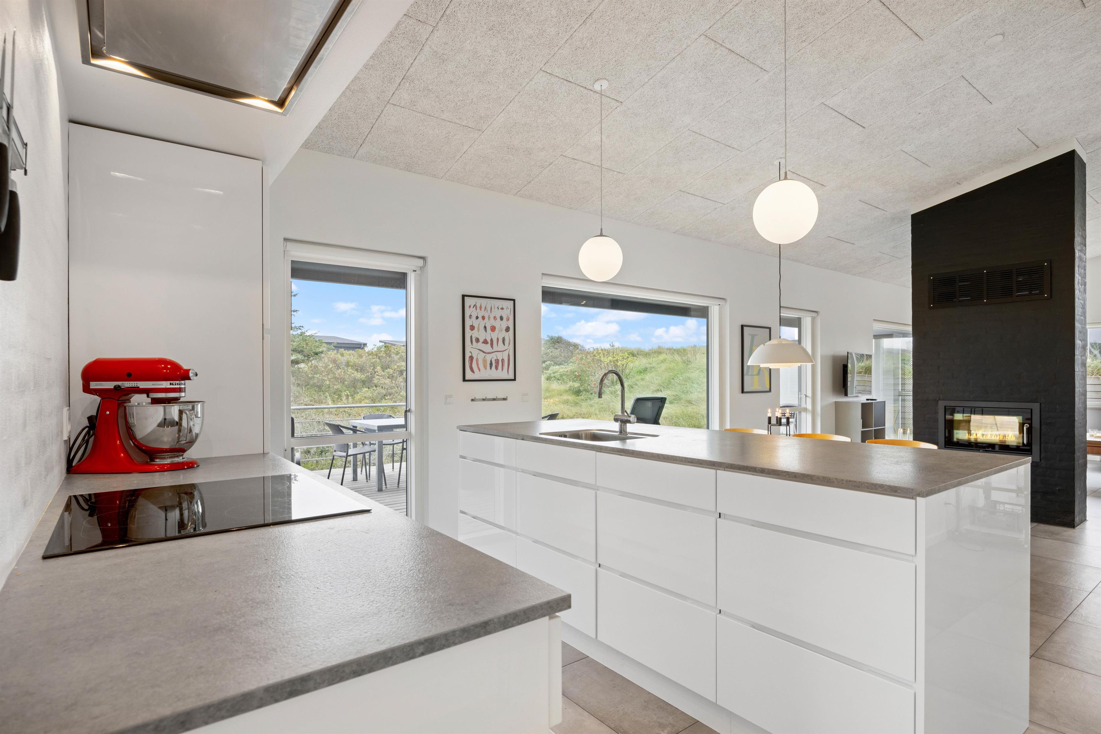 Her på Hjelmevej 159 er plads til seks personer i tre store og rummelige soveværelser. De to af værelserne er med dobbeltsenge og det sidste med to enkeltsenge. Hjerterummet i det moderne og stilfuldte sommerhus er helt sikkert det rummelige køkken-alrum. Her går loftet til kip hvilket giver en super god rummelig, samt de mange store vinduespartier sørger for et fantastisk lysindfald, der altsammen er med til at skabe en lys og rolig atmosfære, der er med give jer den helt rigtige feriestemning. I kan også tænde op i den hyggelige pejseindsats, og nyde flammernes knitren med en kop varm kakao eller kaffe.