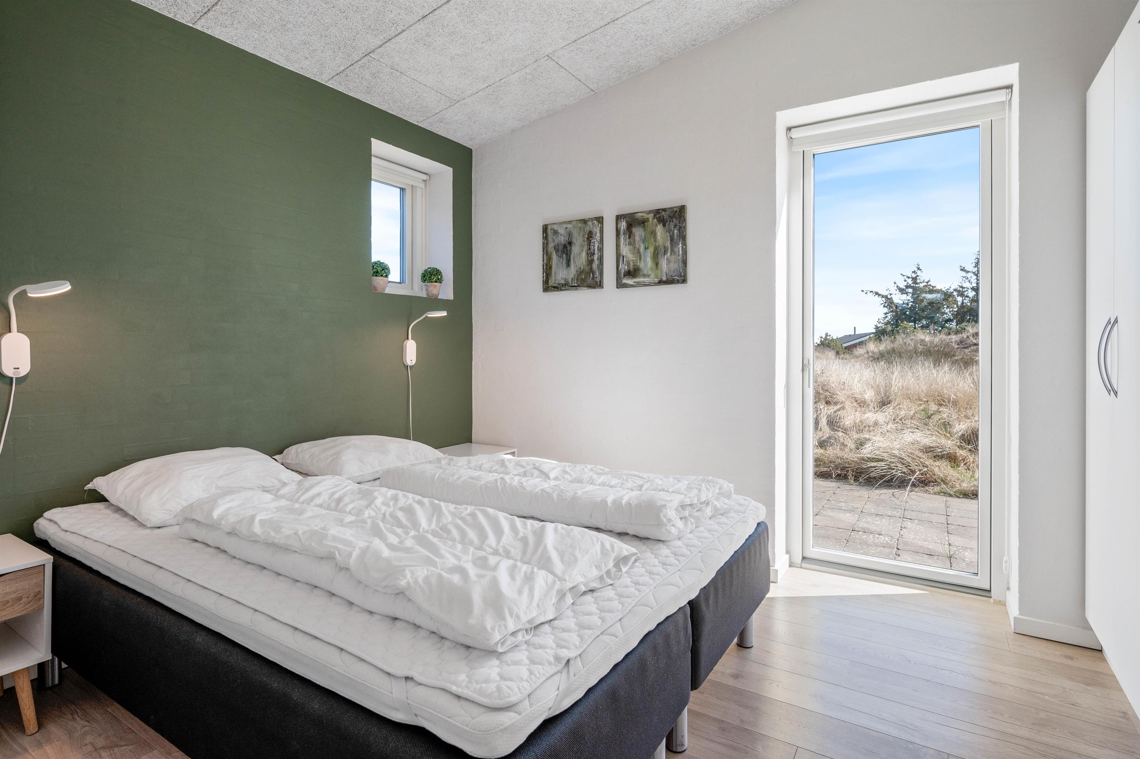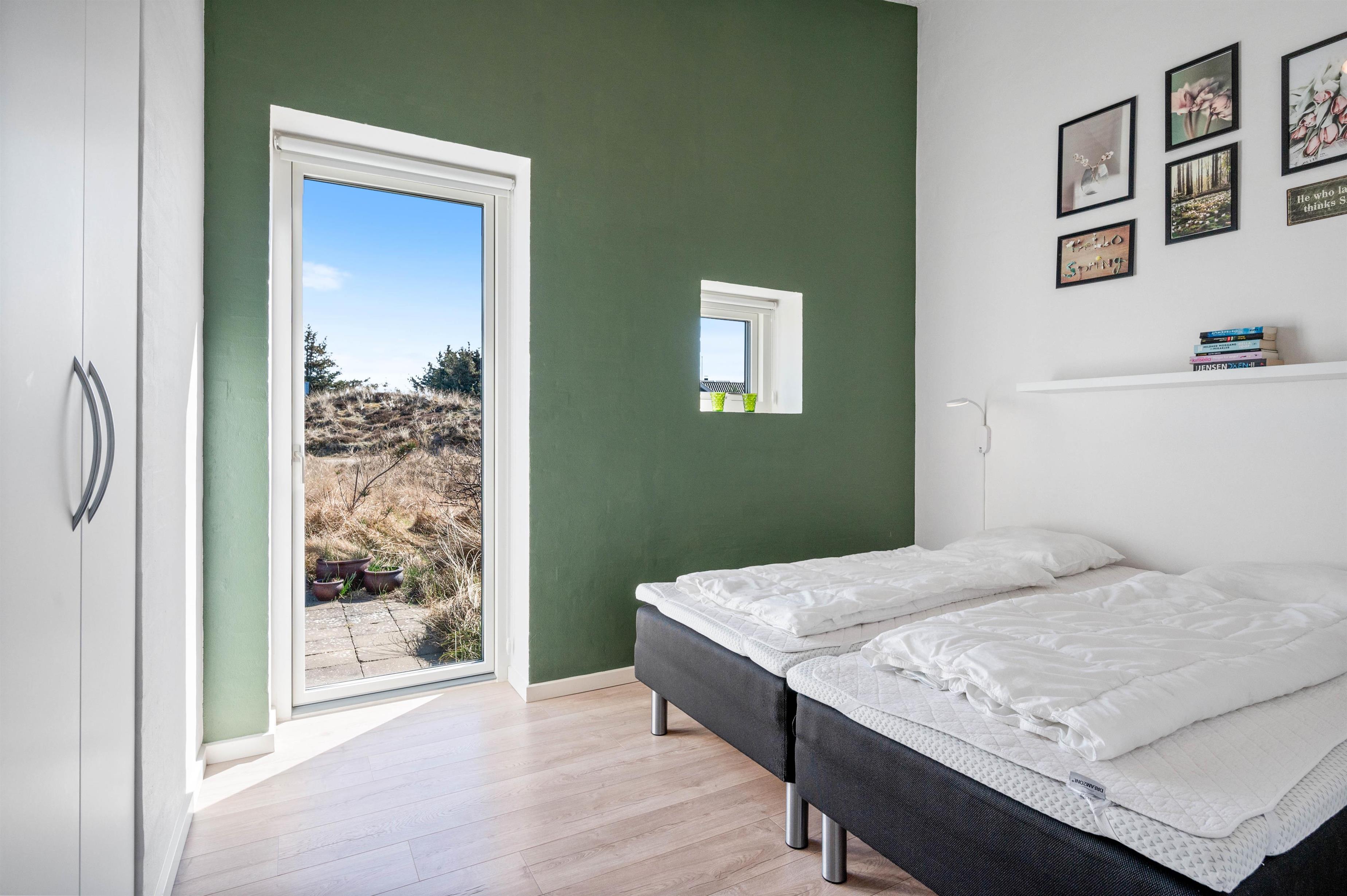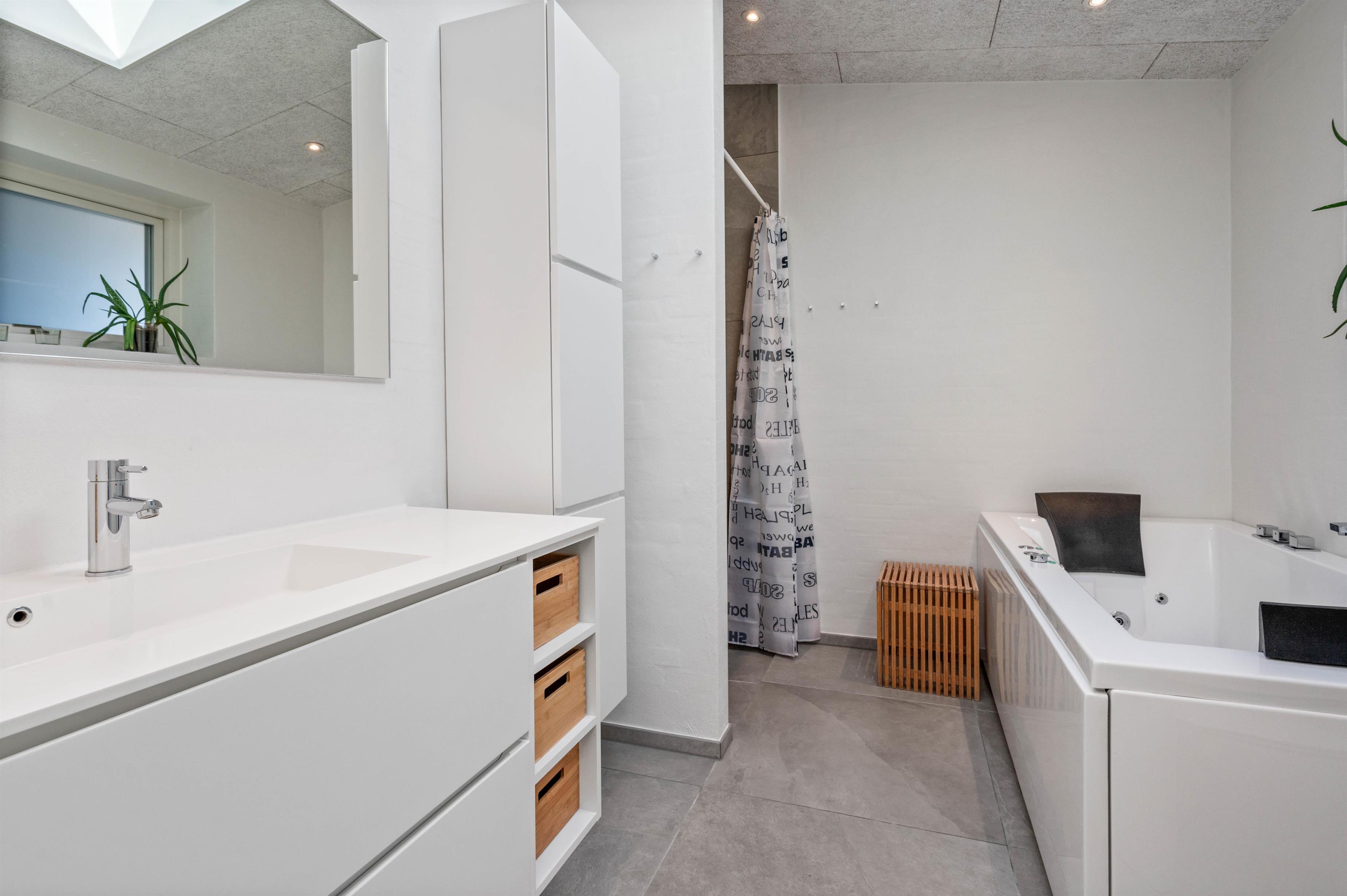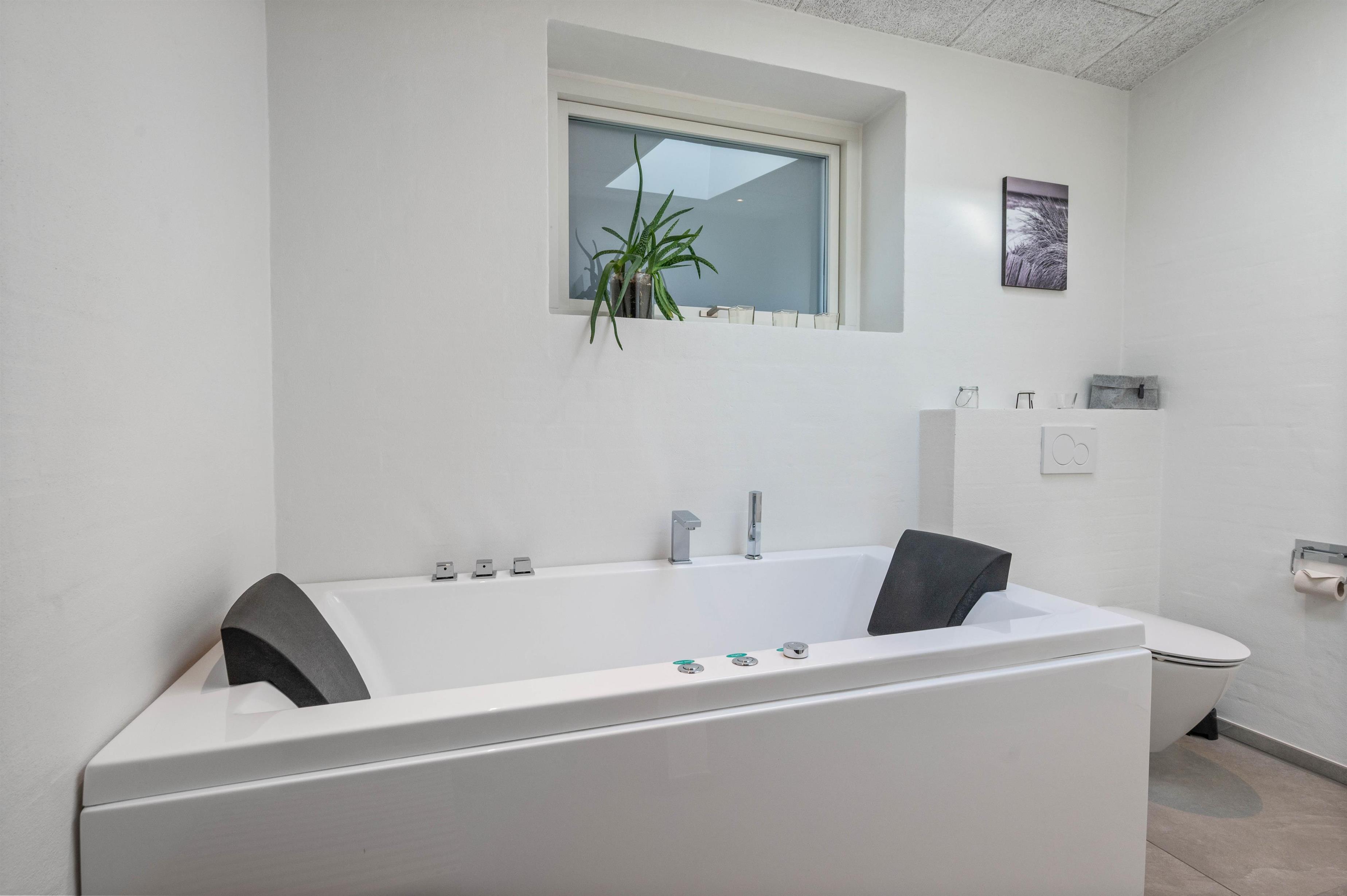 Huset er praktisk indrettet med to badeværelser, det ene med tilgang fra et af soveværelserne og det andet med et lækkert spabad. Sovepladserne er fordelt på tre rum, hvor de ene er med to enkelsenge, mens to af værelserne er med dobbeltsenge, således I alle er sikret en god nats søvn. I skuret udenfor finder I desuden husets sauna, som byder på god varme på selv de koldeste feriedage. udenfor, finder i udebruseren, som er perfekt til at skylle det værste sand af kroppen, efter en god tur på stranden. Vær opmærksom på, at udebruseren er åben i perioden april-november.