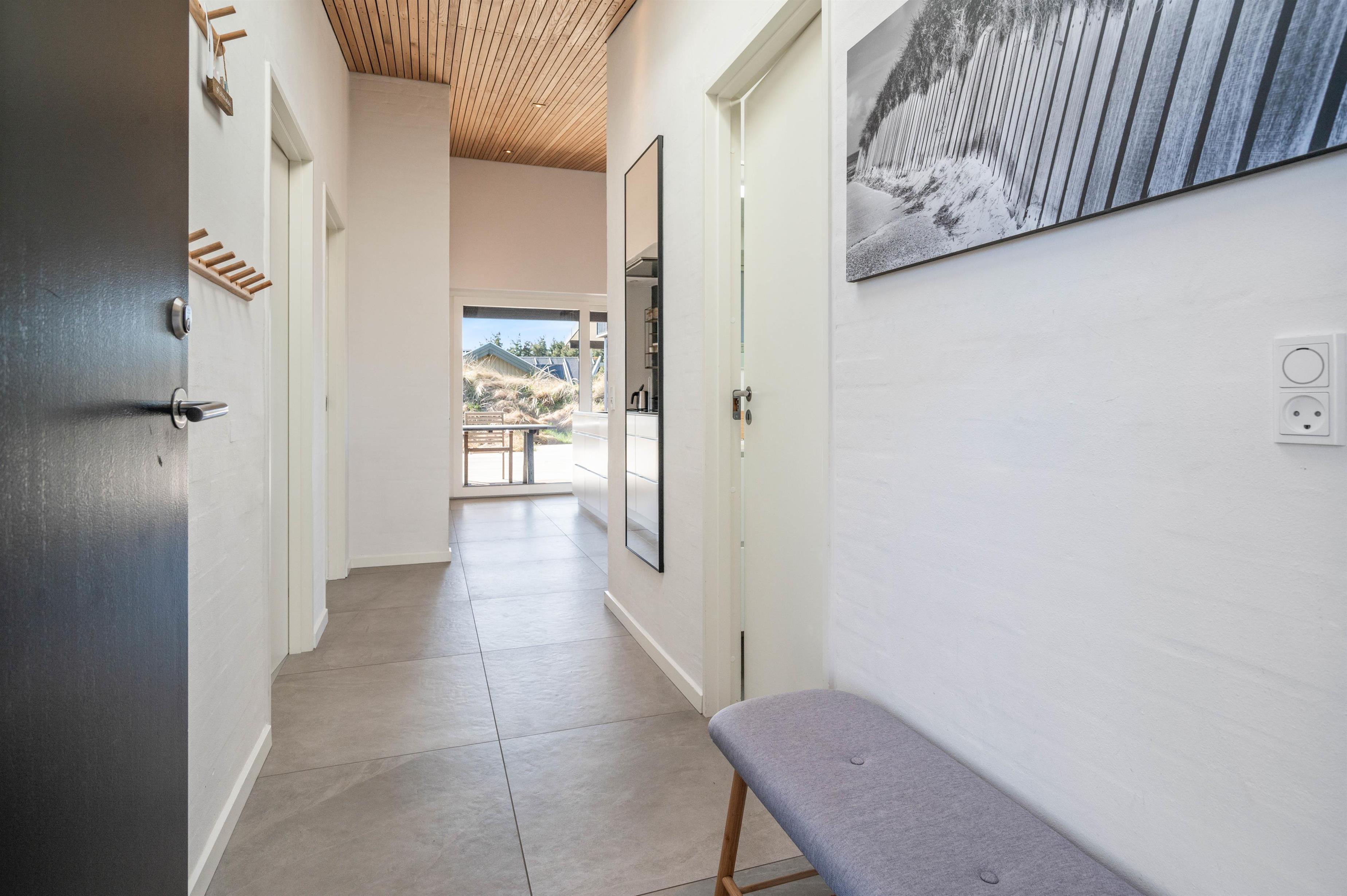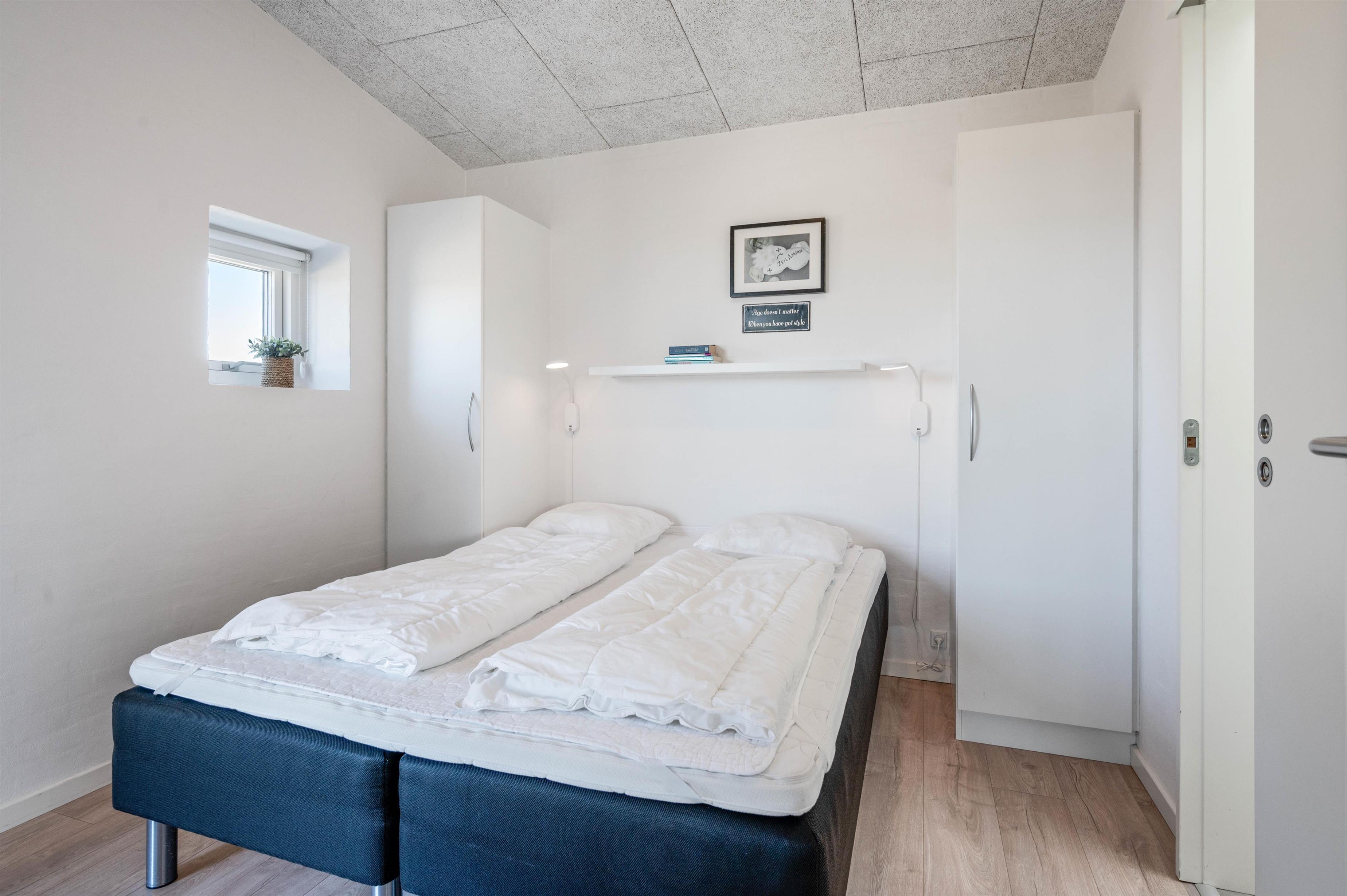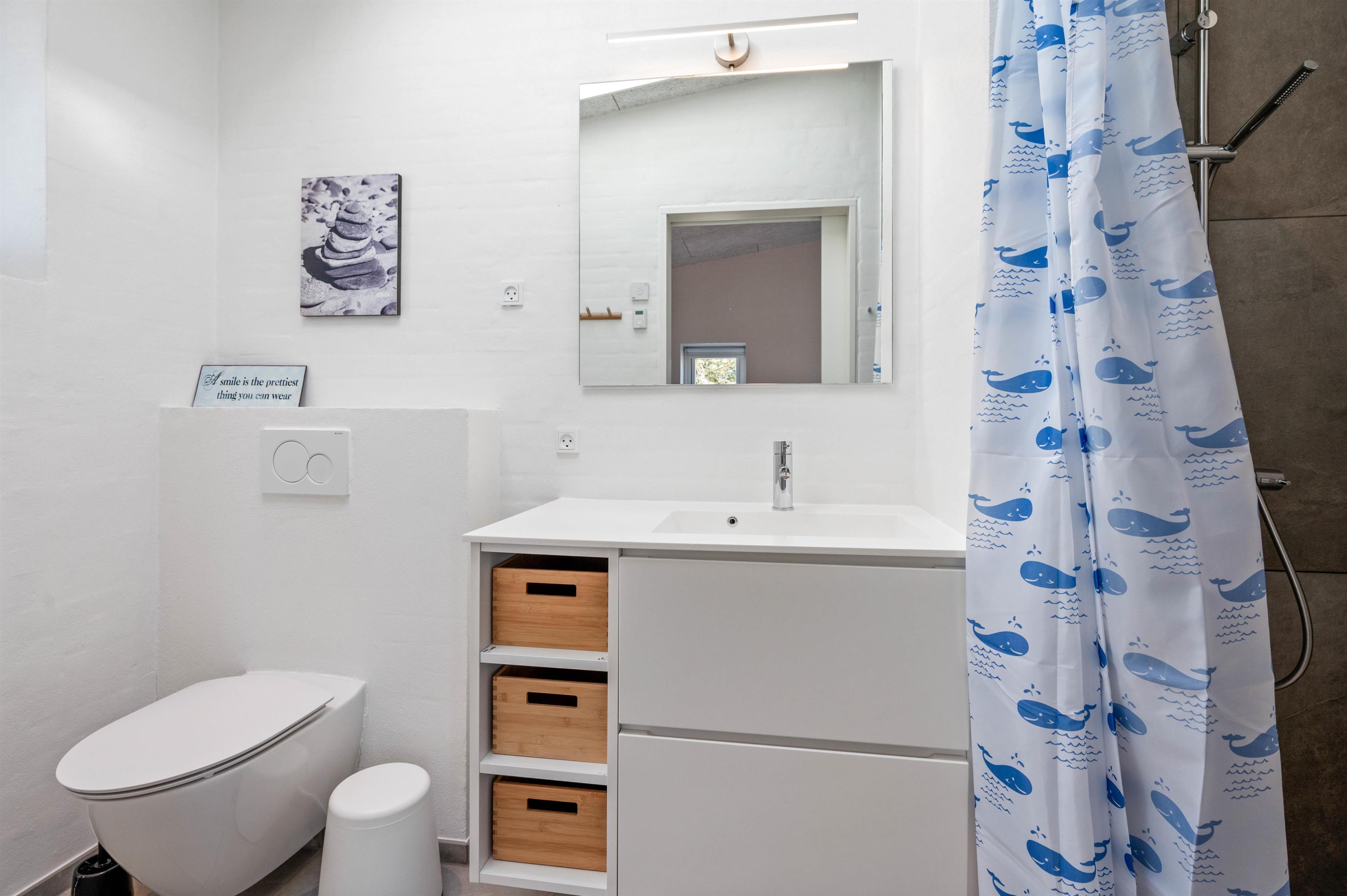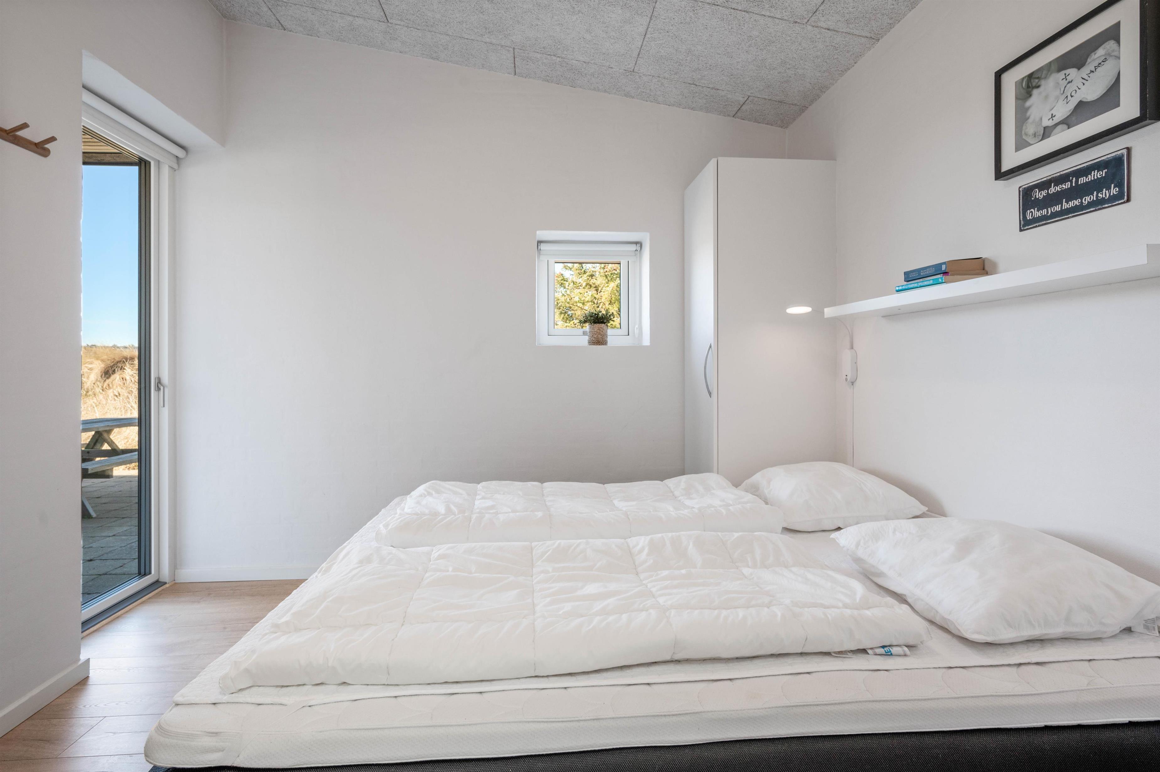 Huset er praktisk indrettet med to badeværelser, det ene med tilgang fra et af soveværelserne og det andet med et lækkert spabad. Sovepladserne er fordelt på tre rum, hvor de ene er med to enkelsenge, mens to af værelserne er med dobbeltsenge, således I alle er sikret en god nats søvn. I skuret udenfor finder I desuden husets sauna, som byder på god varme på selv de koldeste feriedage. udenfor, finder i udebruseren, som er perfekt til at skylle det værste sand af kroppen, efter en god tur på stranden. Vær opmærksom på, at udebruseren er åben i perioden april-november.