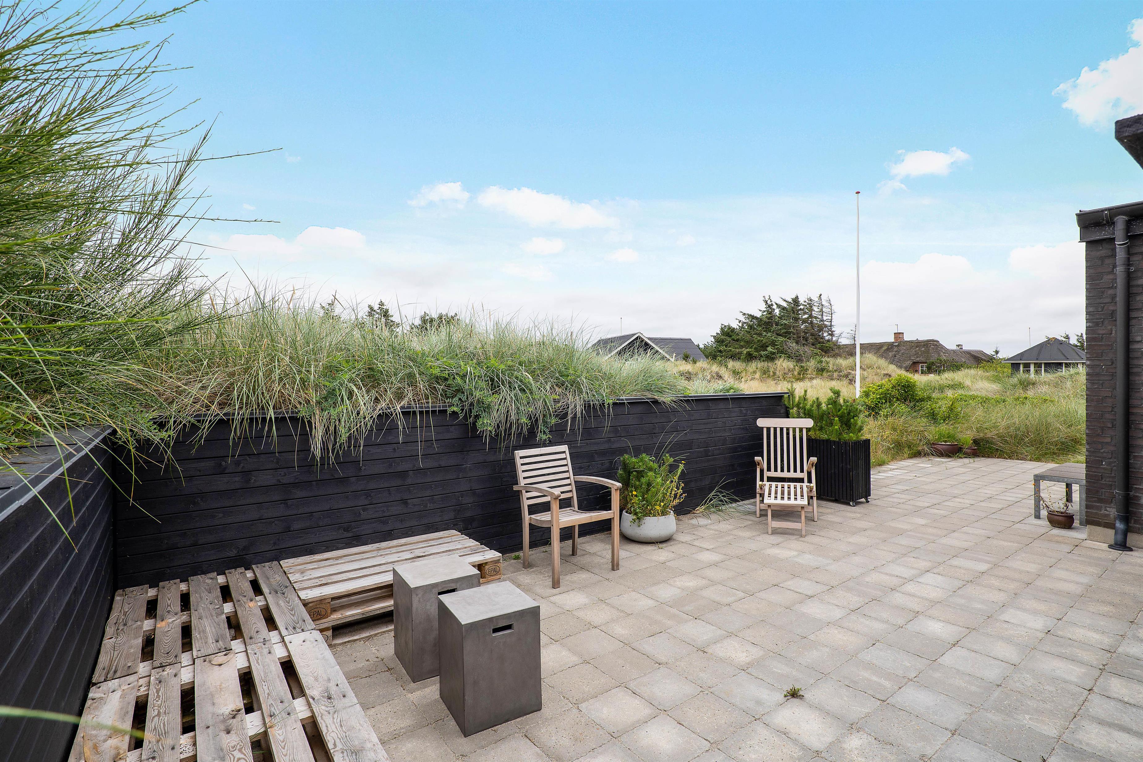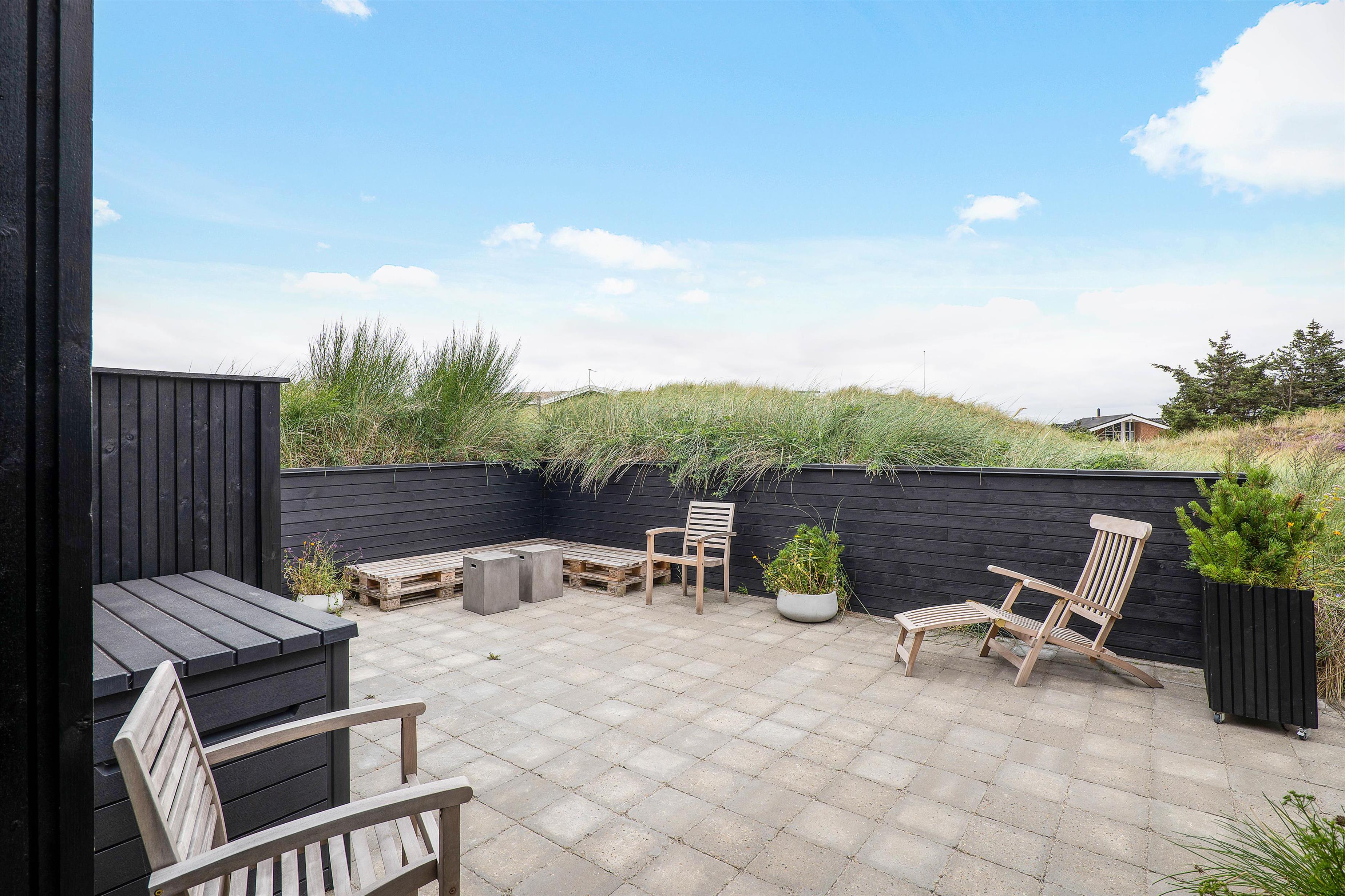 Rundt om huset finder I mange gode kroge, hvor I kan sidde og nyde solen og den friske havluft. Der er både åbne, afskærmede og overdækkede dele af terrassen, så der er noget for enhver smag og til alle slags vejr, som danmark kan byde på. Der er selvfølgelig sørget for både havemøbler, liggestole og grill.