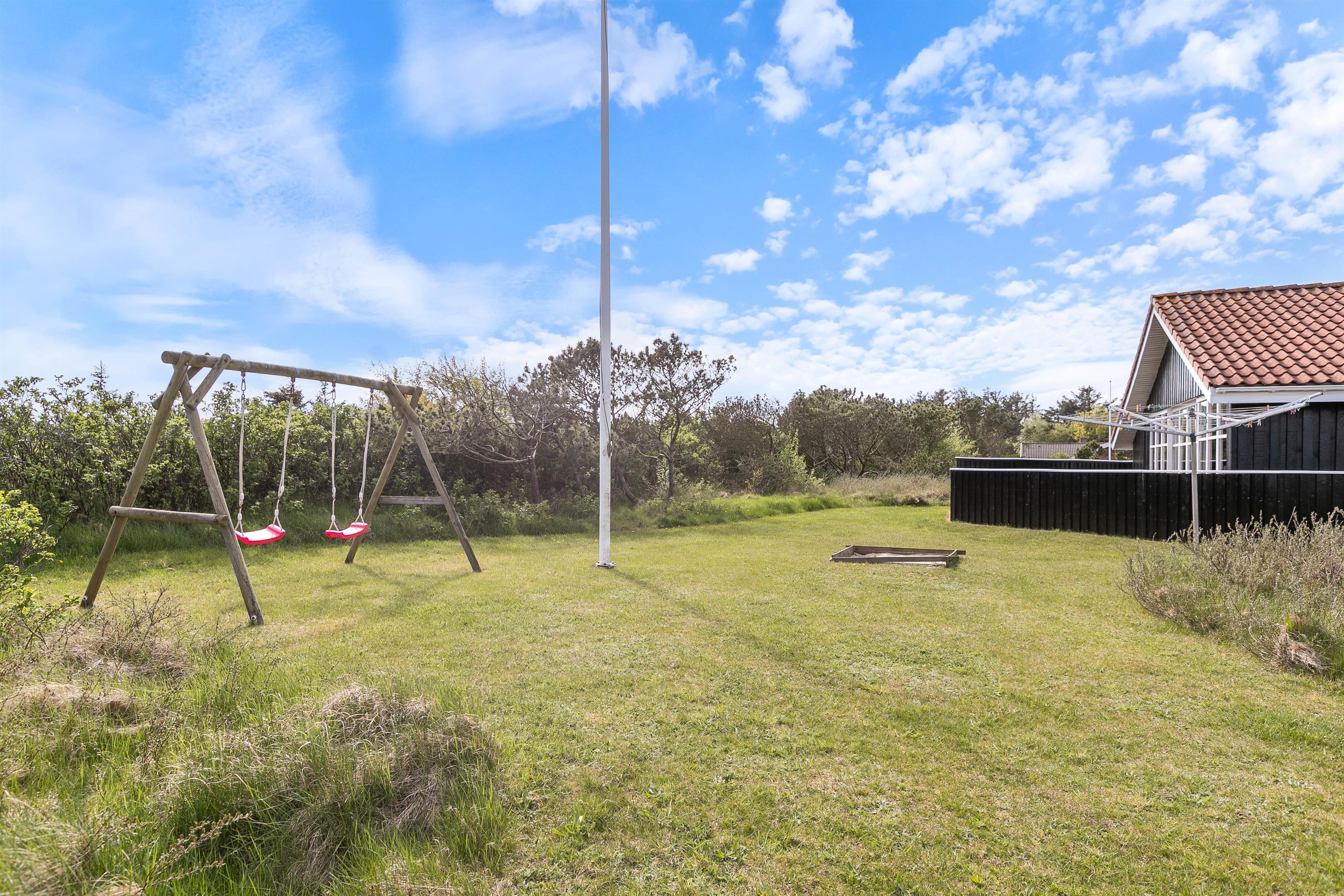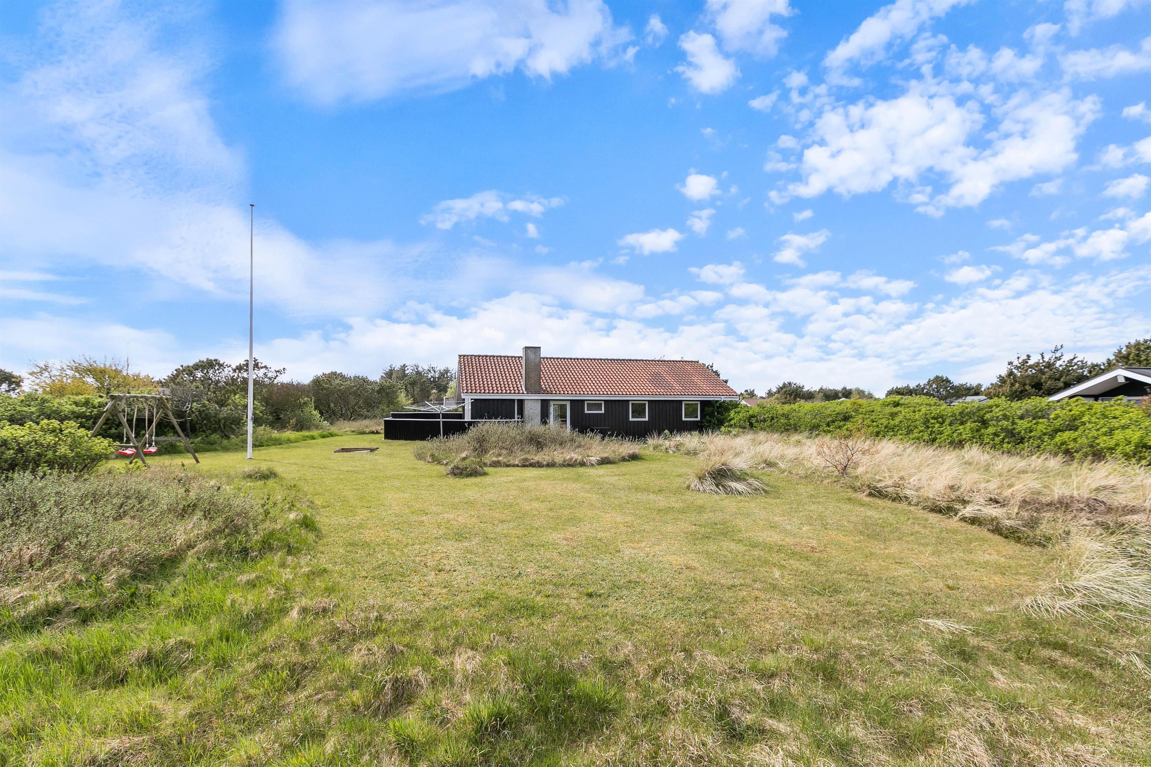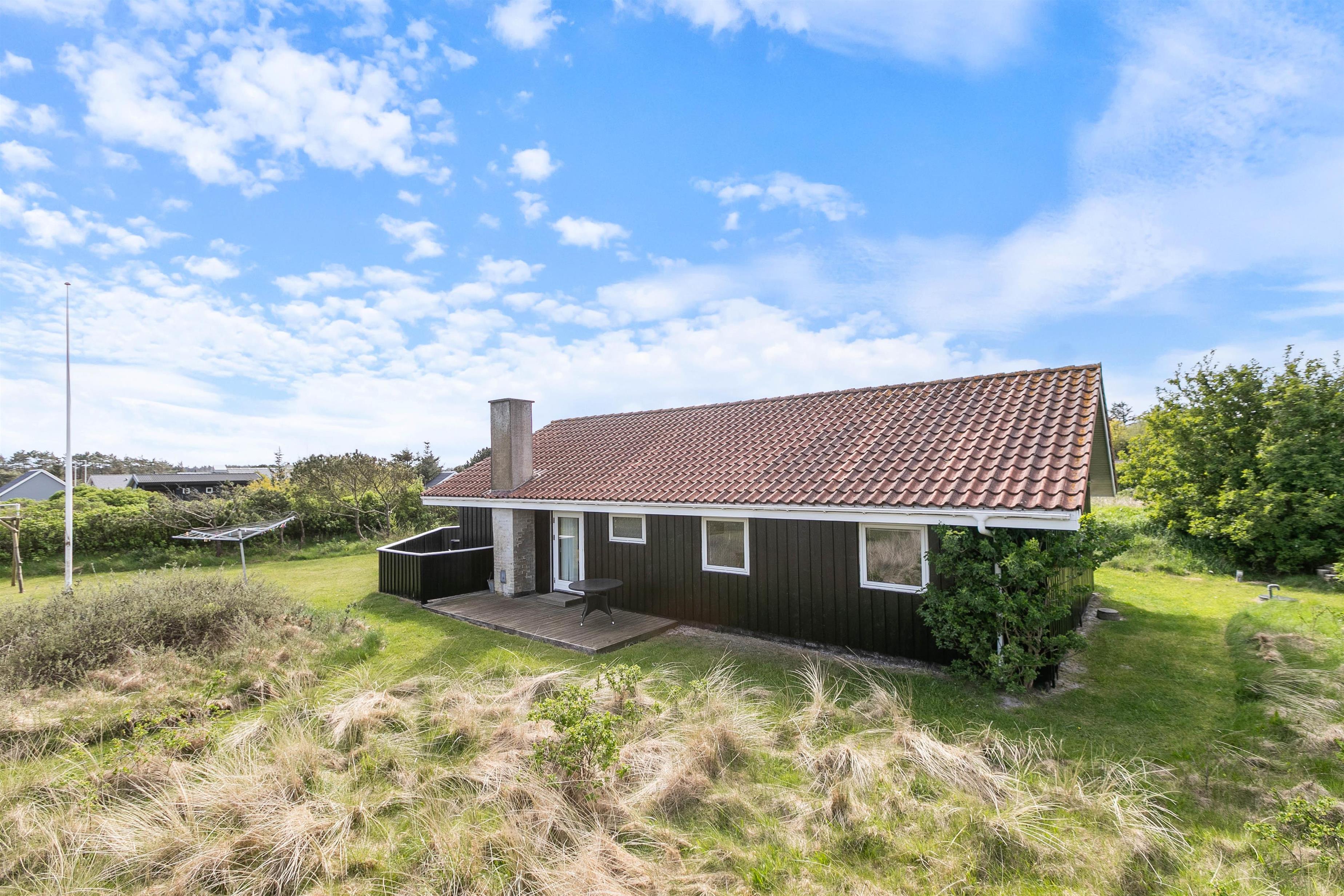 Dejligt træferiehus på stor grund, i rolige omgivelser. Huset er godt og lyst indrettet i afslappende skandinavisk stil, hvor det kombinerede opholdsrum med stue og køkkenafdeling er husets centrum. Køkkenafdelingen er veludrustet og selvfølgelig med mikroovn og opvaskemaskine, så man ikke behøver at bruge alt for lang tid i køkkenet. Fra køkkenet er der åbent ind til spiseplads og stuen, så man hele tiden er en del af selskabet, selvom man står i køkkenet. Stuen indbyder til socialt samvær og hygge foran brændeovnen på de lidt køligere dage – måske med en god bog – eller med familiespil.
