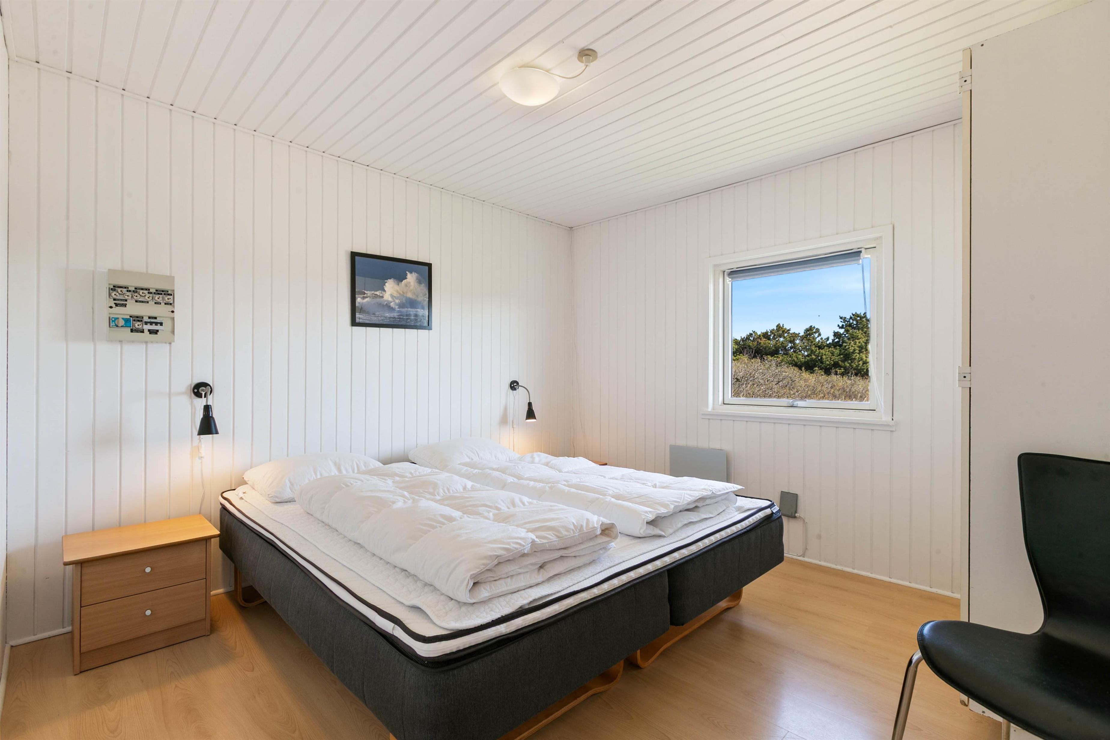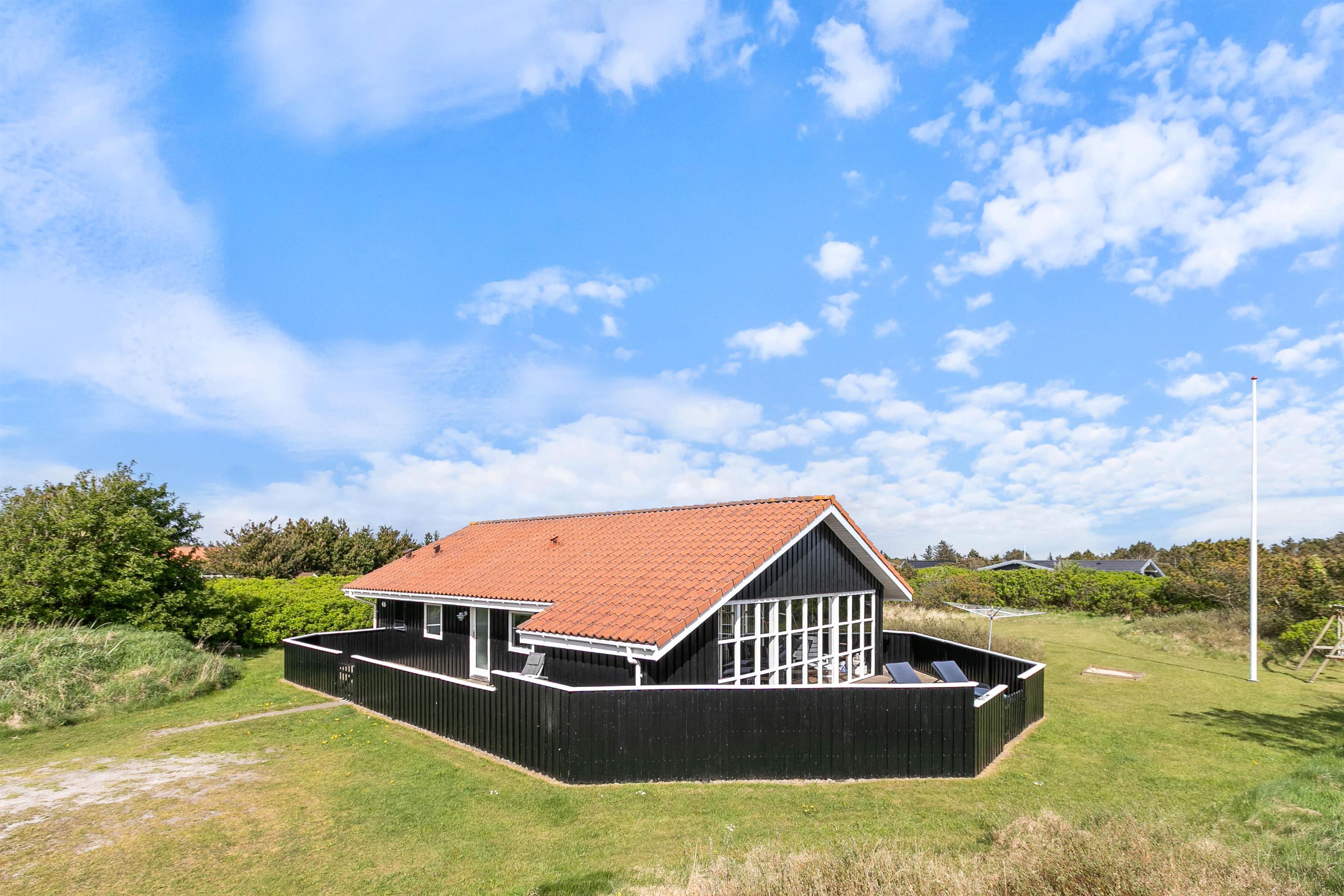 Her på P. Snejkers Vej 49, lige syd for Søndervig, ligger dette skønne feriehus, tæt ved både det brusende Vesterhav og Ringkøbing fjord. Huset strækker sig over 89 kvadratmeter, og kan derfor uden problemer byde velkommen til seks feriegæster og en enkelt hund.