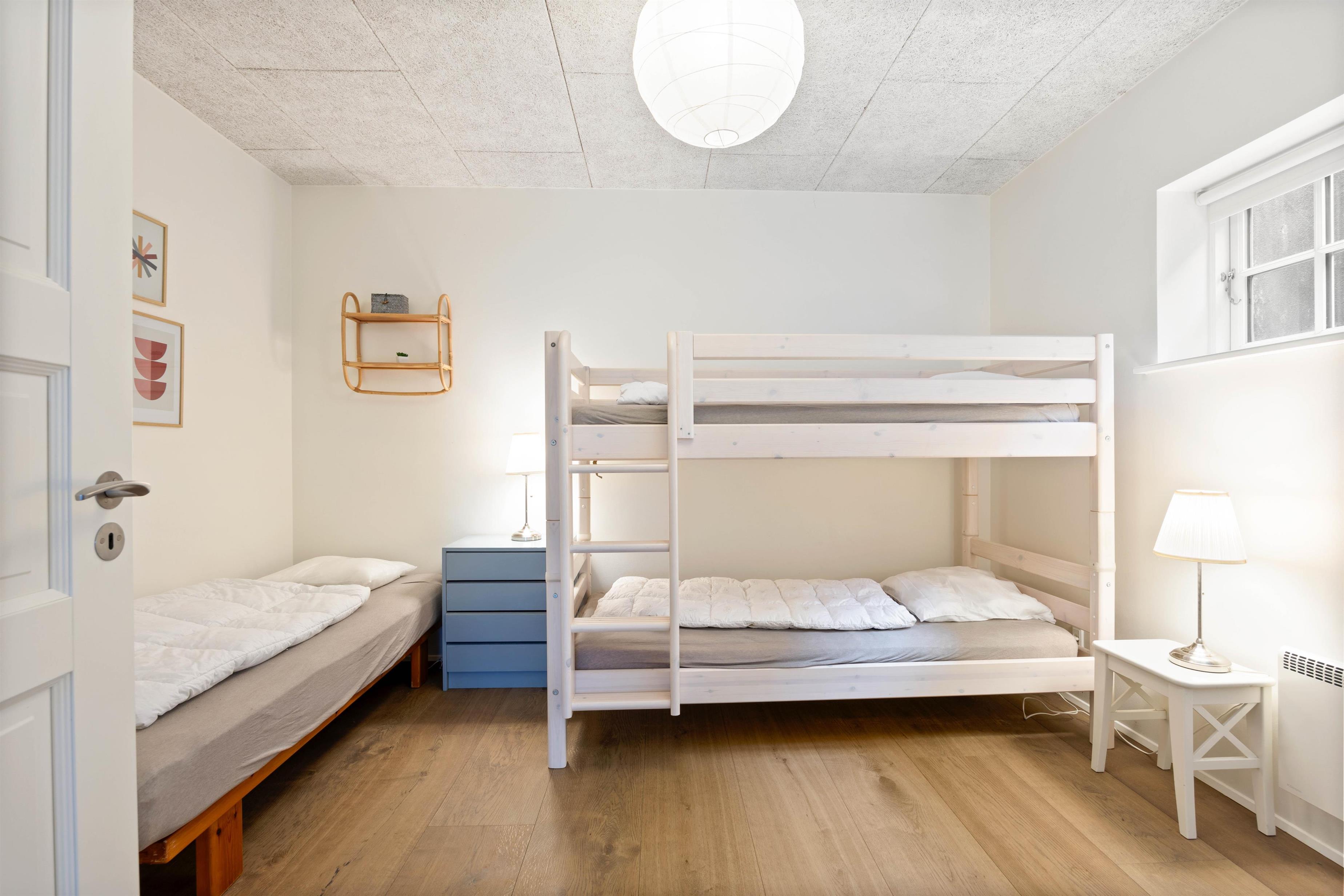Kælderen til sommerhuset råder over et badeværelse og 2 soverum, hvor det ene råder over en køjeseng og en enkeltseng, og det andet soverum er udstyret med en dobbeltseng. Alle værelser i kælderen er udstyret med el-radiatorer. Desuden behøver I ikke bekymre jer om de praktiske gøremål, da sommerhuset har en kombimaskine med vaskemaskine og tørretumbler til rådighed, der klarer dette for jer.