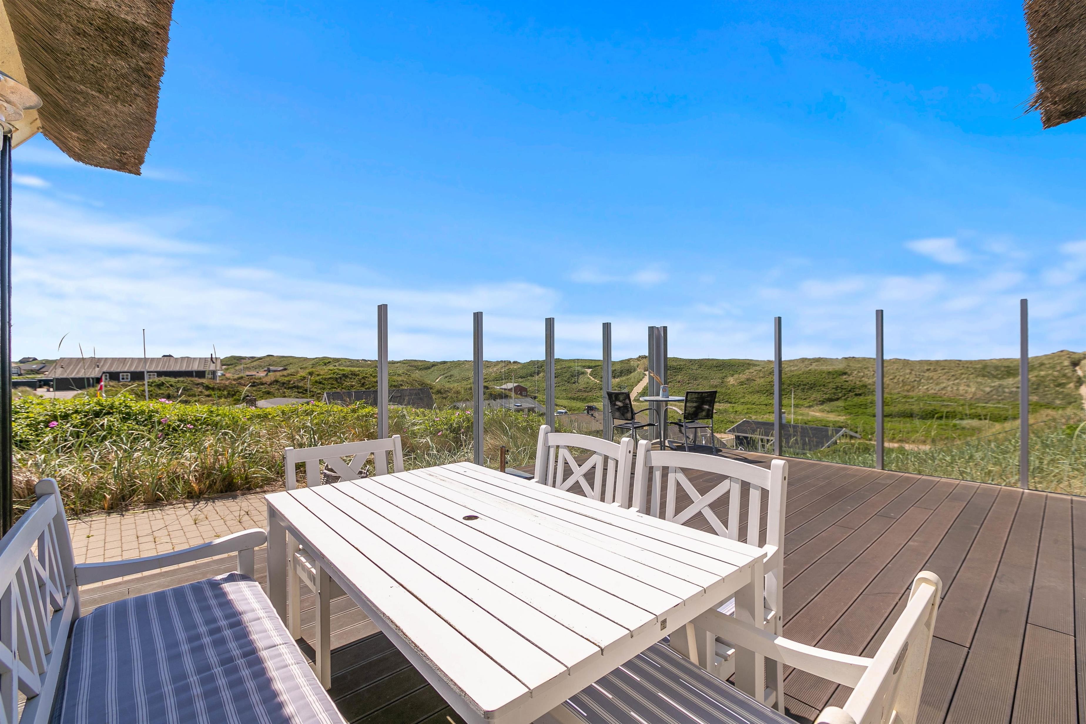 Til sommerhuset på Lodbergsvej 199 er der et skønt terrasseområde, hvor I på de lune sommerdage rigtigt kan sidde og nyde de skønne solnedgange med et glas koldt at drikke. Ydermere har I mulighed for at søge læ i den lille udehytte, hvor I vil kunne tage et spil, nyde et glas varmt eller koldt og hygge jer, alt imens det brusende Vesterhav ligger lige i baggrunden.