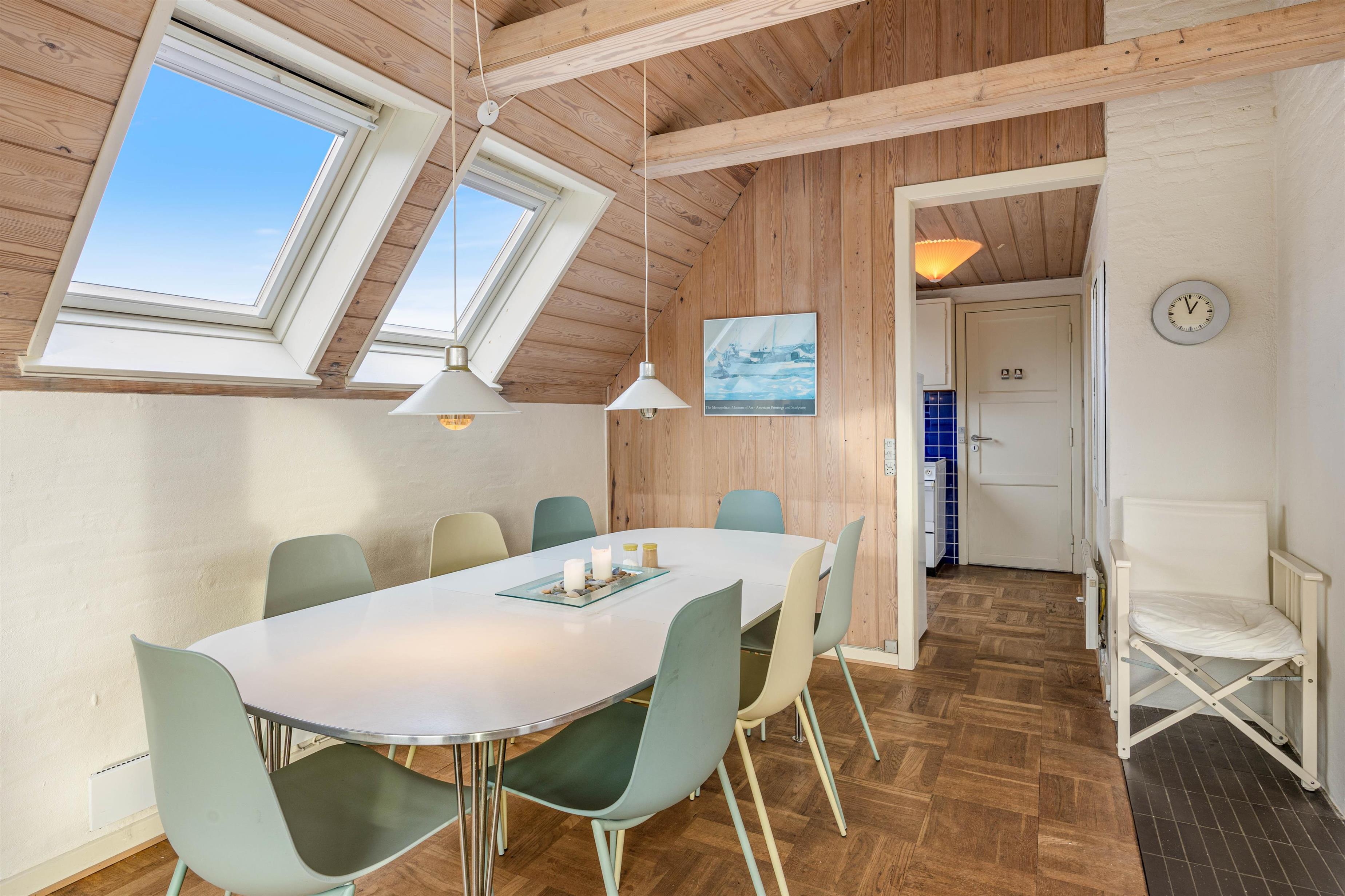 Sommerhuset i Søndervig udnytter hver kvadratmeter til at skabe en varm og indbydende atmosfære, der samler familie og venner. Brændeovnen i opholdsrummet bringer en hjemlig hygge, som gør aftenerne ekstra specielle i jeres egen ferieoase.