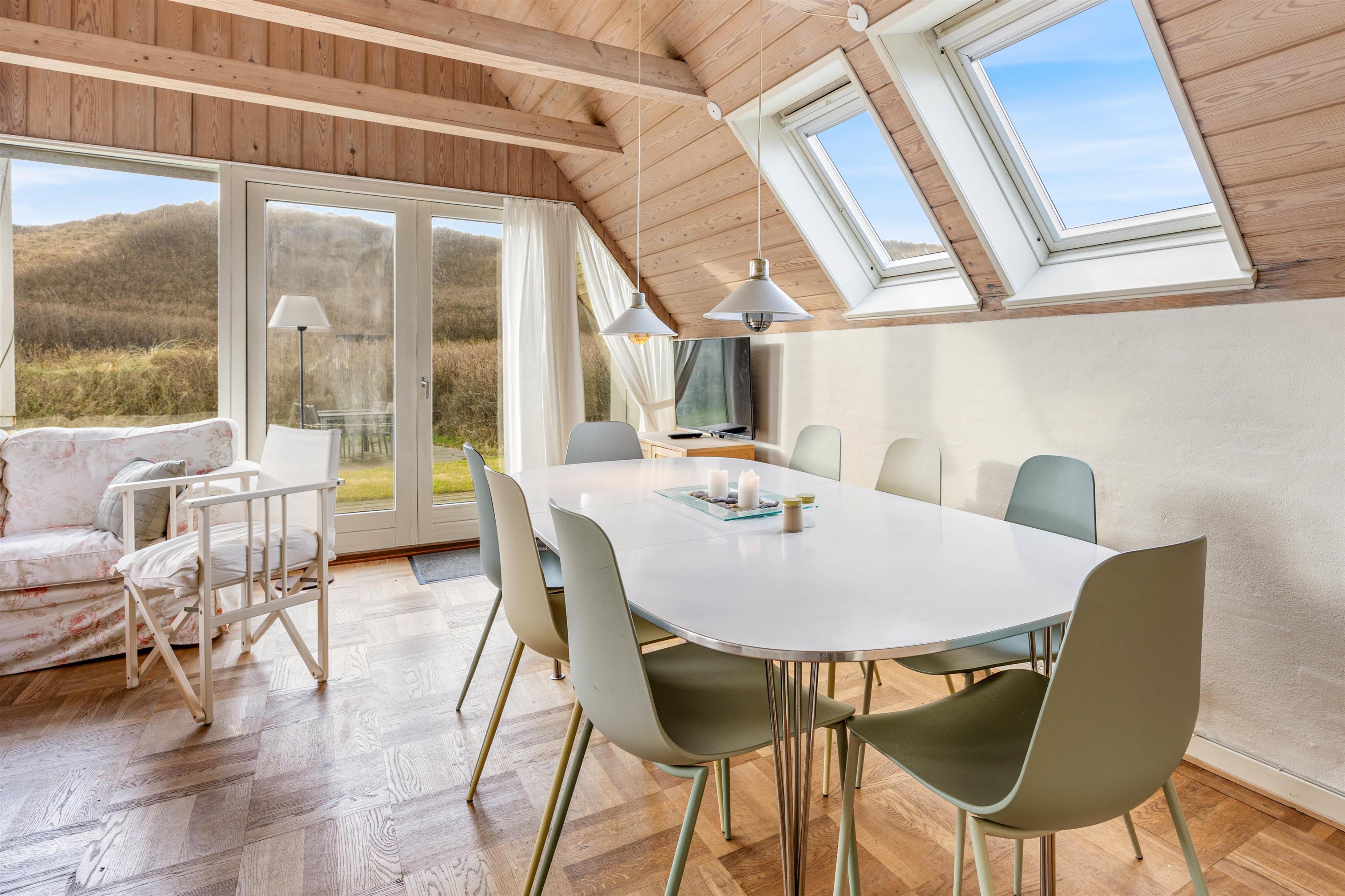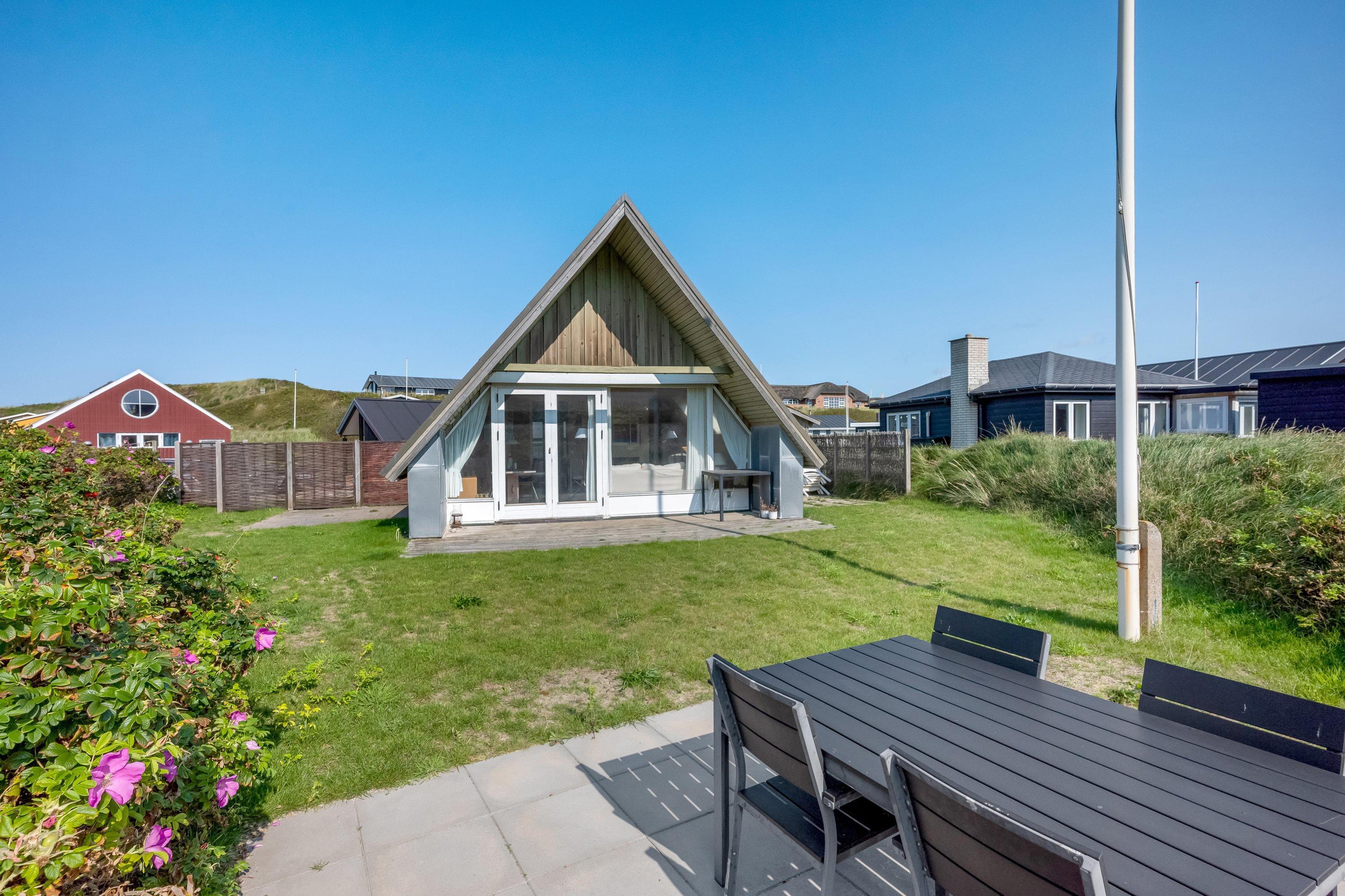 Blot 100 meter fra sommerhuset ligger Vesterhavet og den kilometer lange sandstrand klar til at byde på uforglemmelige strandoplevelser. Omgivet af en 431m2 naturgrund tilbydes en perfekt ramme til leg, spil og afslapning. Terrassen, som er udstyret med komfortable havemøbler og en grill, bliver hurtigt et samlingspunkt, hvor I kan nyde måltider under åben himmel.
