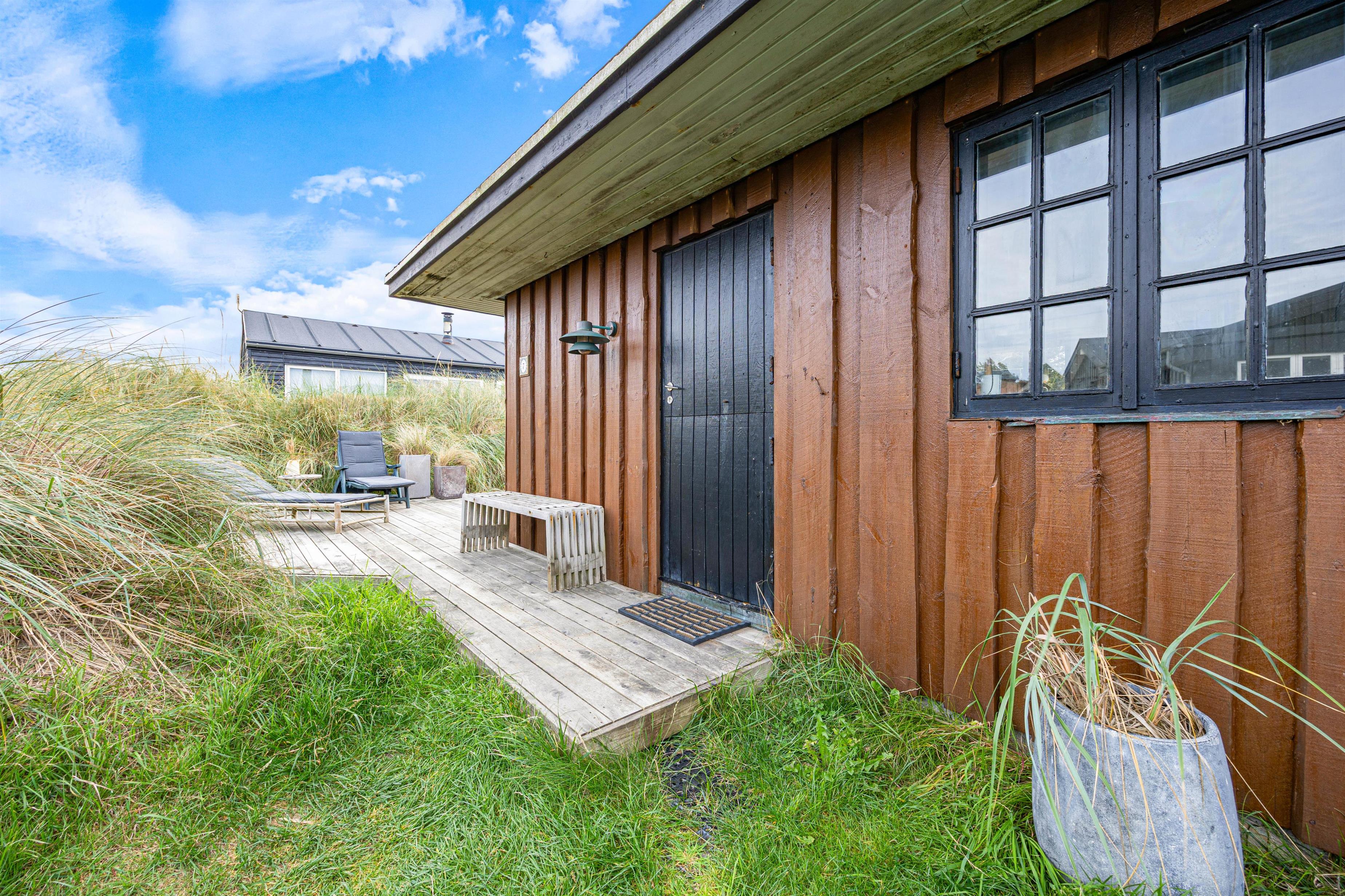 Det lille træsommerhus ligger helt centralt placeret i Søndervig by, men fordi sommerhuset er omkranset af buske og træer, er I afskærmet fra de omkringliggende huse. Sommerhust er indbegrebet af dansk sommerhusferie. Her er der plads til afslapning for to. Selvom sommerhuset kun er 40 m2 stort, vil sommerhuset imødekomme de fleste af jeres ønsker. Køkkenet ligger i åben forbindelse med stuen, og de store vinduespartier, som vender ud mod terrassen sørger for, at der hele tiden kommer masser af lys ind i stuen.
