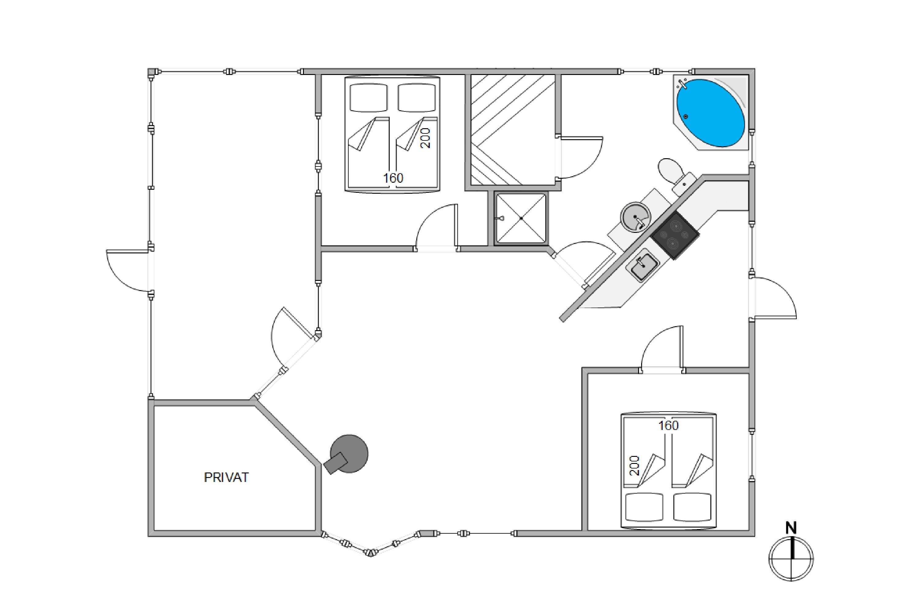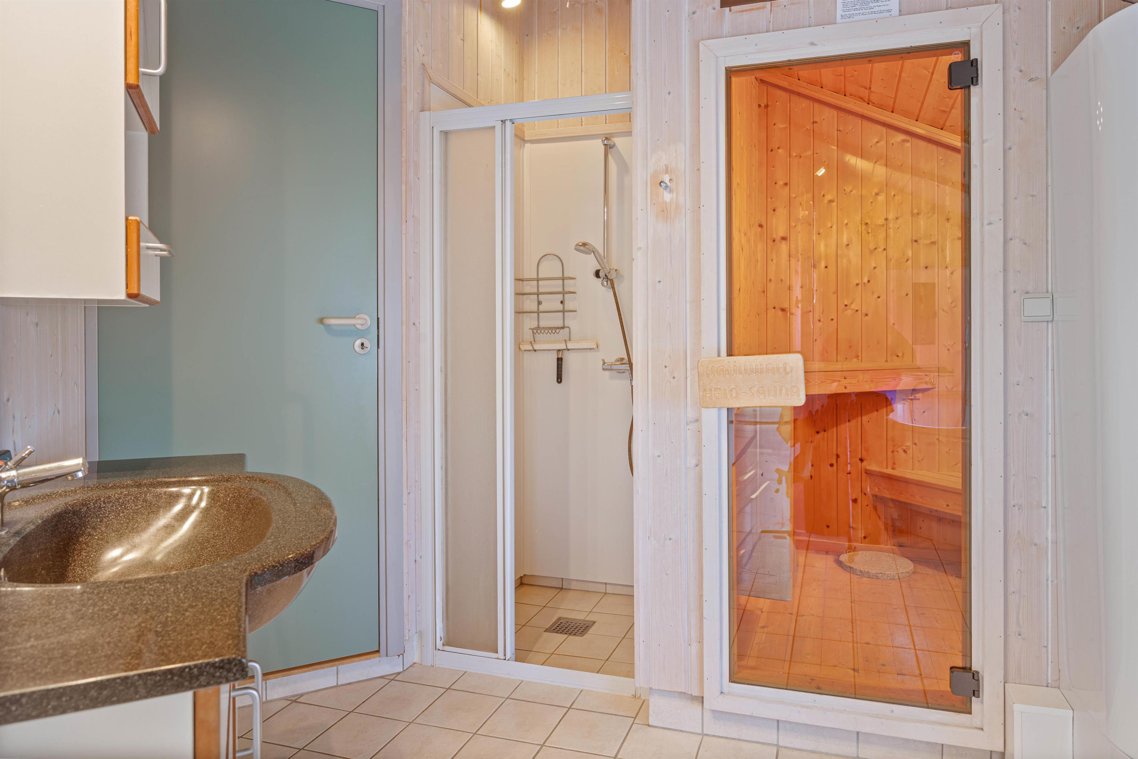 På badeværelset finder I både sauna og spabad. Perfekt til afslapning og til at tanke ny energi efter en oplevelsesrig feriedag i den vestjyske natur.