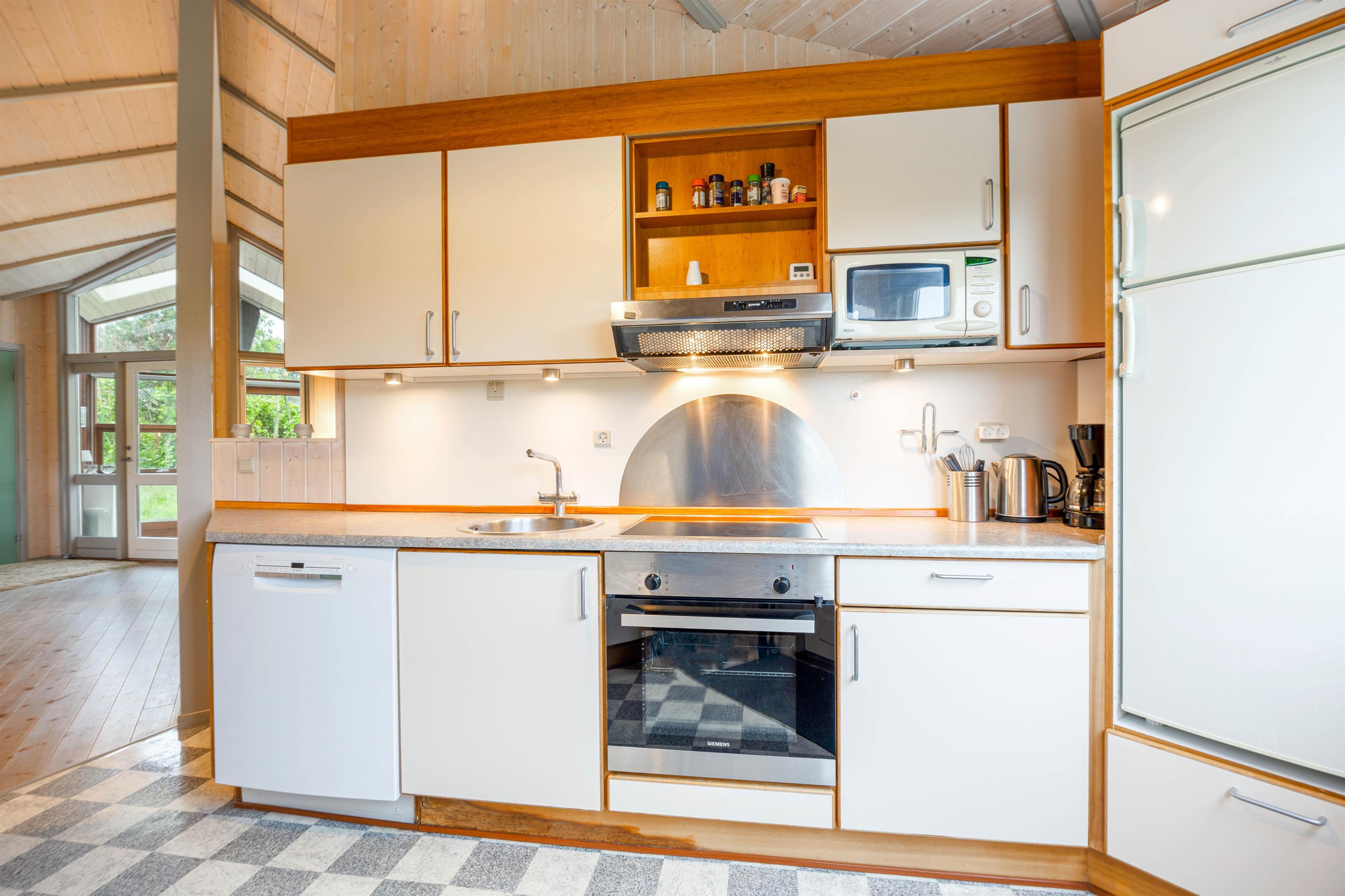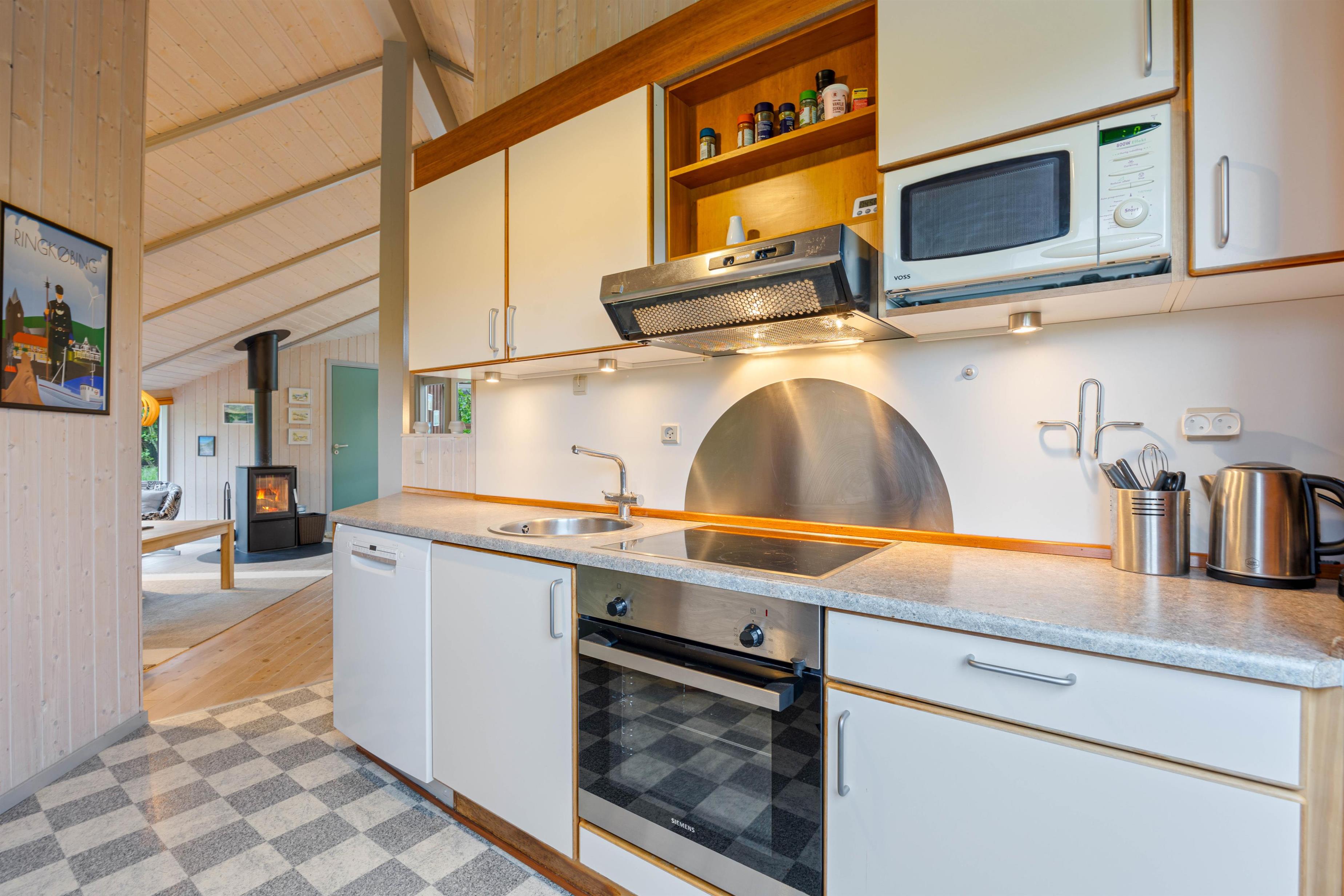 Sommerhuset som ligger på Harbo Stages Vej 9 strækker sig over 83 kvadratmeter, og tillader i alt op til fire personer og op til to husdyr. Husets hjerte er helt klart det store og velindrettede stuerum, hvor også den hyggeskabende brændeovn befinder sig. Den står som centrum i midten af rummet og spreder med sine knitrende flammer ikke kun varme, men også en helt unik feriestemning. Her er højt til loftet, og alle de varme nuancer fra stuen, er med til at skabe en autentisk og klassisk sommerhusstemning. Fra stuen kommer I også ud i køkkenet, hvor en opvaskemaskine og et stort køleskab venter jer.