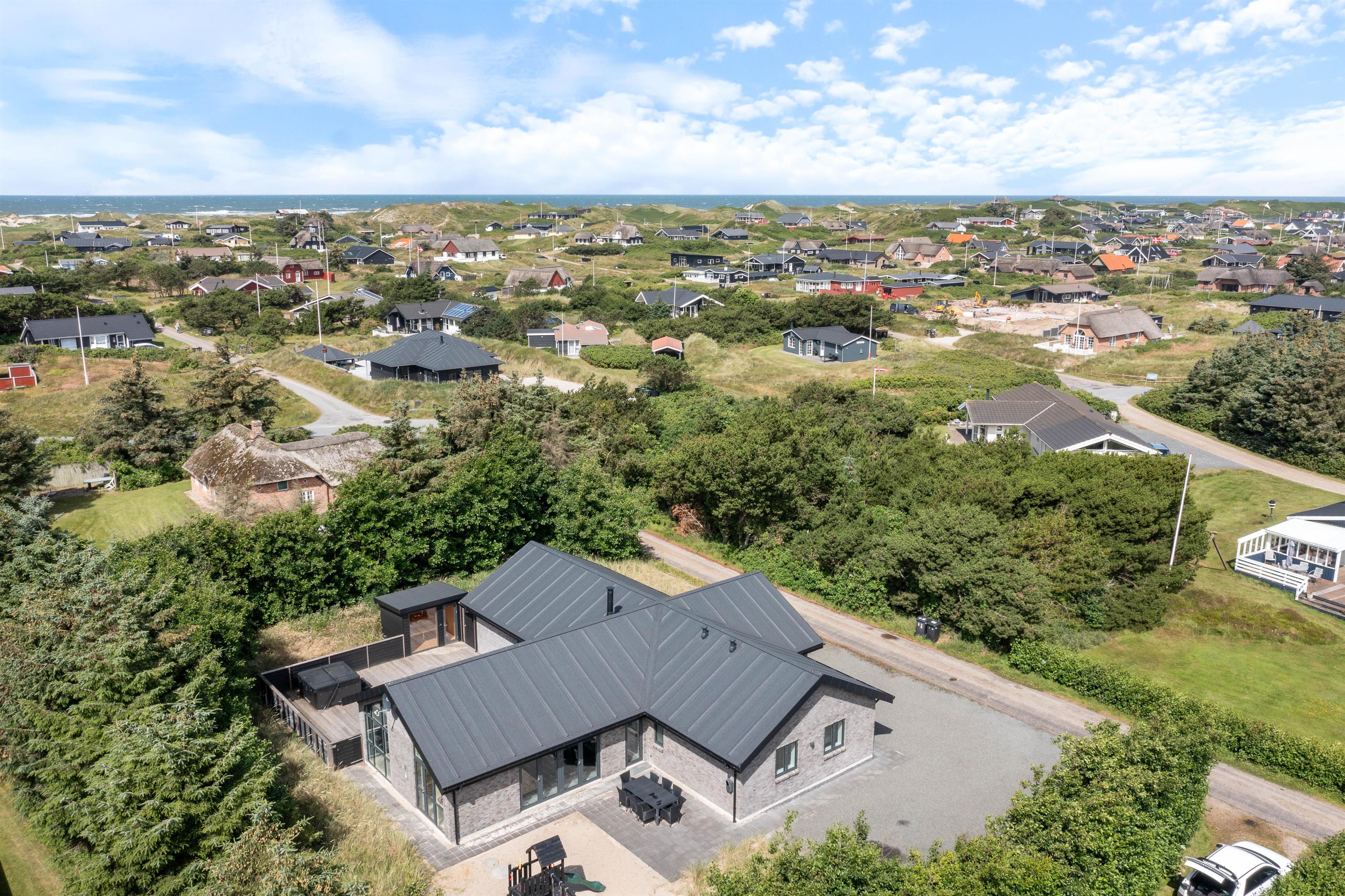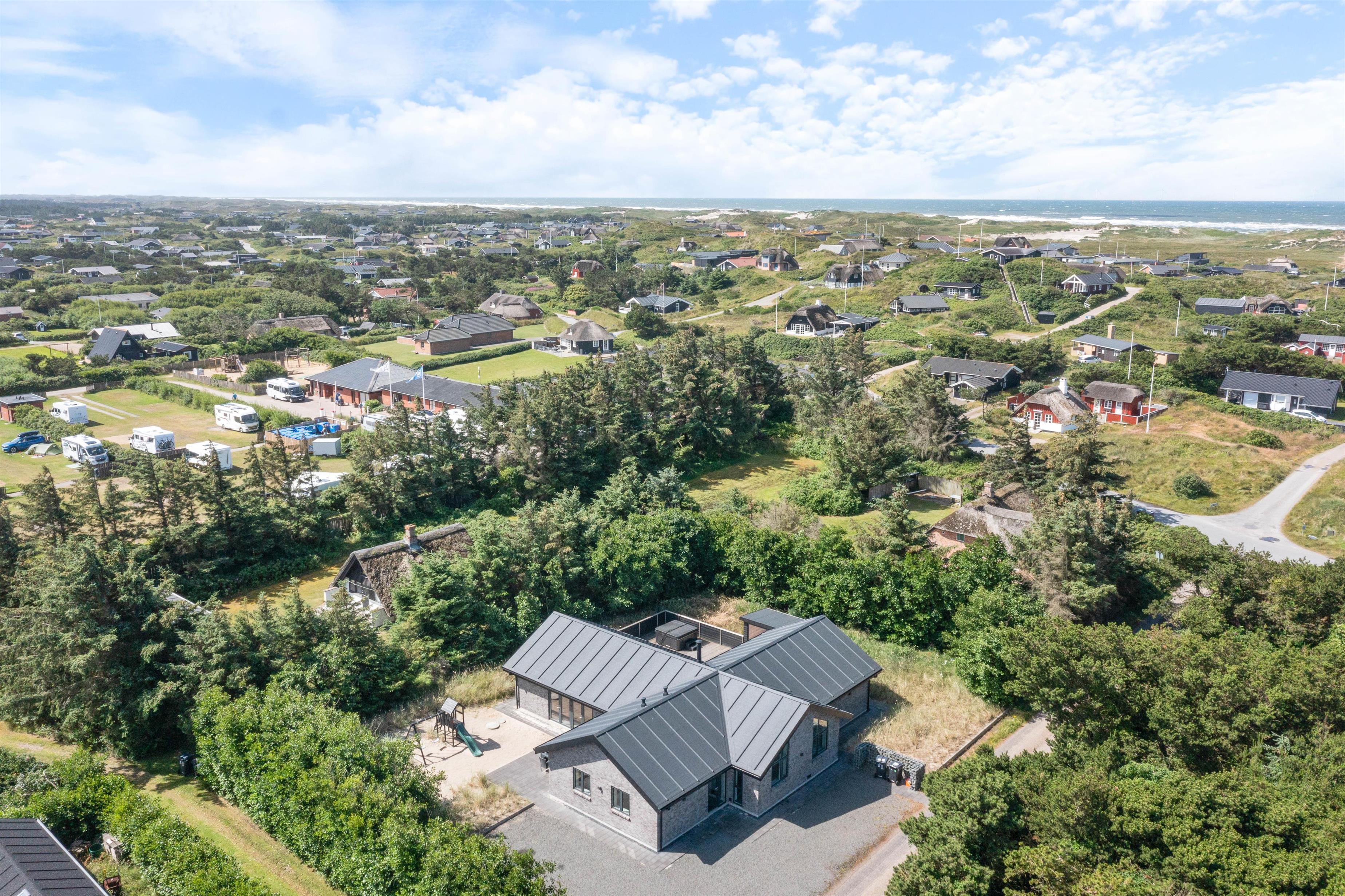 Skal jeres næste ferie byde på masser af kvalitet og afslapning? Så er det i dette fantastiske sommerhus på Harbo Stages Vej 21 i Søndervig, I skal holde jeres næste ferie. Sommerhuset byder på både swimmingpool, udespa og udesauna, som kan berige jeres kommende ferie med masser af afslapning og velvære. Desuden har sommerhuset en skøn beliggenhed med blot 600 meter til stranden og Vesterhavet. Er I kørende til sommerhuset i el-bil, kan I lade den op i sommerhusets stik til elbiler.