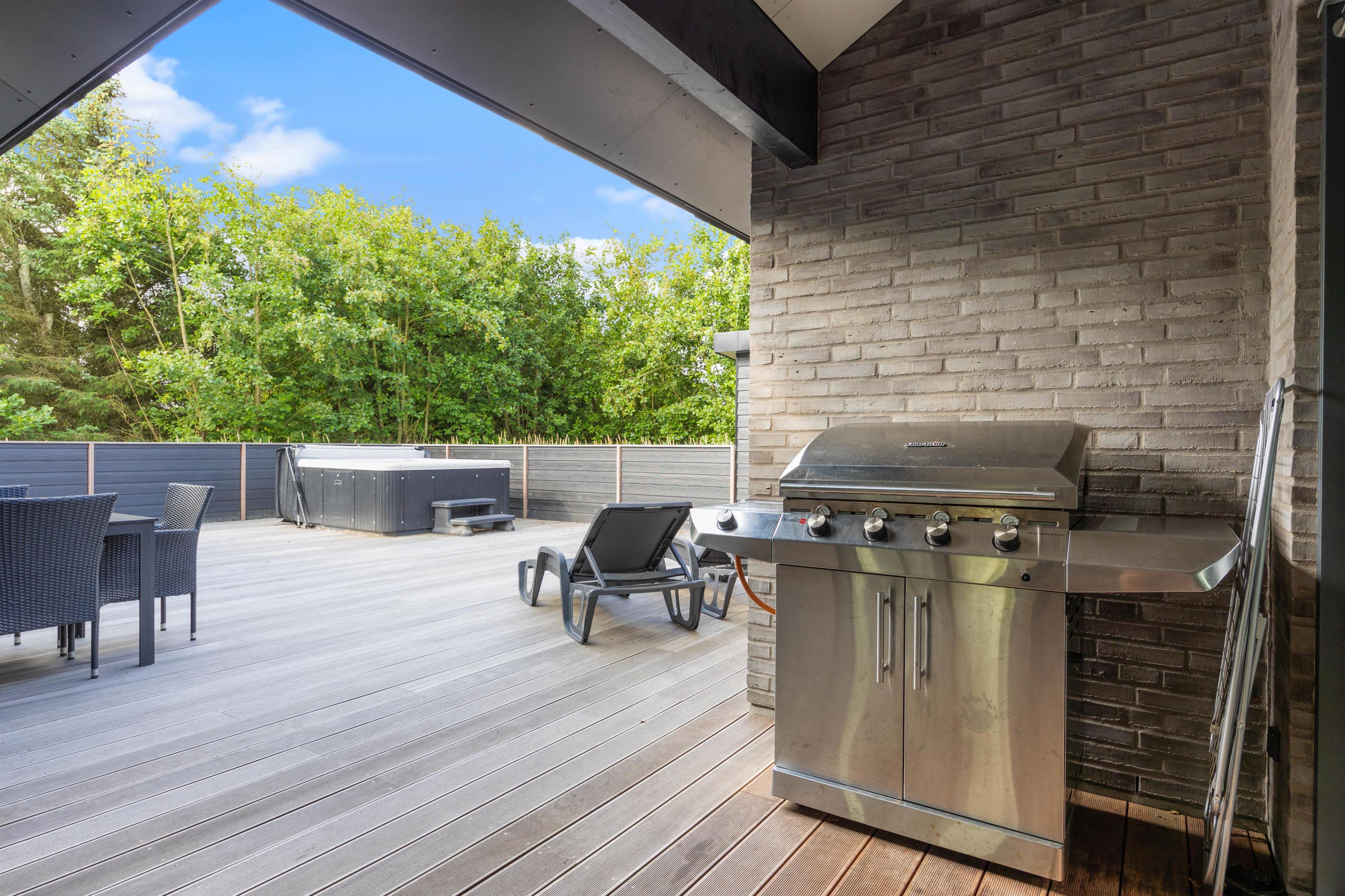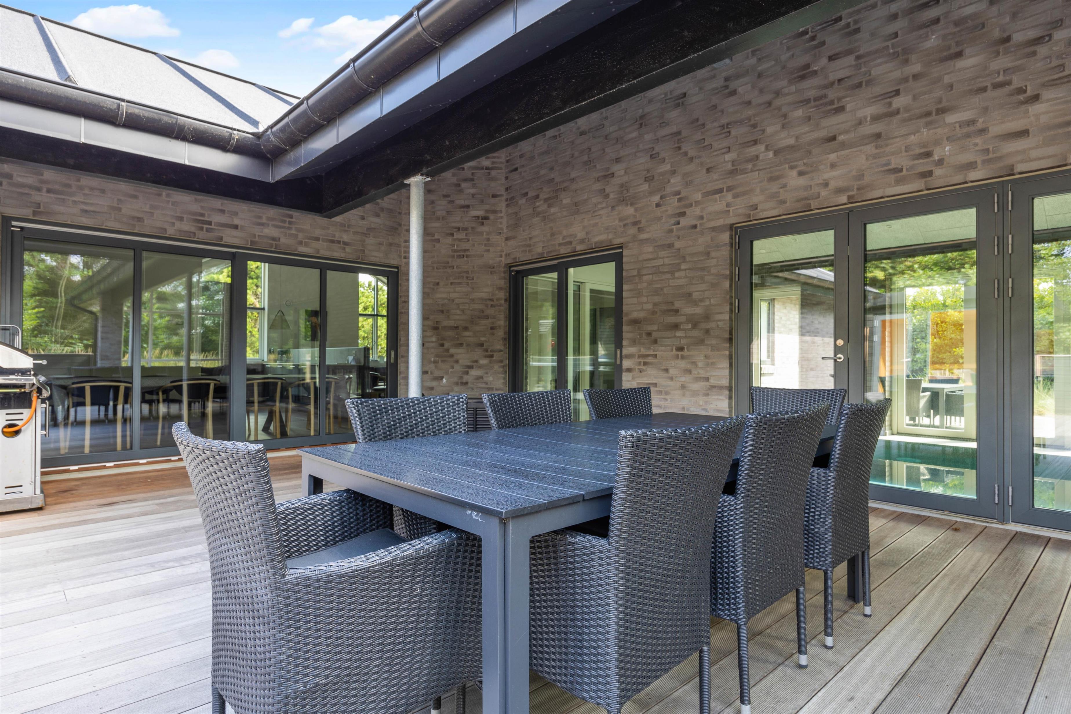 På terrasserne har I også havemøbler og liggestole til rådighed, så I kan finde jer til rette på en god plads i solens varme stråler. Om aftenen kan I tænde op i gasgrillen og nyde en lækker middag med gode bøffer og vin til. Som aftenen går, kan I rykke ind under den overdækkede del af terrassen, hvor der også er en terrassevarmer, der kan holde jer varme.