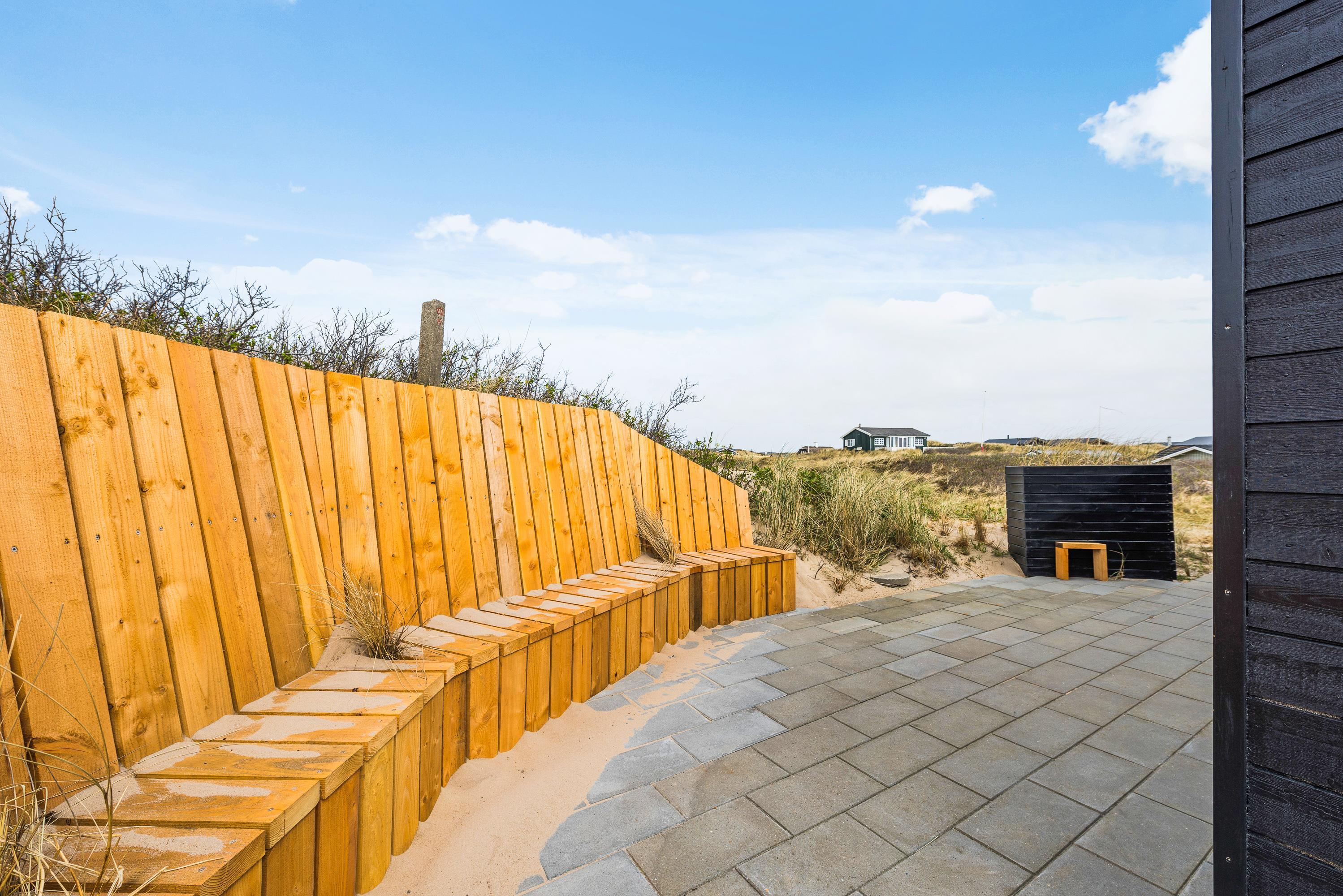 Fra terrassen kalder bølgernes brusen på jer, og på en kort gåtur gennem klitlandskabet når I den brede sandstrand. Stranden er et paradis for alle, og mens I nyder solen, og bølgerne bryder i strandkanten, kan børnene få fri leg i den uendeligt store sandkasse.