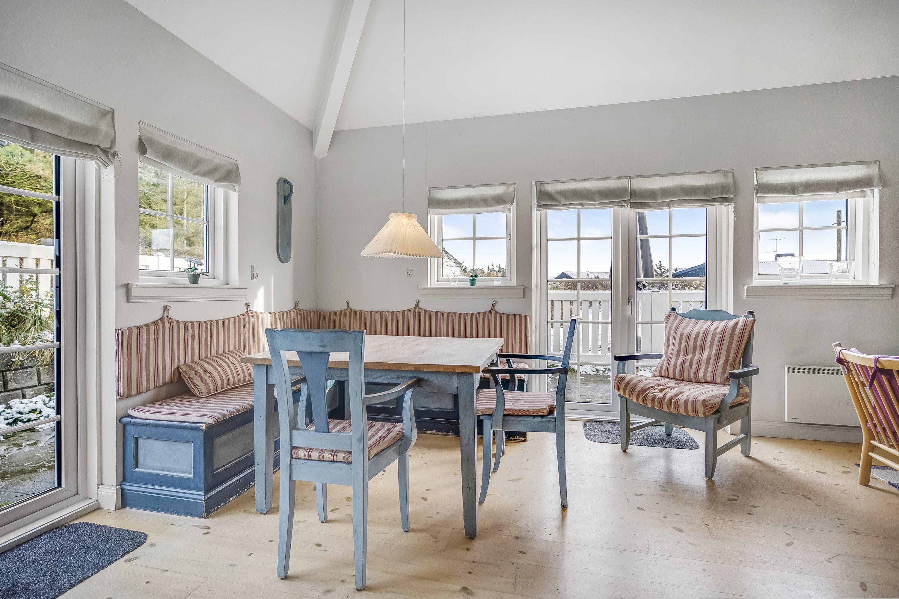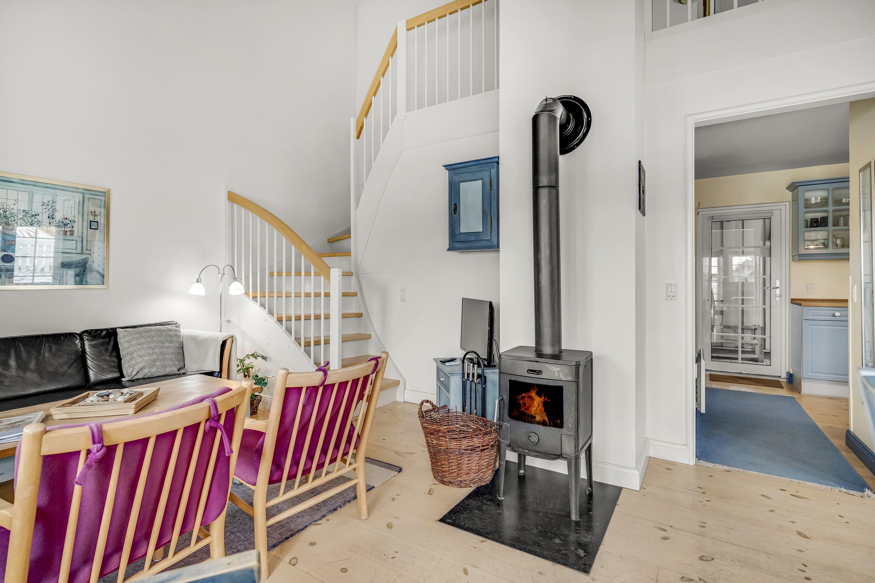 I kan samle jer omkring brændeovnen på kølige aftener, mens I nyder hyggestemningen efter en dag ved havet. Her er plads til at samles med en kop kaffe om morgenen, planlægge dagens strandture eller bare hygge jer i ro og mag. I det indbydende opholdsrum kan I slappe af, læse en bog eller se en film sammen. I kan også streame jeres egne yndlingsfilm og serier via en indbygget chromecast i fjernsynet, hvis I har egne streamingtjenester.