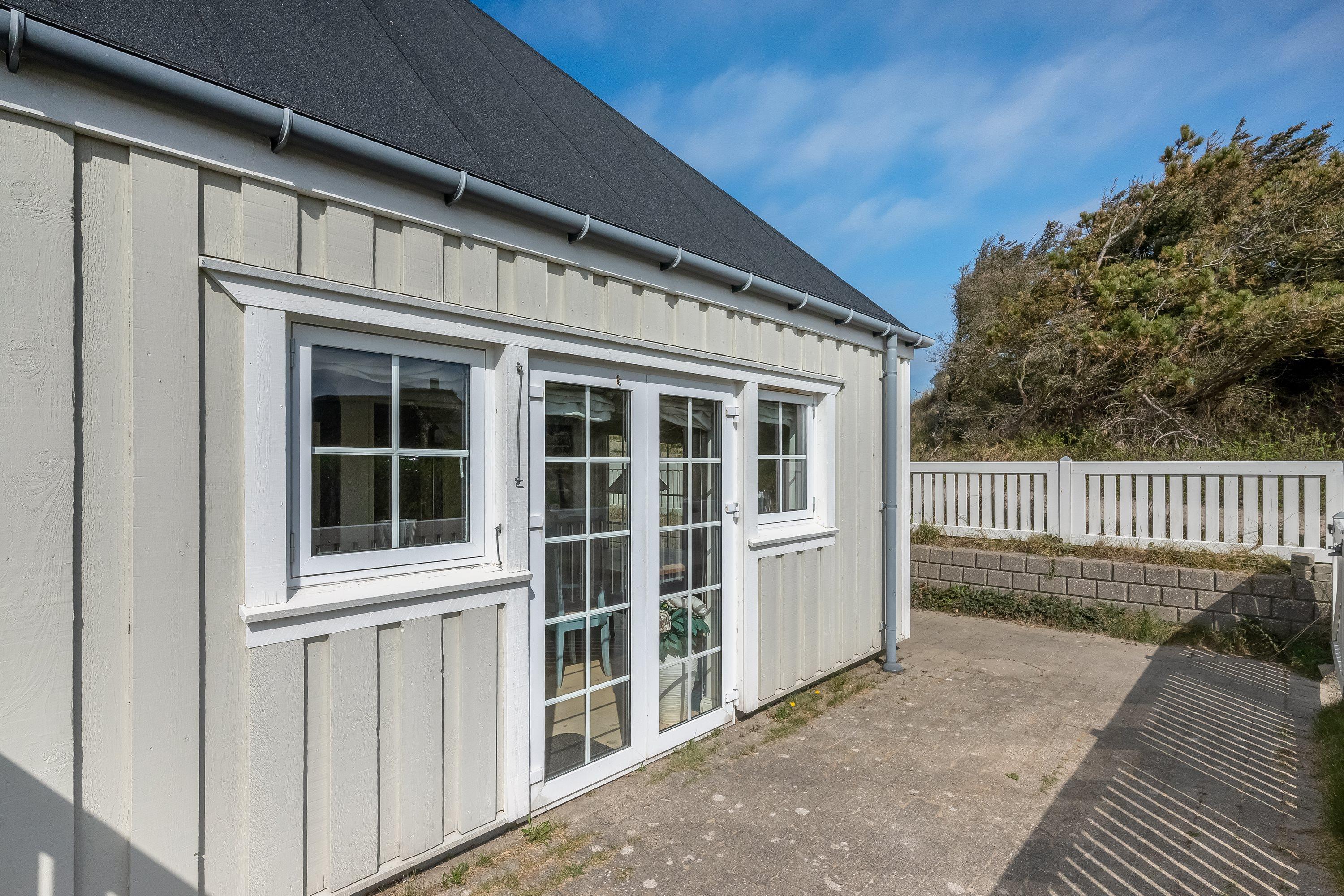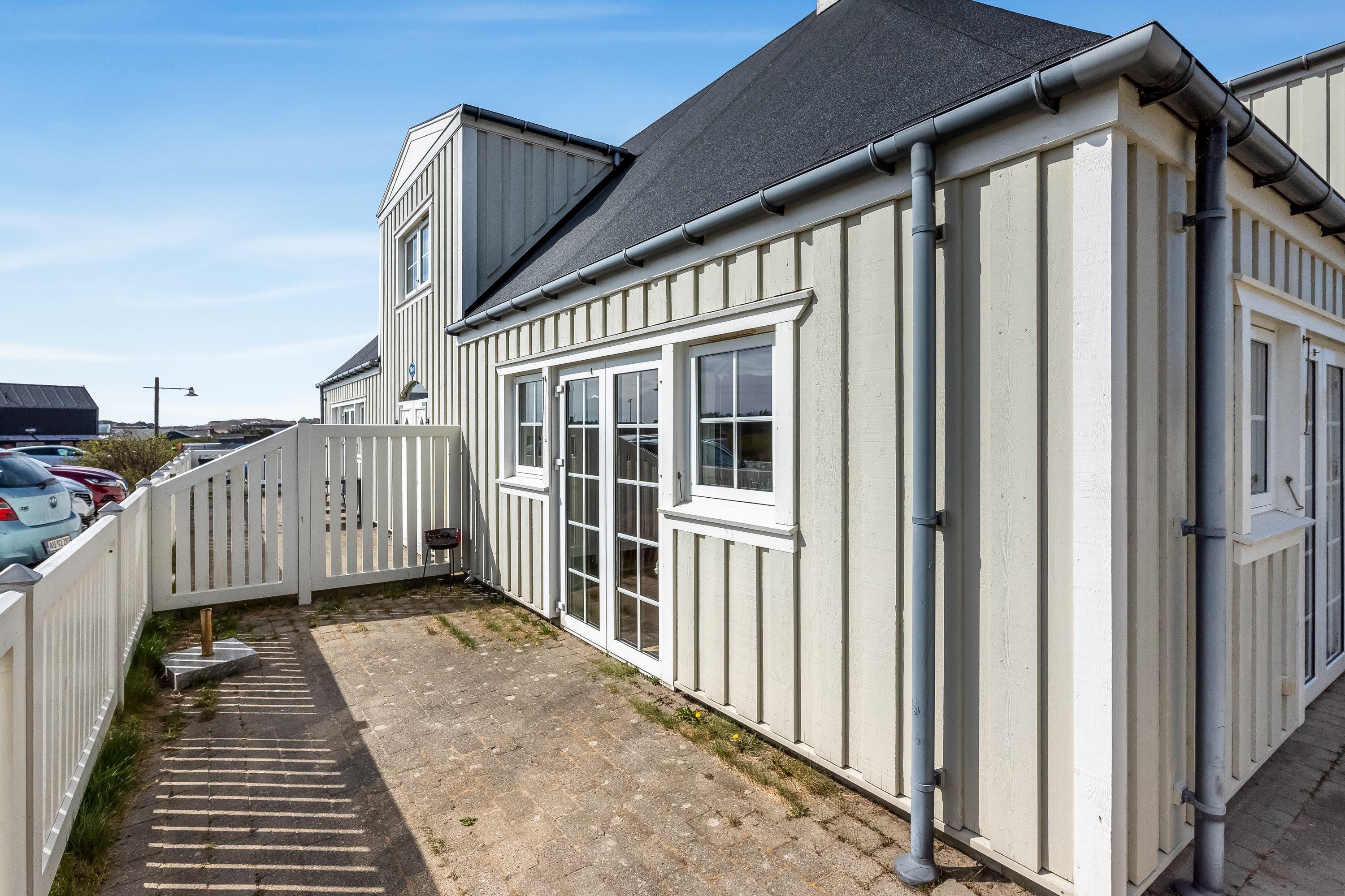 Udenfor kan I vælge mellem åben terrasse, afskærmet terrasse og lukket terrasse, alt efter vejret og dagens ønsker. Havemøblerne gør det nemt at nyde morgenkaffen, solen midt på dagen eller afslutte aftenen i læ på terrassen. Gasgrillen står klar til lækre måltider under åben himmel, og på varmere dage kan I slappe af i ferielejlighedens solvogne.