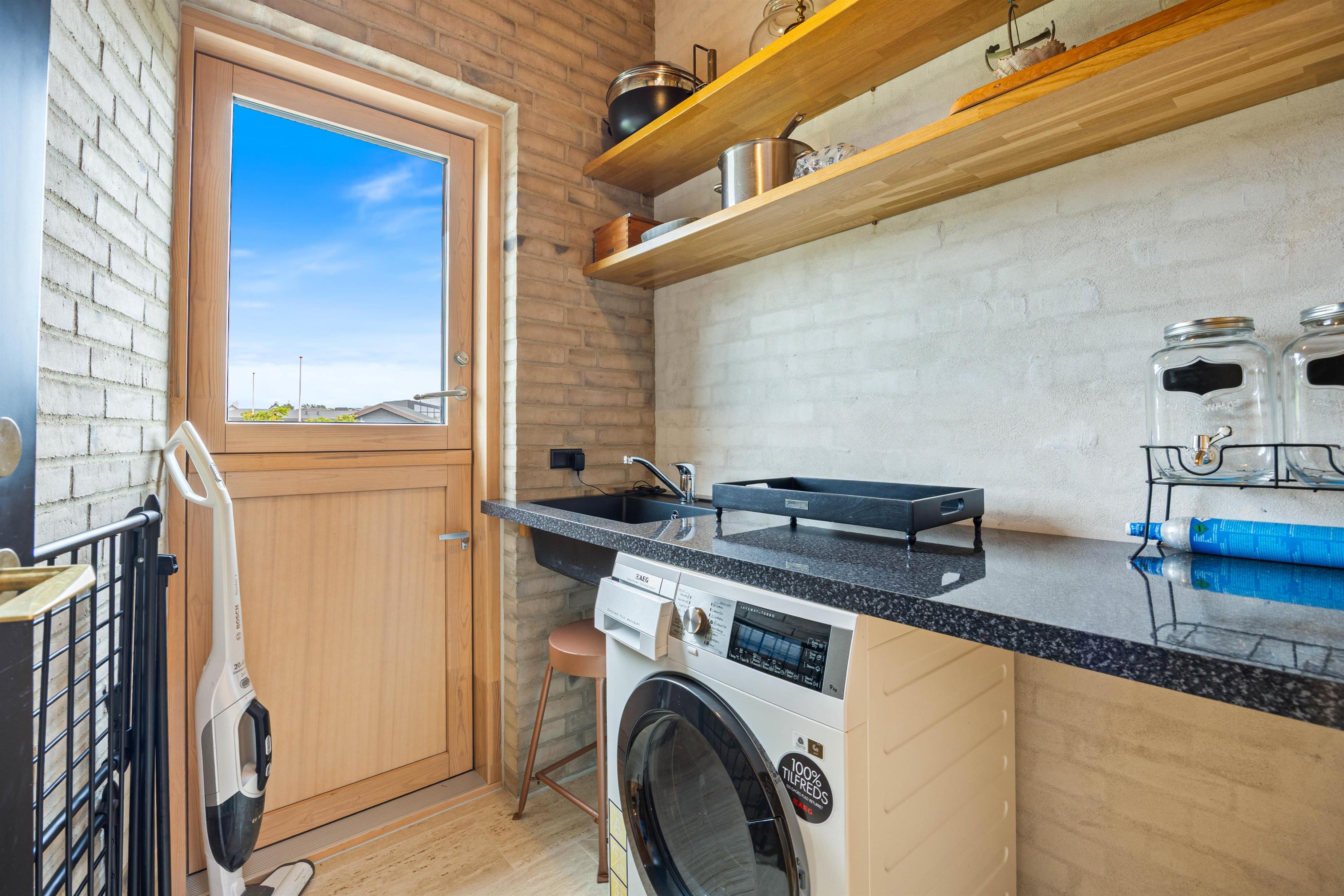 Den fantastiske funktion med vinduespartiet ved spisebordet, som kan skydes hele vejen op og åbne op ud til den fantastiske terrasser, lægger op til at I virkelig kan nyde den skønne Terrasse. Terrassen er stor og lækker og en del af terrassen er overdækket og spots i loftet, så I kan sidde udenfor selv efter mørket er faldet på. Gode havemøbler, liggestole og grill er selvfølgelig blandt husets faciliteter, så I kan nyde de solrige dage og den friske havluft i fulde drag.