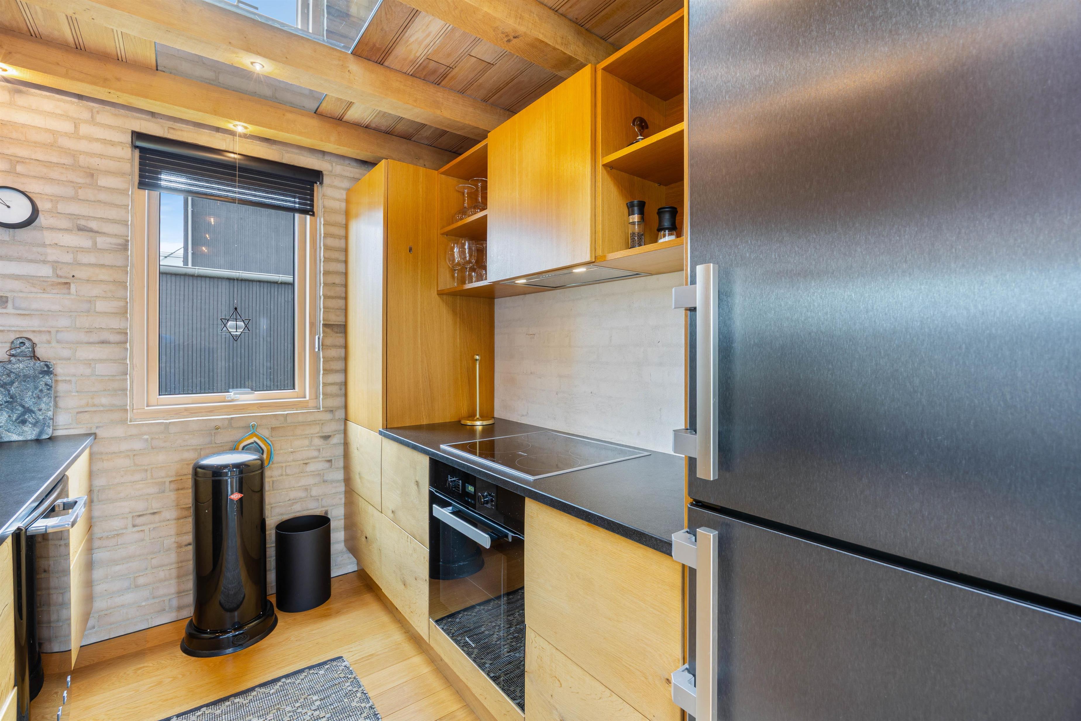 Flotte detaljer sætter hele vejen rundt bidrager til den stilfulde indretning, og brændeovnen tilfører ekstra hygge og charme, så feriestemningen er i top hele året rundt.