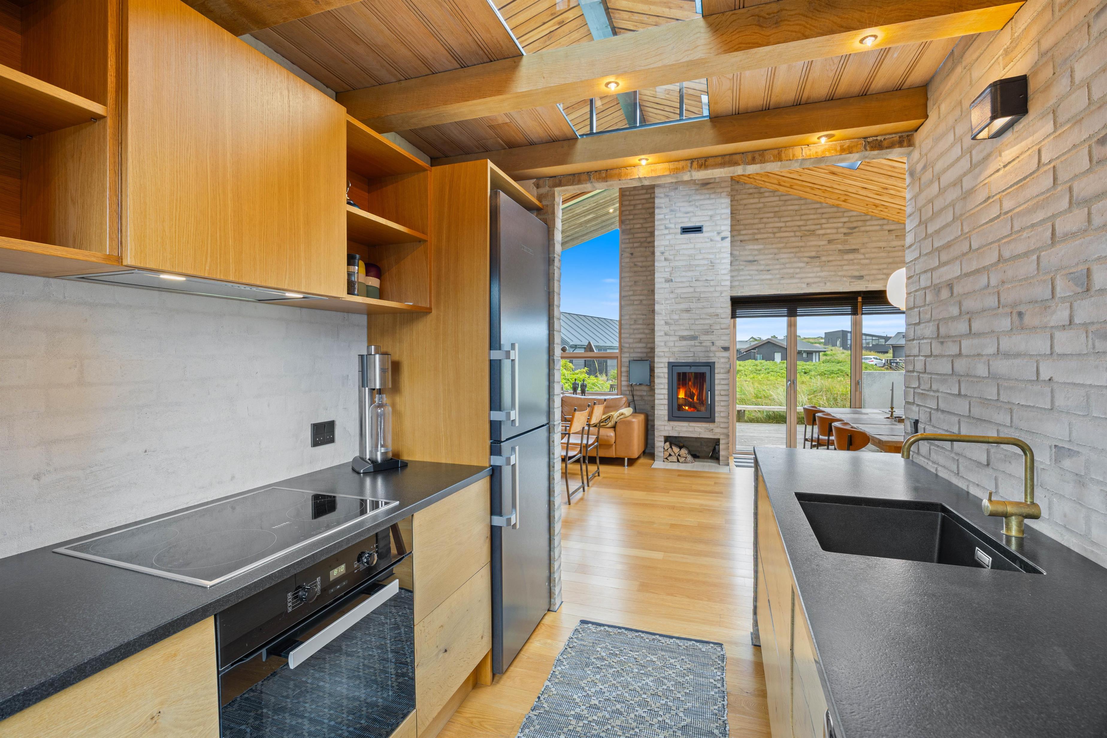 Det flotte feriehus der er opført i 2016 er klar til at byde de mest kræsne og krævende feriegæster velkommen. Her er stilen er super lækker og moderne med varme farver, åbne omgivelser og masser af lys, som bliver lukket ind gennem de store vinduespartier og ovenlysvinduer. Alt her er virkelig gennemtænkt og der er blevet kræset for detaljerne, således I kan nyde en uforglemmelig og afslappende ferie. Loftet til kip er bare prikken over i'et ved huset, og det er med til at skabe en fantastisk rumfornemmelse.