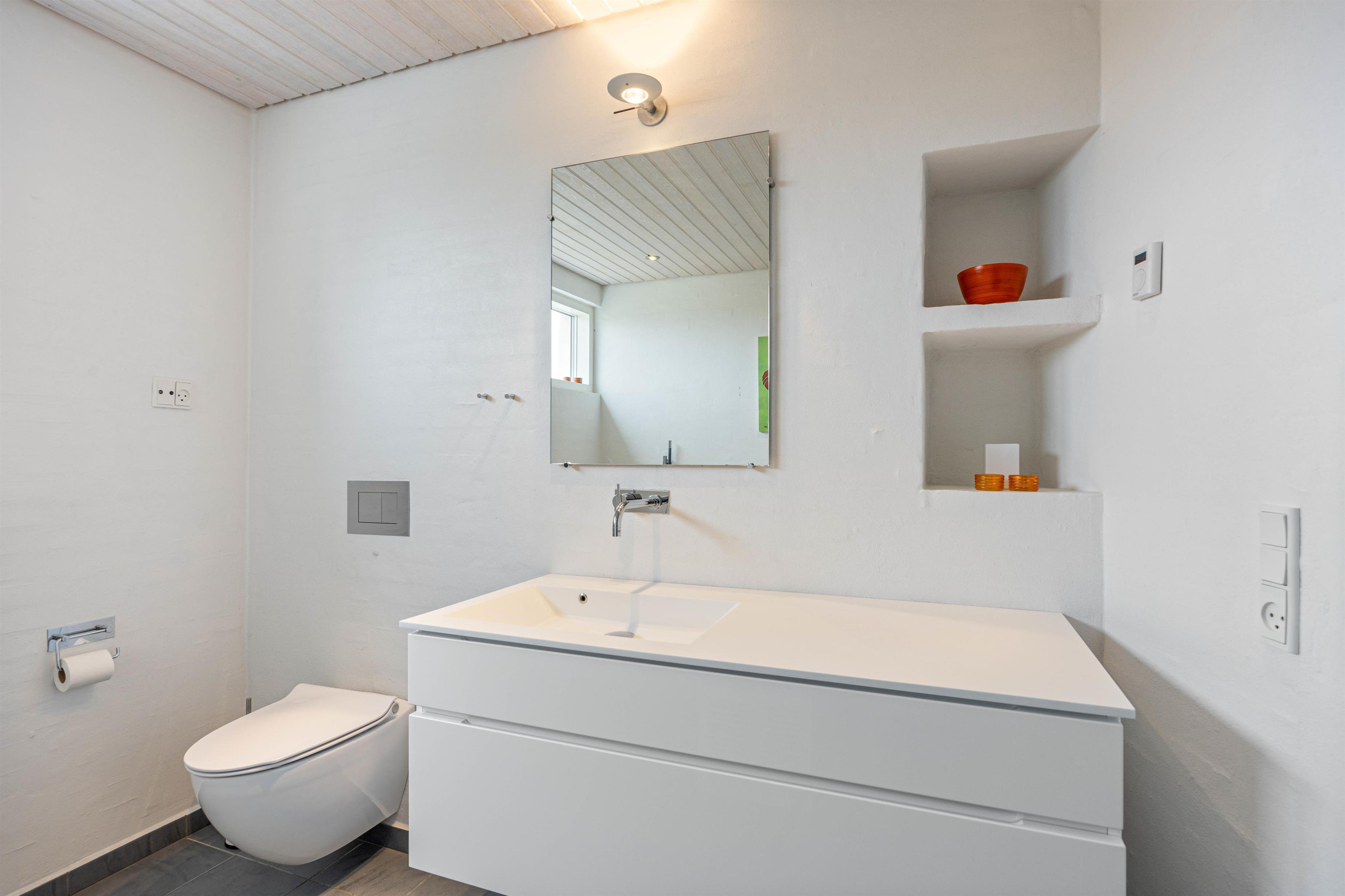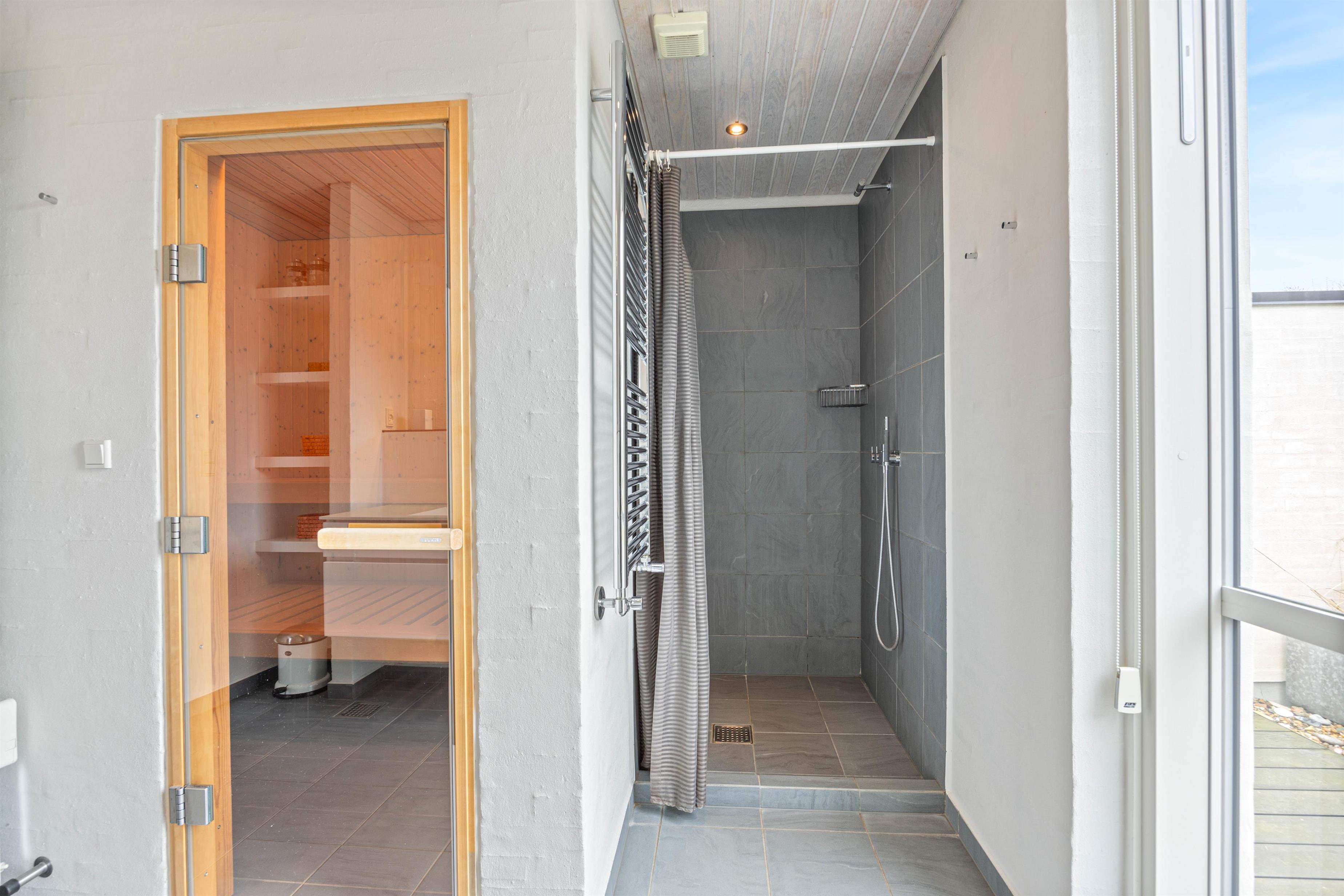 Feriehuset er indrettet med 2 gode badeværelser, hvor I desuden finder nogle af husets highlights: Her står saunaen og spabadet klar til at give jer den fuldendte wellnessoplevelse, og der er virkelig mulighed for at tanke nye kræfter og nyde de stille feriedage på bedste vis.