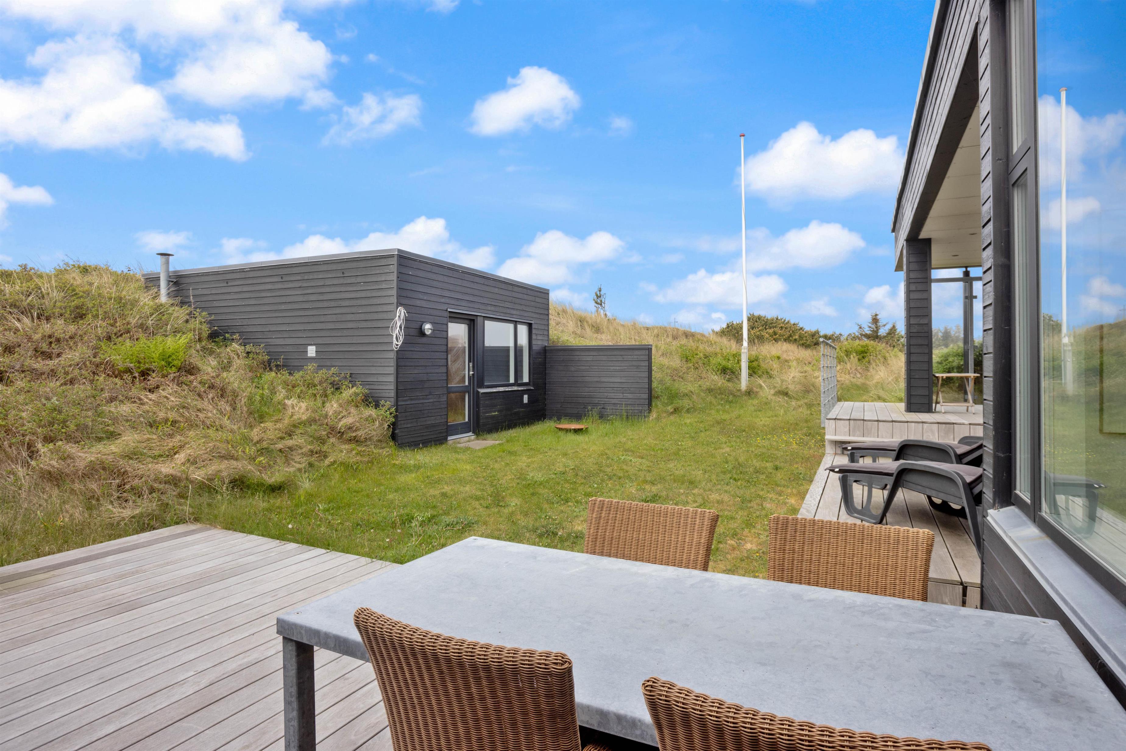 Terrasseforholdene er helt i top, og rundt om huset finder I et hav af forskellige siddekroge, hvor I helt uforstyrret kan nyde feriedagene og den smukke natur. Der er sørget for gode havemøbler, loungesæt, overdækning og afskærmning, og der er stort set altid ly og læ at finde. Til børnene er der sørget for gyngestativ og sandkasse.