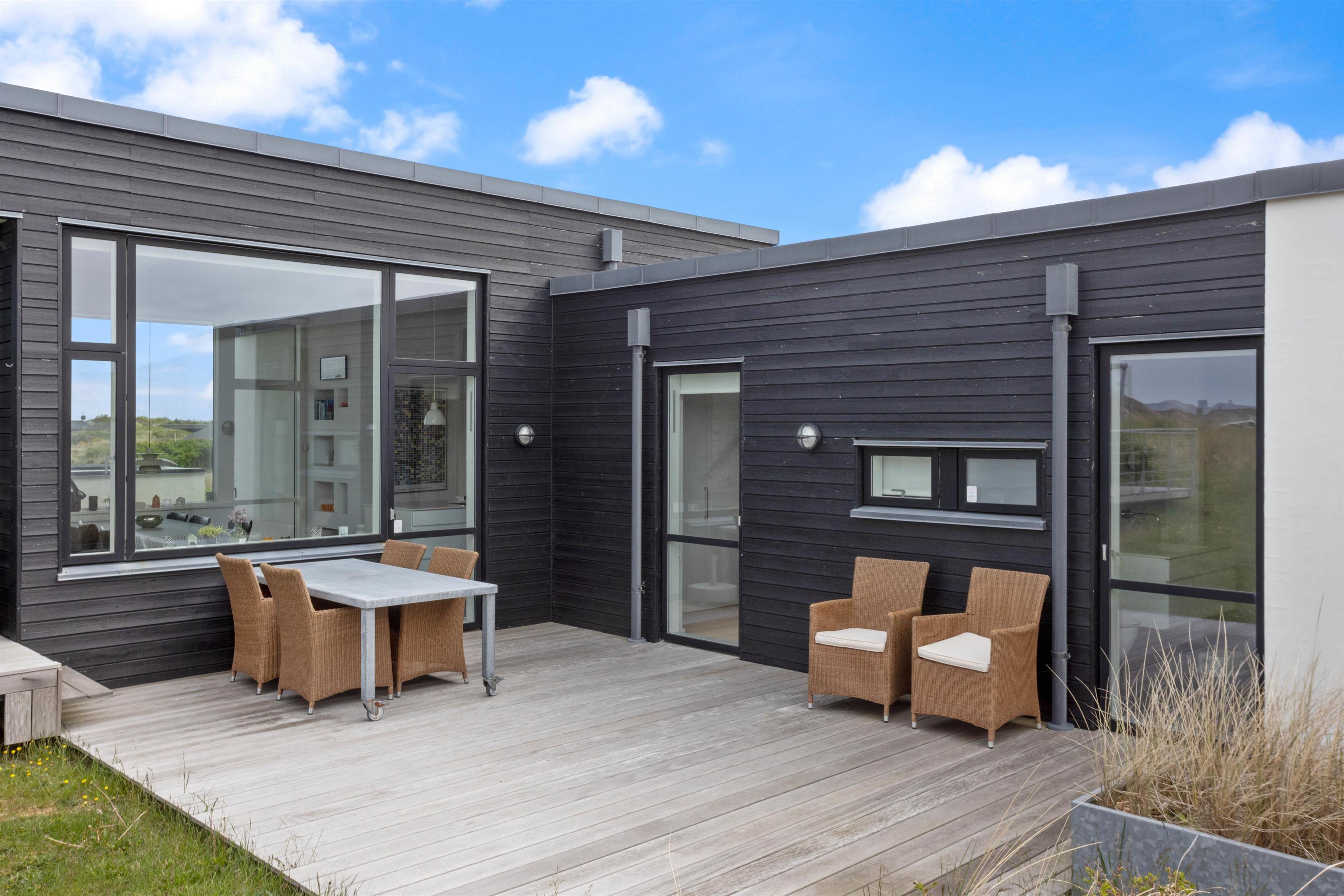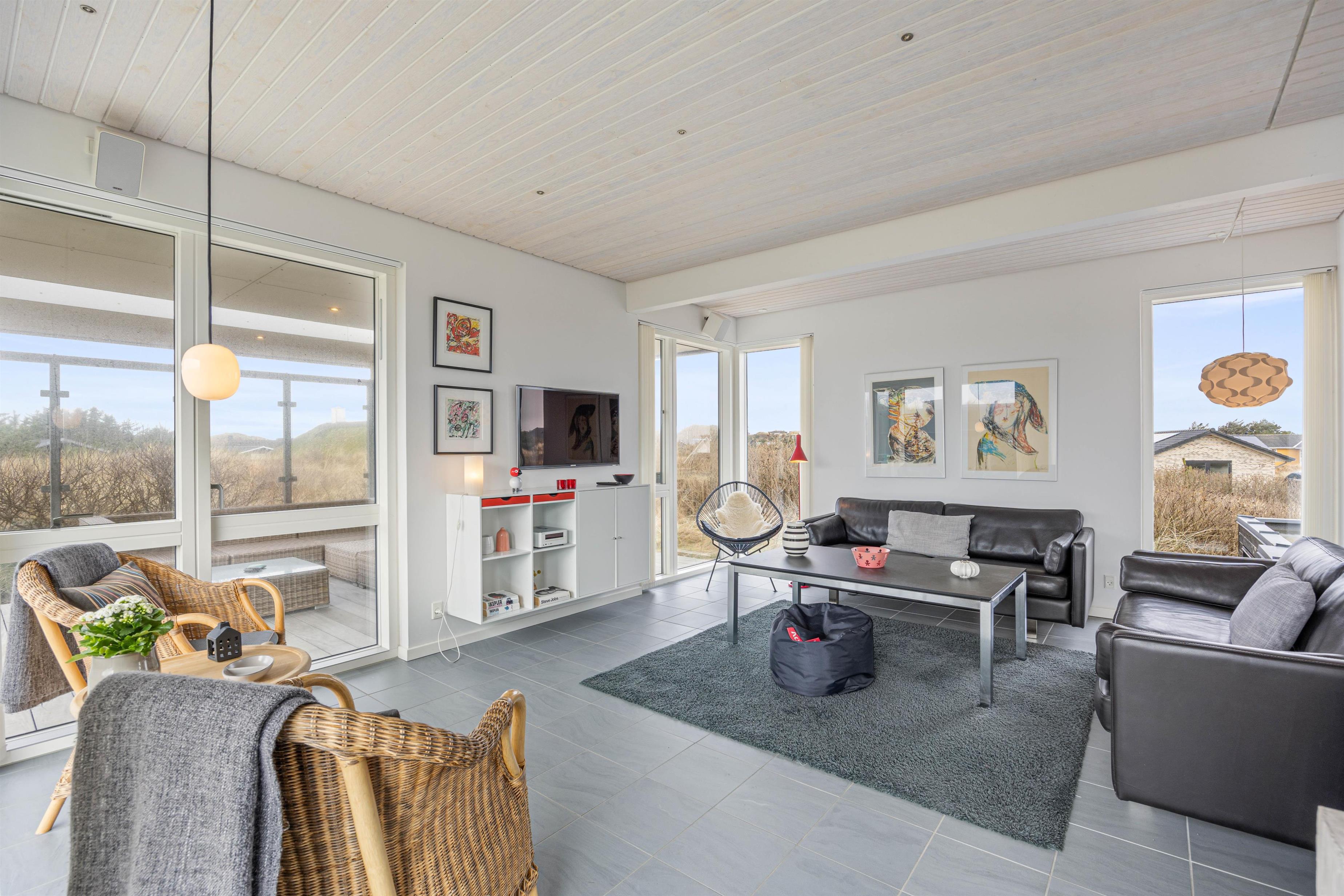 Dette feriehus på Hjelmevej 161 rummer med sine 120 m2 mere end god plads til seks feriegæster, og I får masser af plads at brede jer ud på. De moderne og stilrene omgivelser er åbnet op med lyse og indbydende farver, en helt særlig kræsen om detaljen og ikke mindst store vinduespartier, der inviterer solen og den vestjyske natur indenfor.