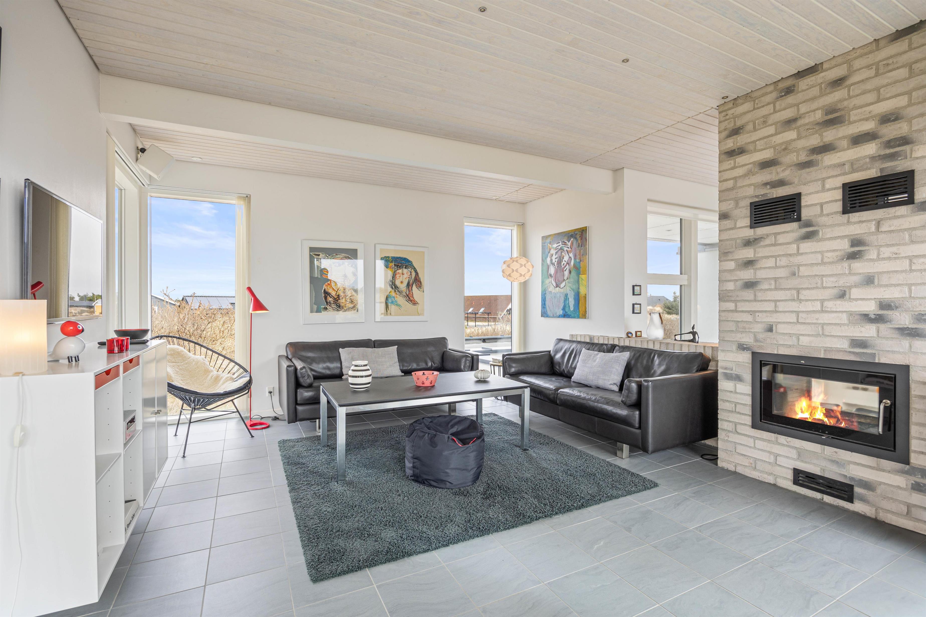 Selv om huset har stilrene linjer, er der stadig gjort plads til "hyggen". De mange små detaljer gør indretningen personlig og skaber en hyggelig og afslappende ferieatmosfære, som I vil mærke med det samme. I stuen som ligger i forskudt plan med køkkenet, er der god plads til at I kan finde et hyggeligt og komfortabelt sted at slappe af. Her er der også en pejseindsats, der er perfekt til de køligere årstider, da den altid er garant for at sprede en masse hygge og ikke mindst varme. Fordi at husets også er udstyret med fibernet, kan I altid holde jer opdateret på det der sker på de sociale medier.