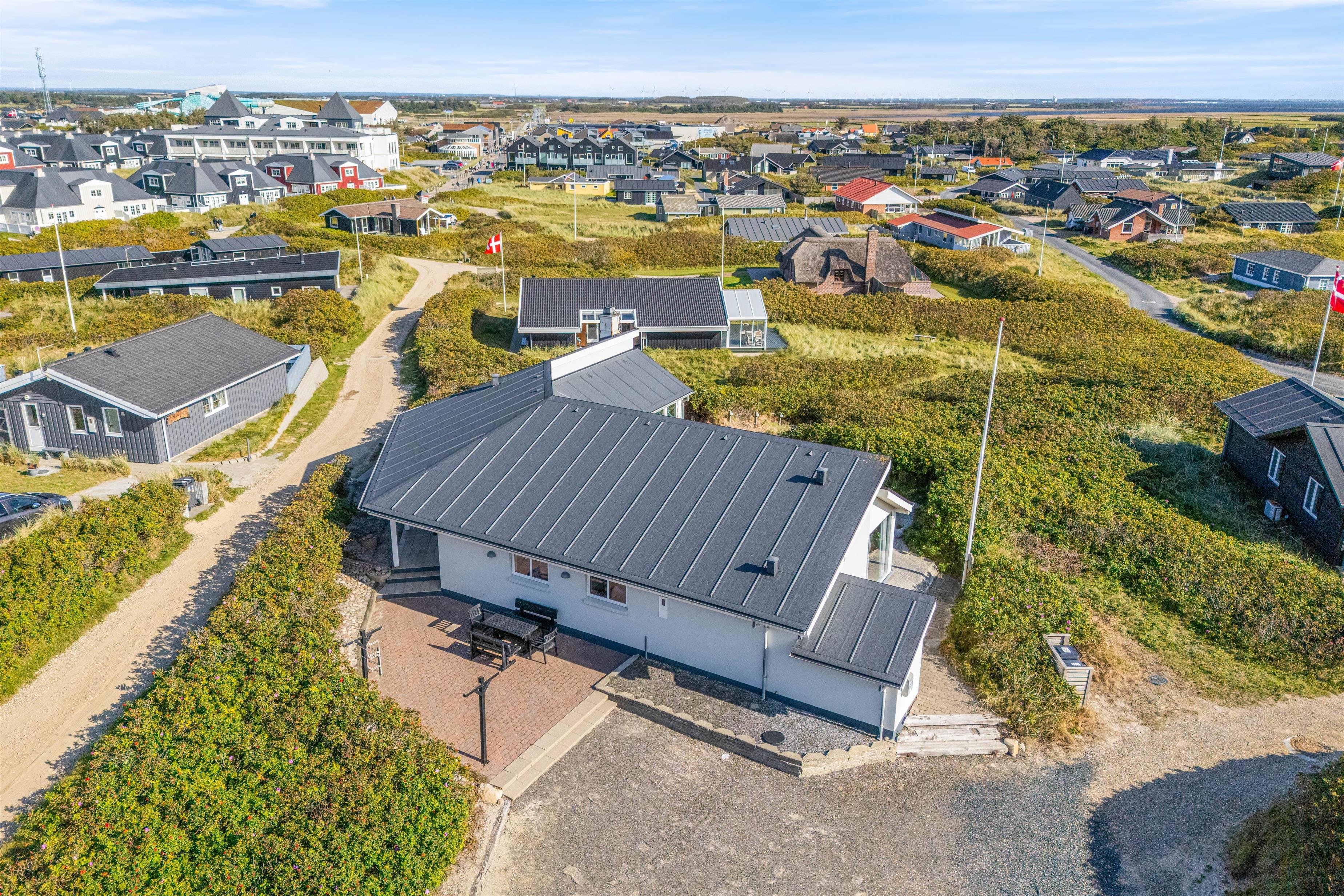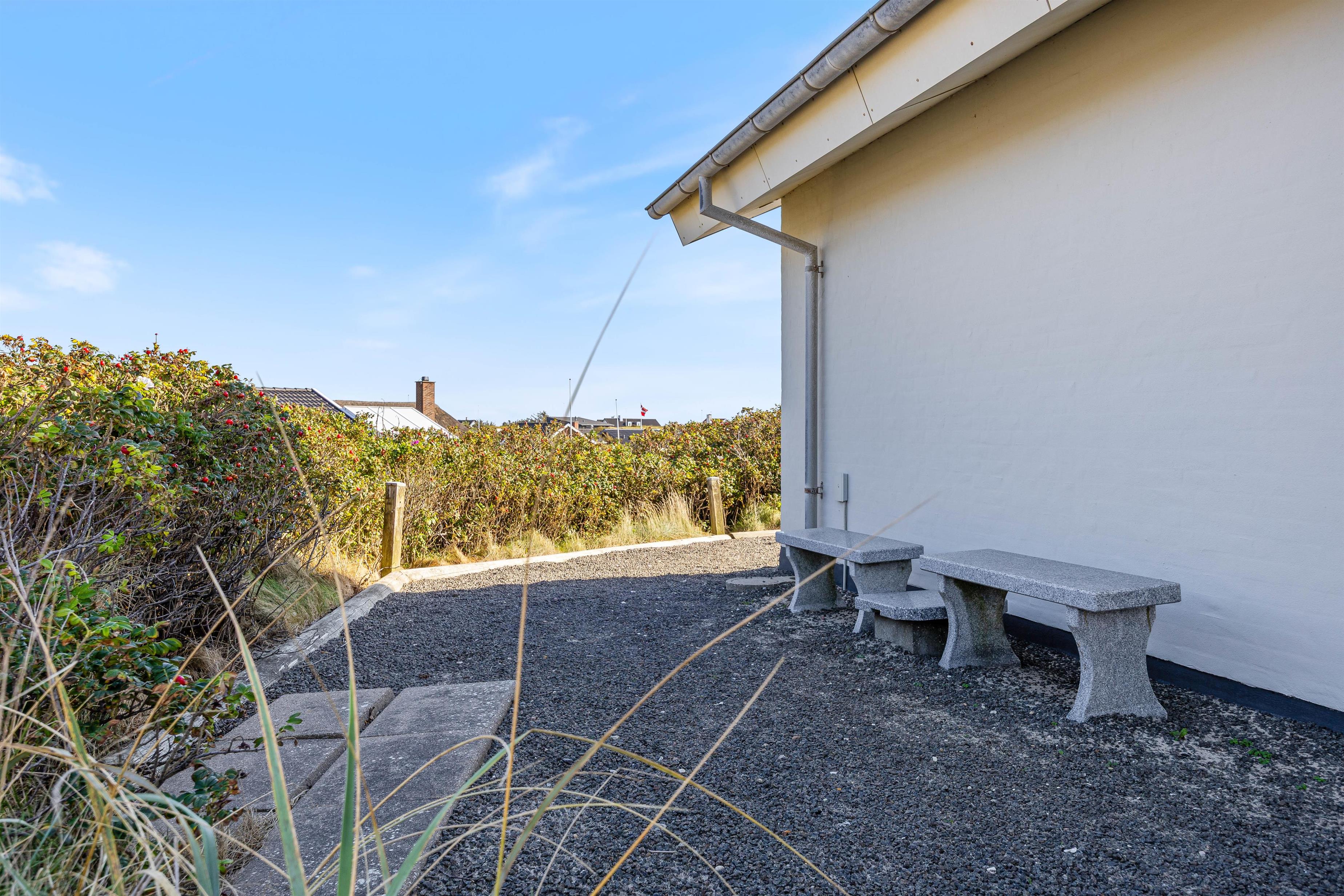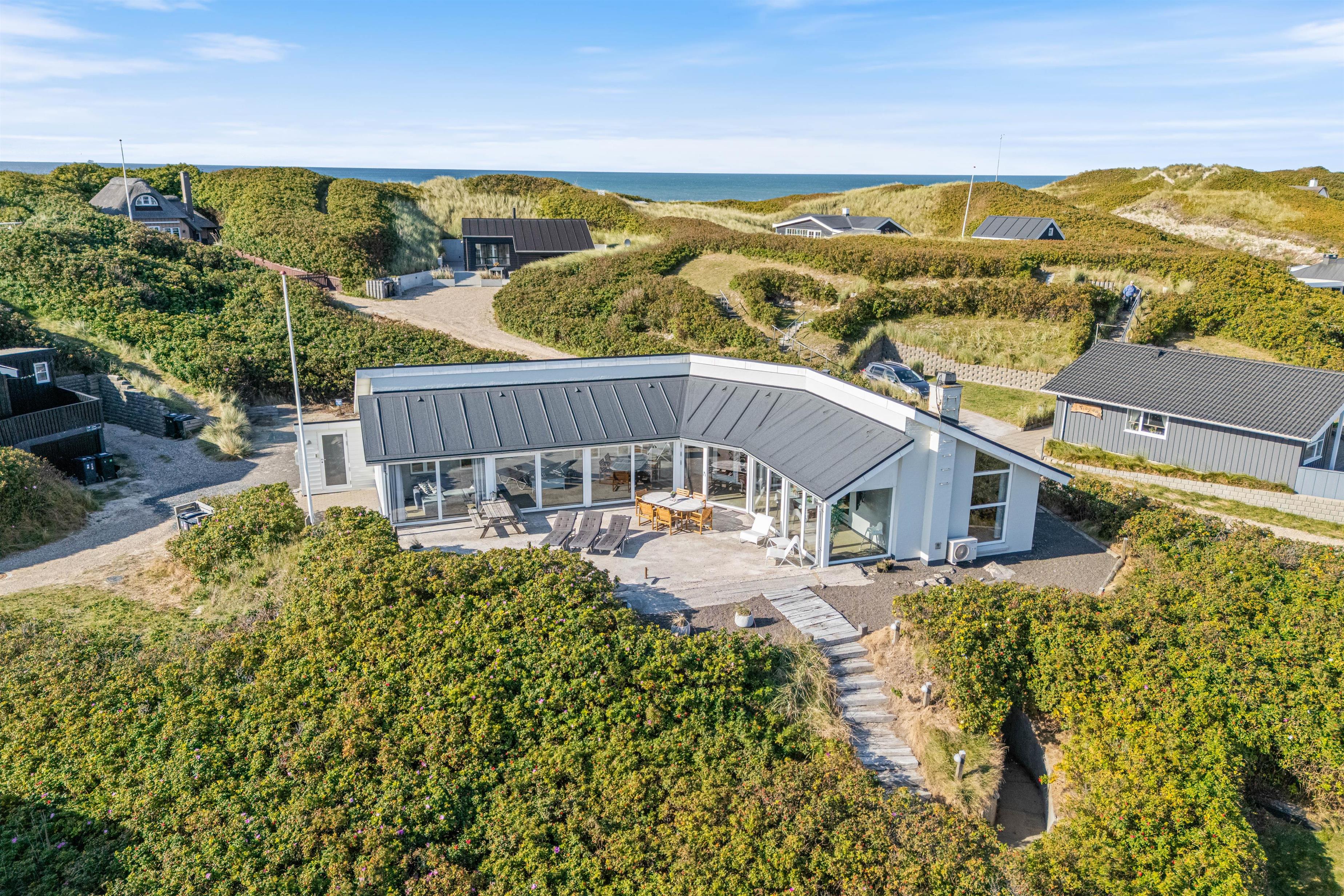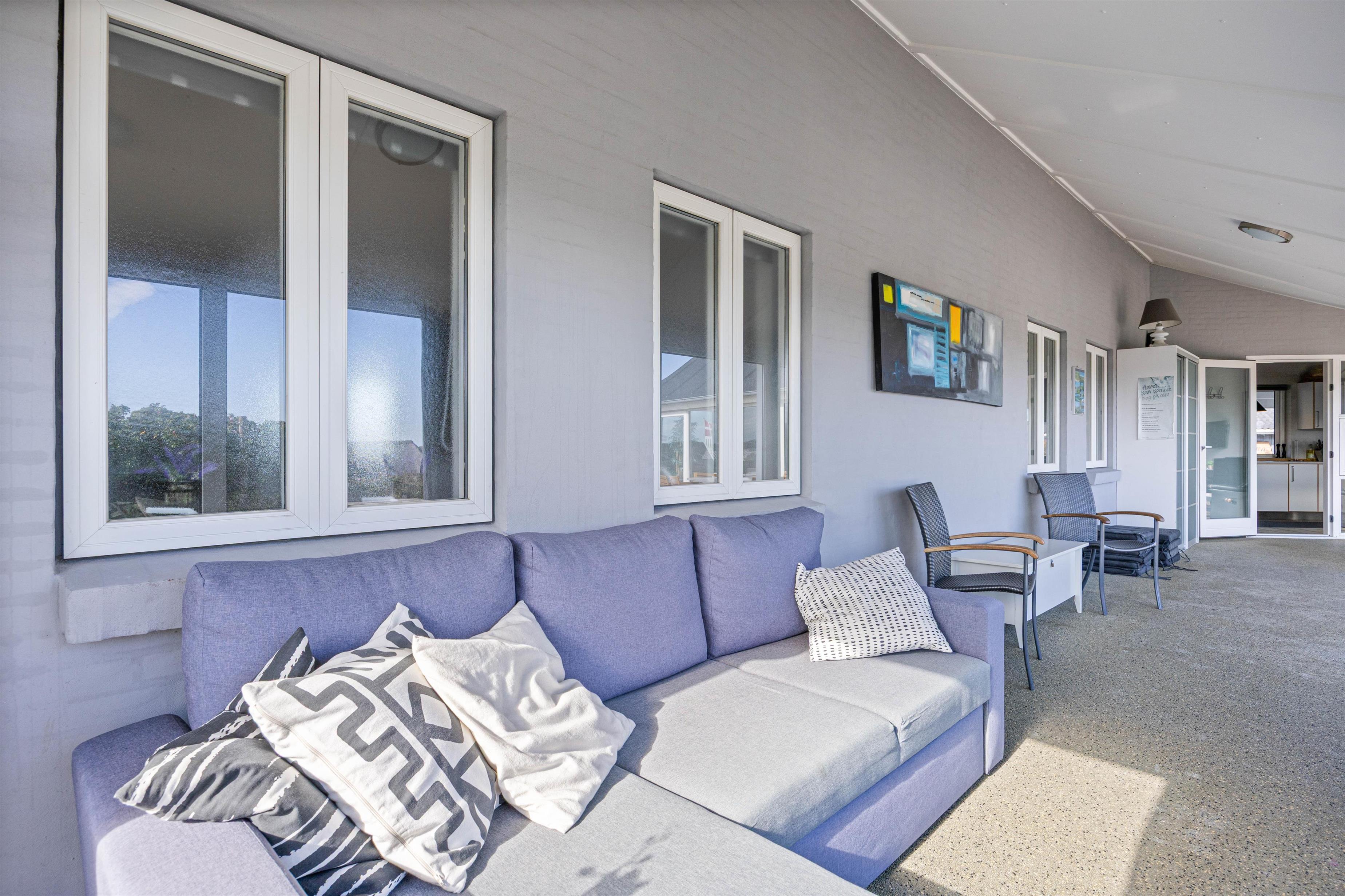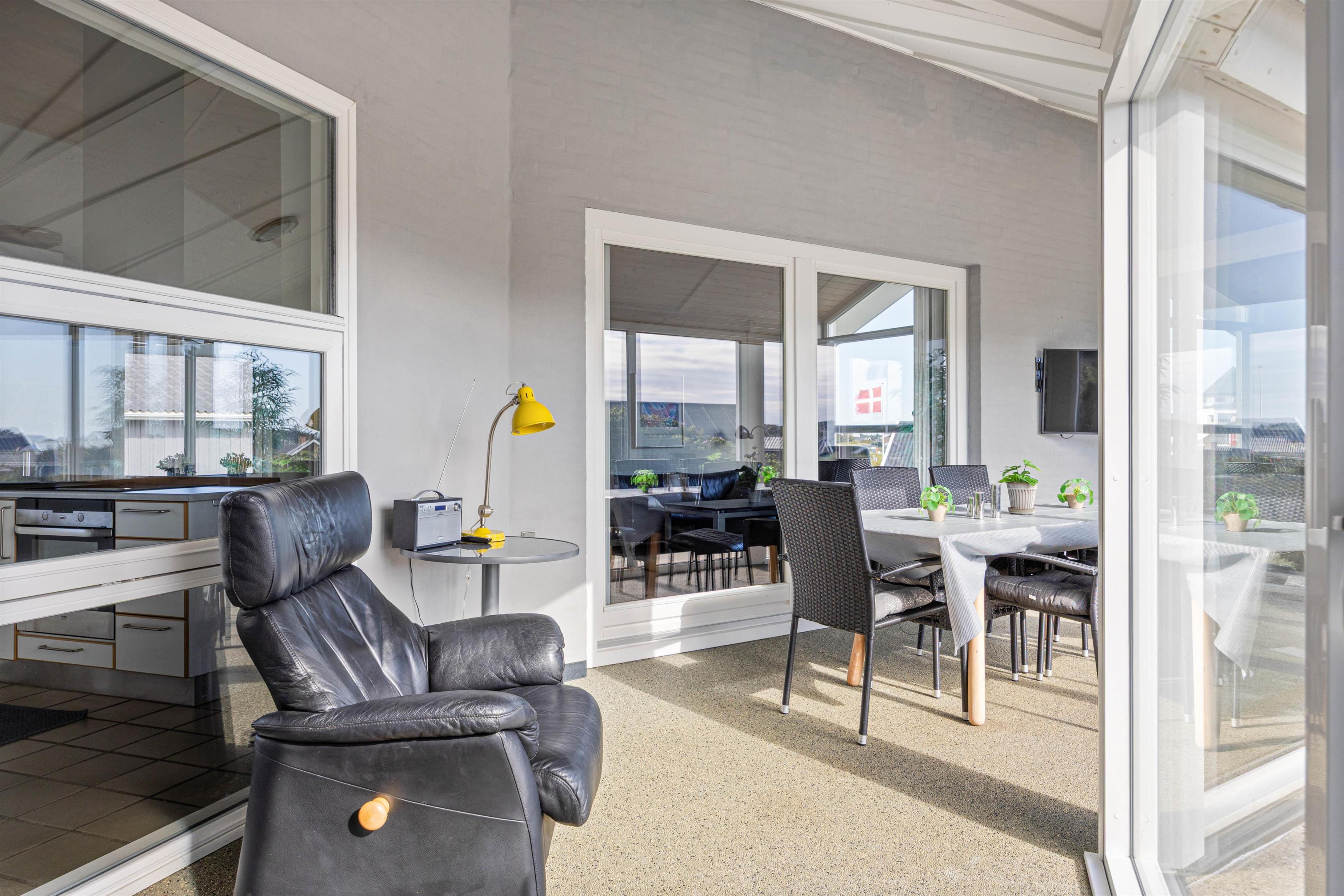 Feriehuset har to dejlige terasser mod nord/øst og syd/vest. Fra terrasserne kan I følge solens gang hele dagen. Ydermere kan I læne jer tilbage i de tilhørende havemøbler og liggestole til sommerhuset samtidig med, at andre står for tilberedning af et lækkert måltid på grillen. Sommerhuset ligger blot et stenkast fra det storslåede Vesterhav og populære badestrand.