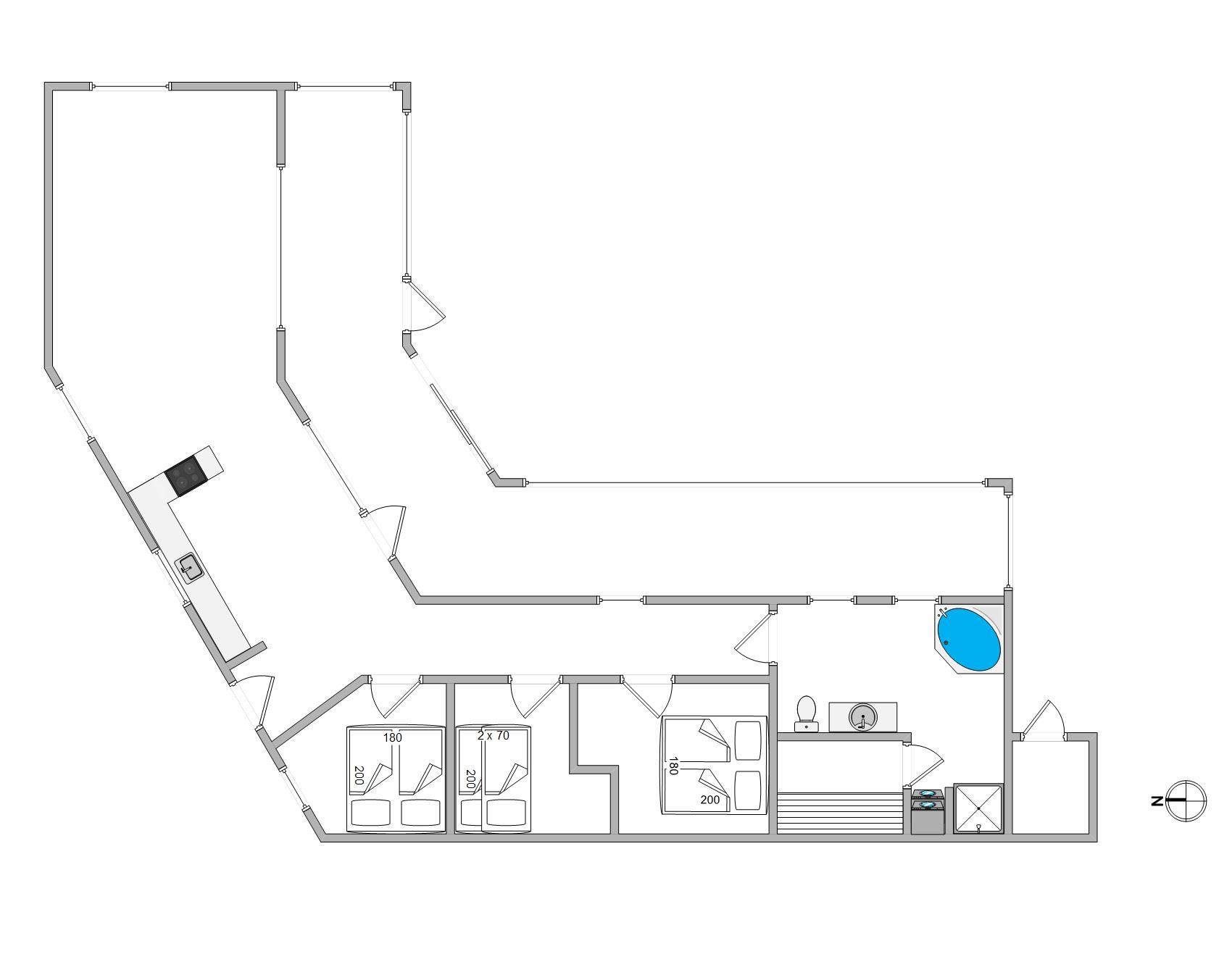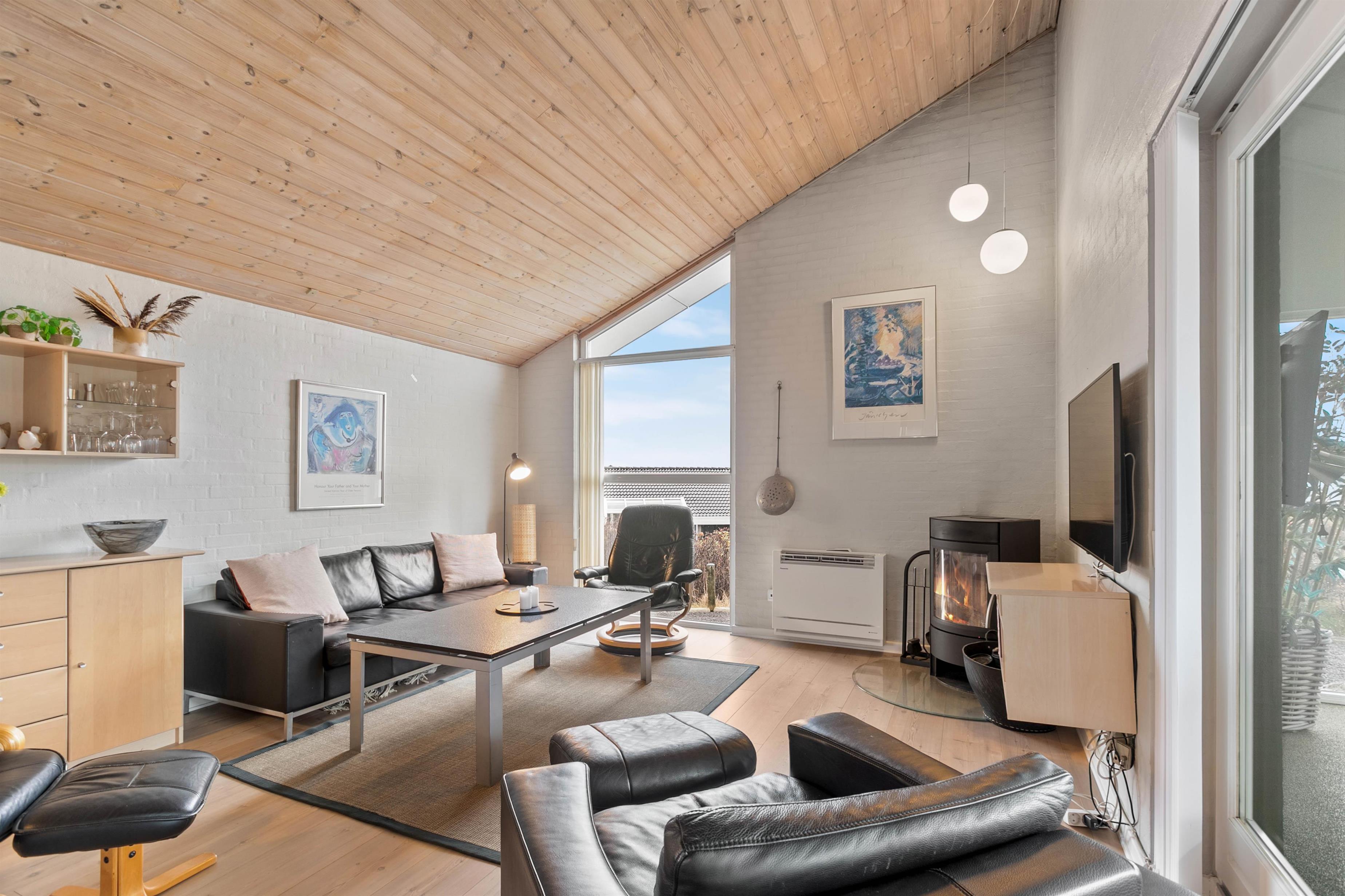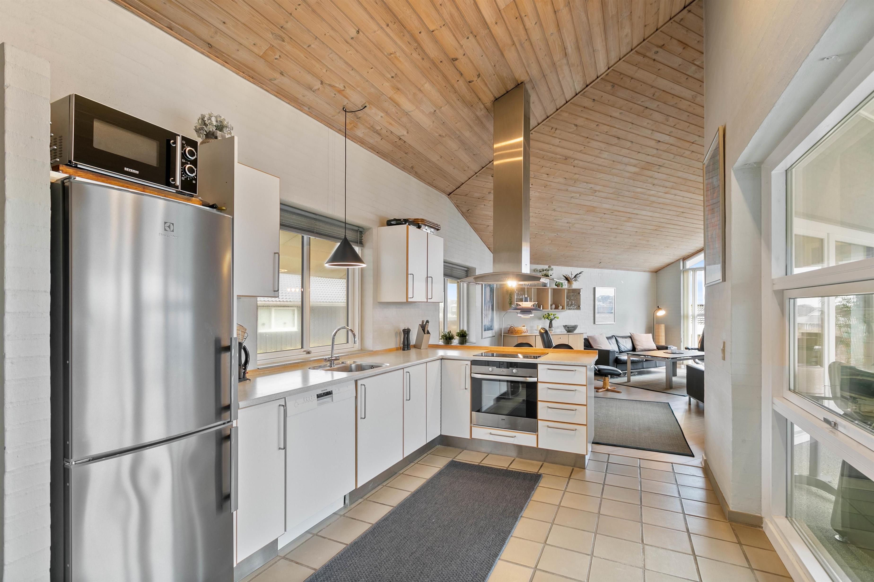 Feriehusets åbne køkken ligger i forlængelse med stuen, så I her har mulighed for enten at samles om madlavningen eller planlægge ugens oplevelser og aktiviteter. I har desuden også mulighed for at smide jer i sofaen med en god bog, en god film eller spille et spil sammen, imens I nyder varmen fra feriehusets brændeovn.