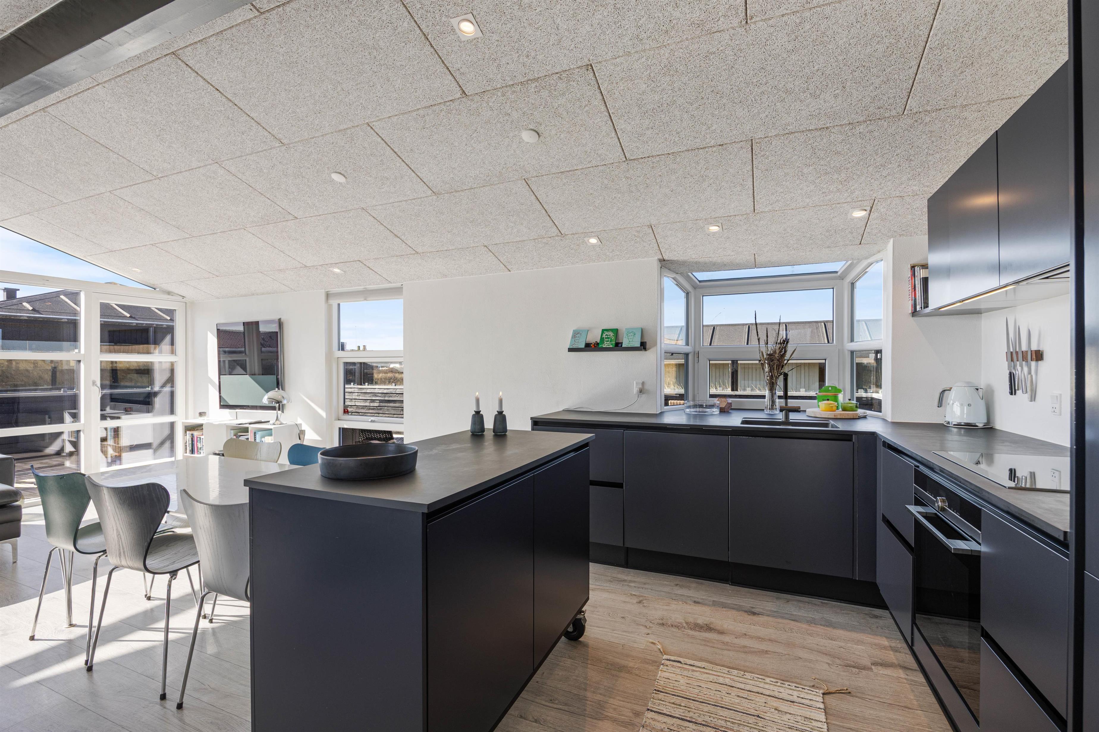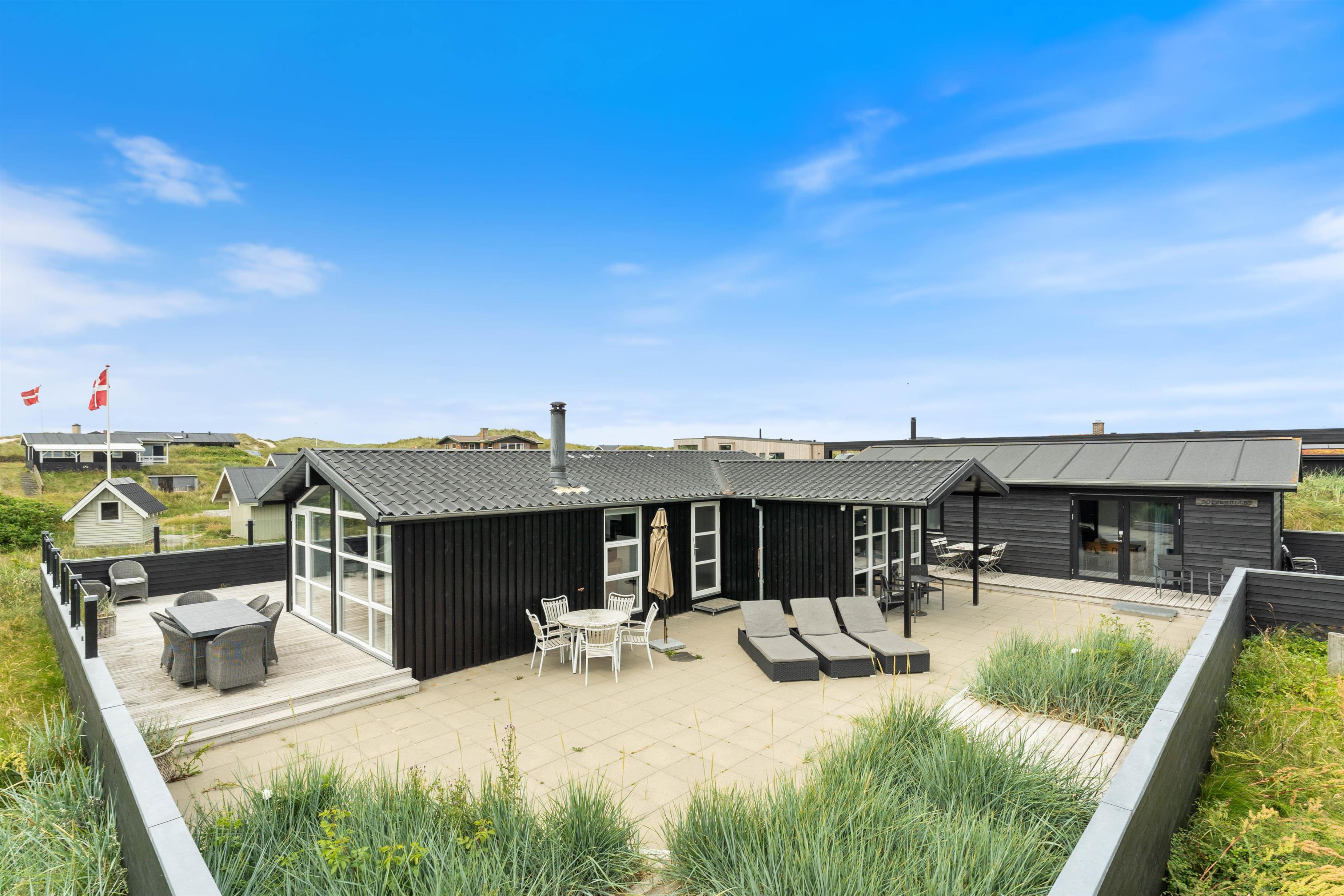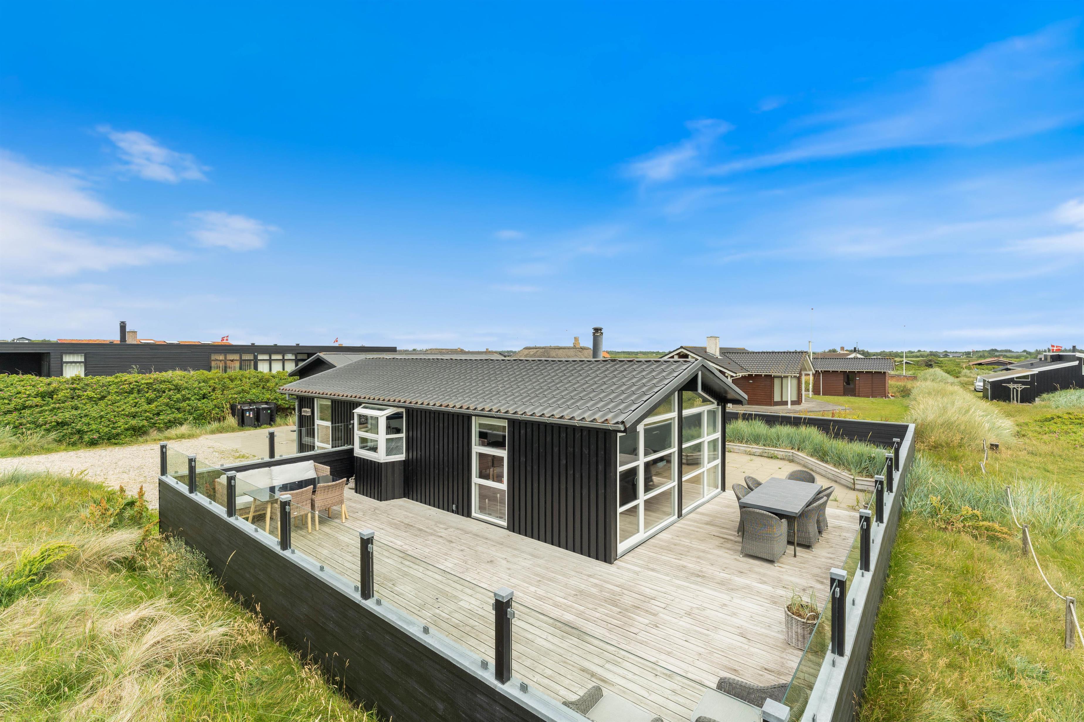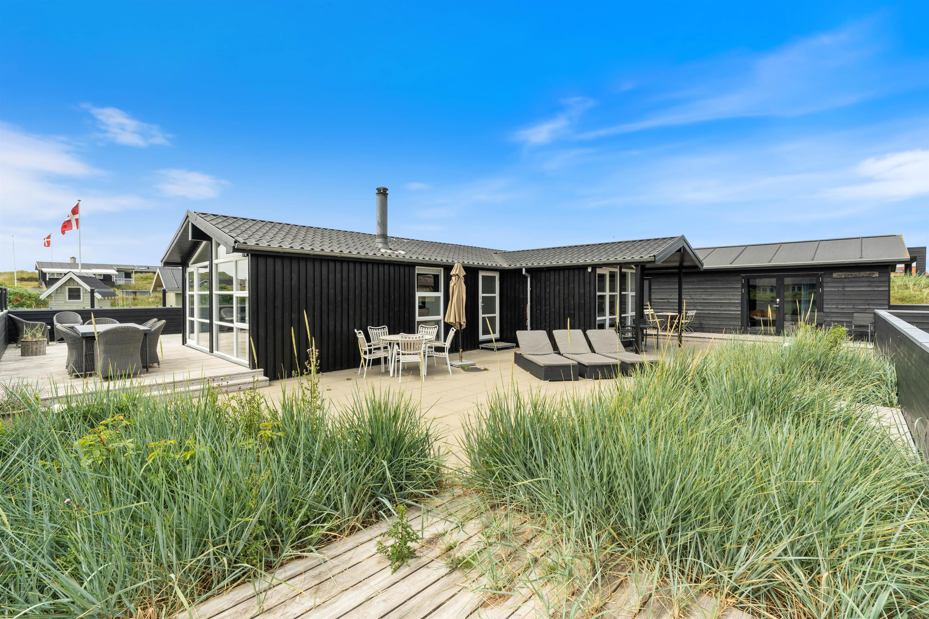 Dette dejlige sommerhus på Sand Holms Vej 94 er totaltrenoveret i 2019 og byder på feriehygge for hele familien tæt på stranden. Her kan I få ren afslapning. I kan nyde vesterhavsluften på den fantastiske store terrasse med lounge-hjørne eller hygge jer i det moderne sofahjørne foran brændeovnen. Til havet og til Søndervig by er der heller ikke ret langt, så der kan I hoppe på cyklen eller bare gå en tur.